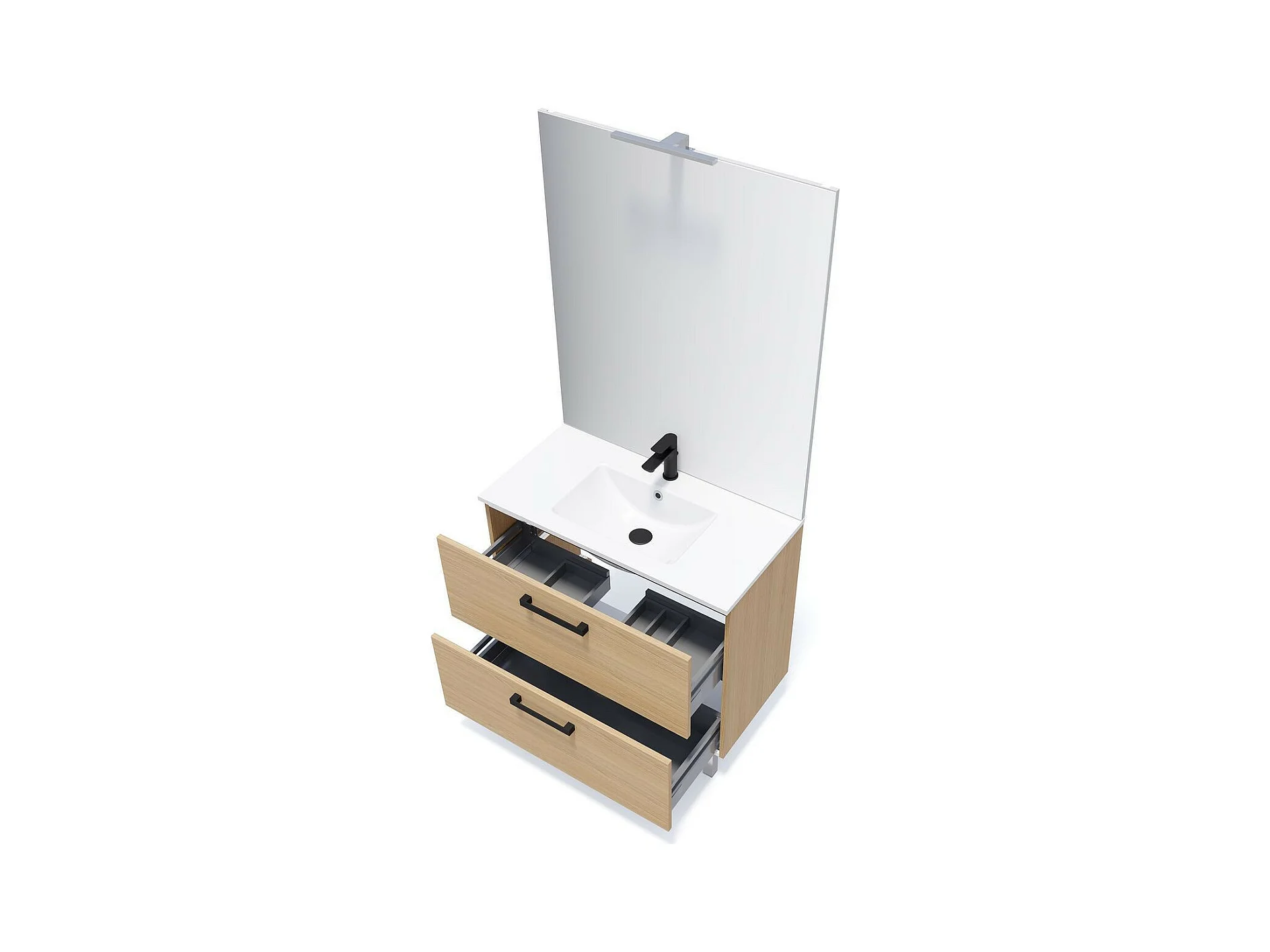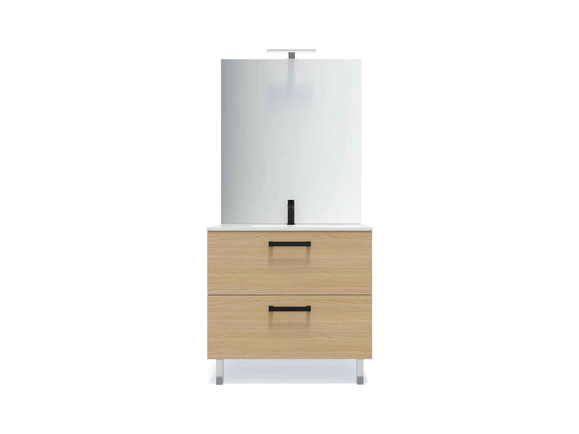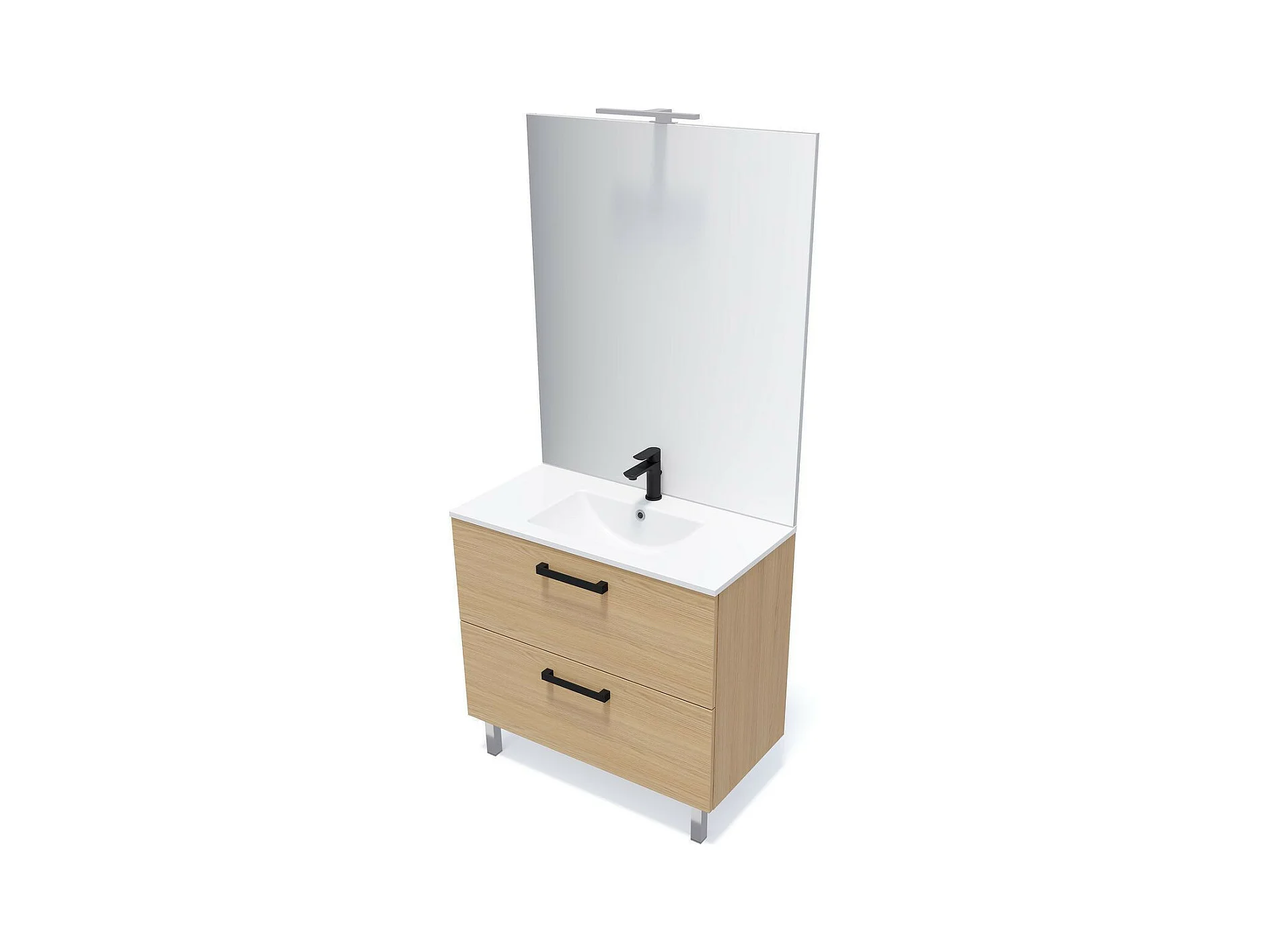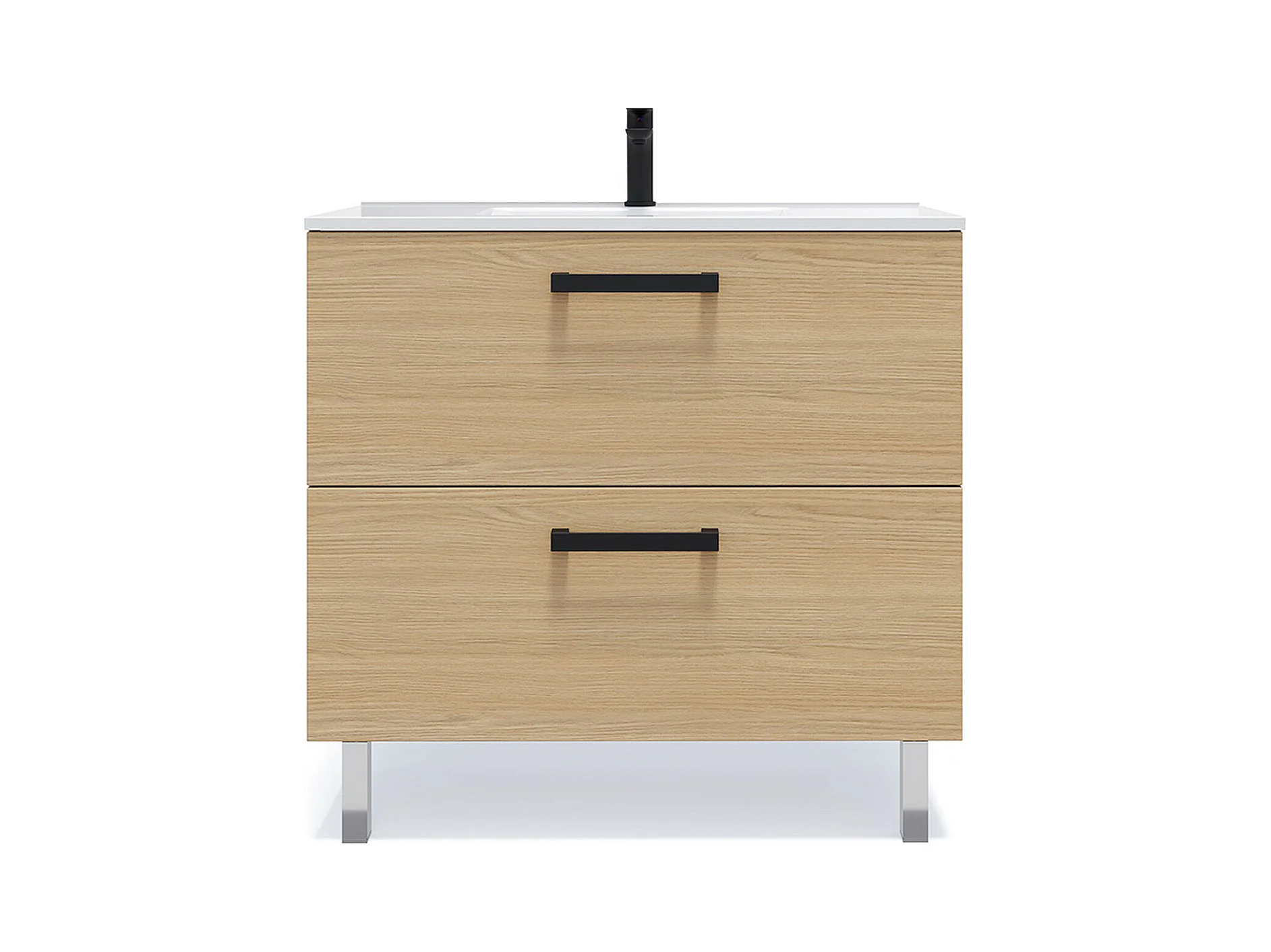 Meuble de salle de bain suspendu avec pieds vasque intégrée 90cm 2 tiroirs Chêne clair - Chelsea