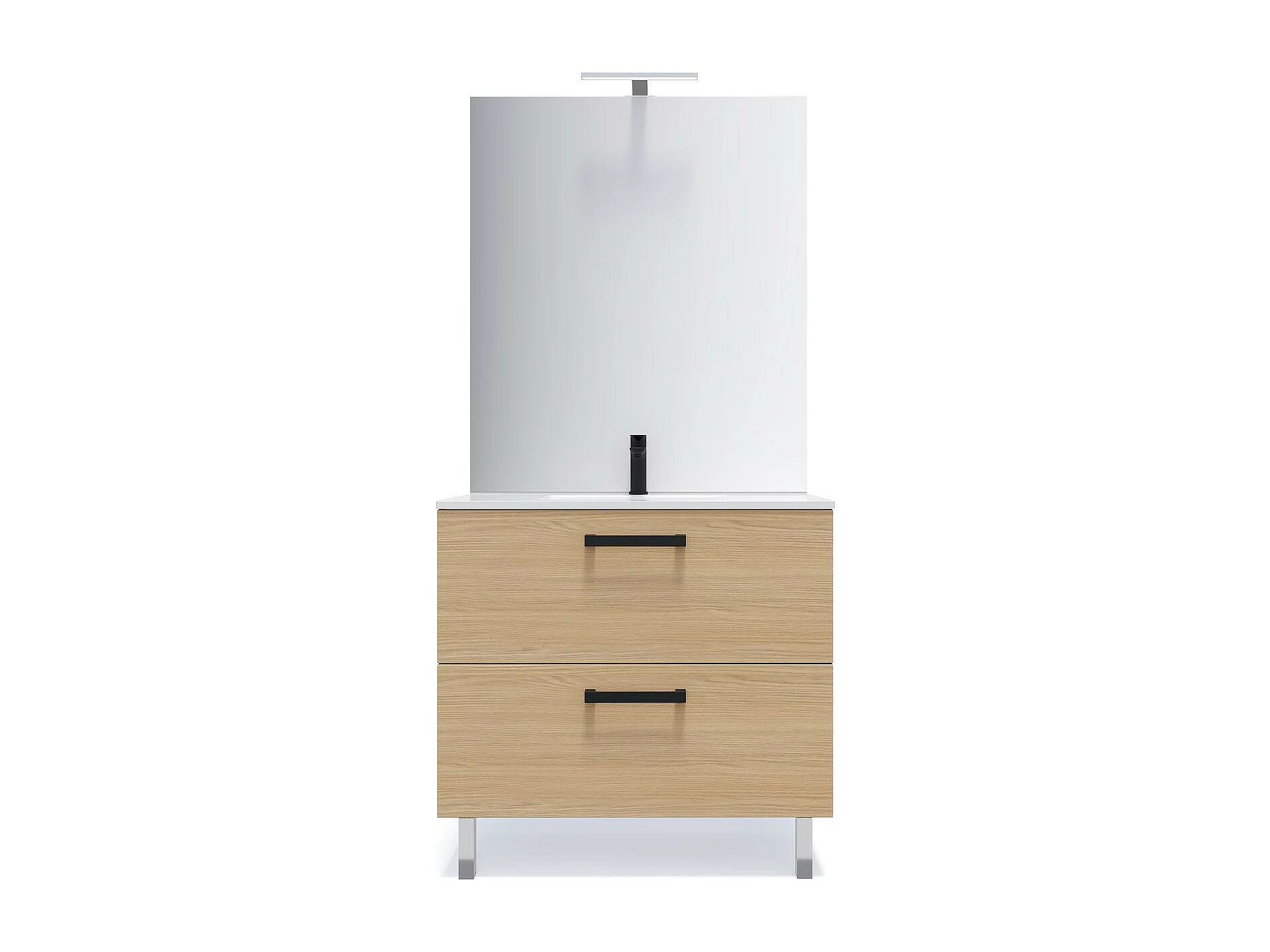 Meuble de salle de bain suspendu avec pieds vasque intégrée 90cm 2 tiroirs Chêne clair + miroir - Chelsea