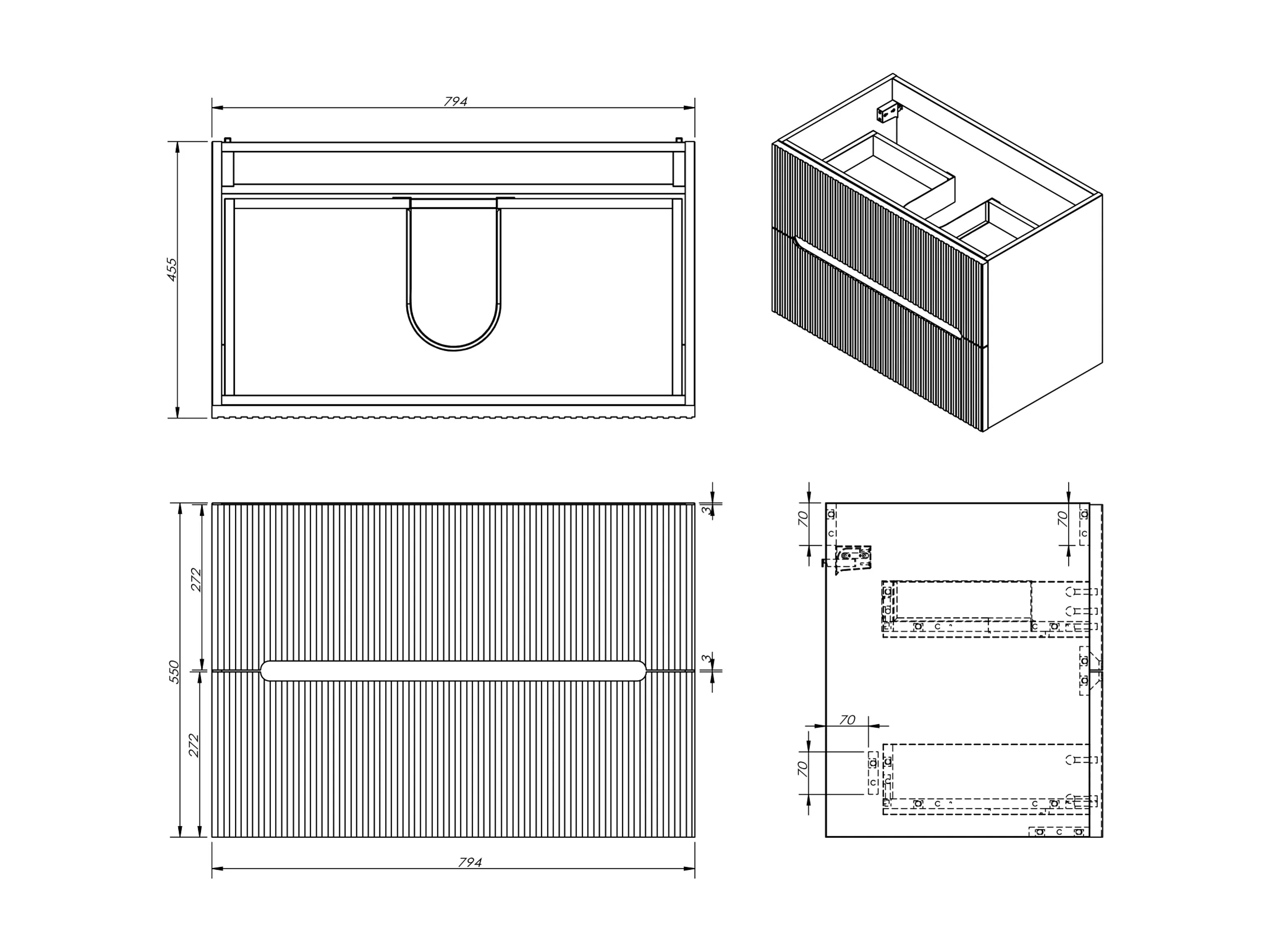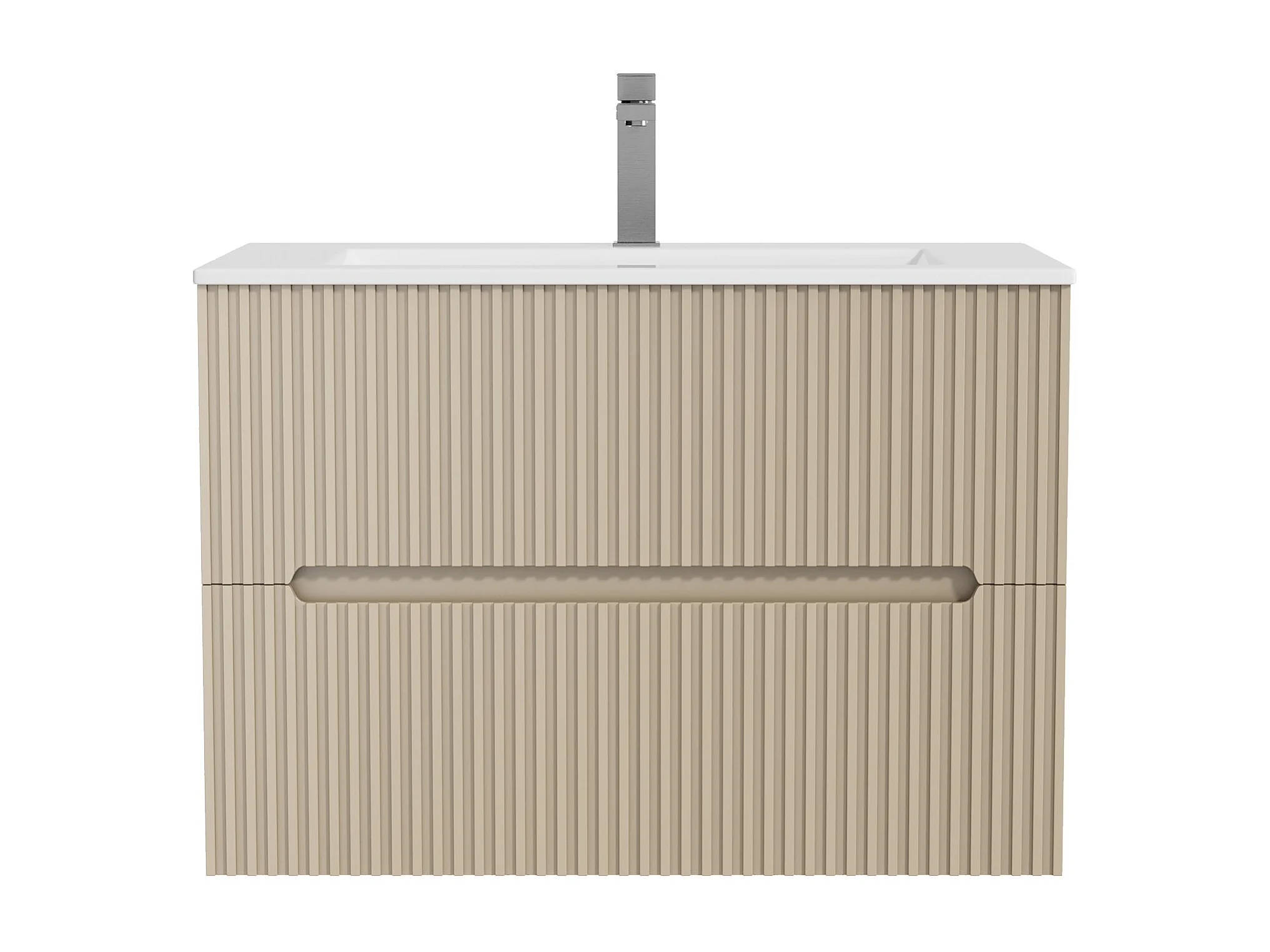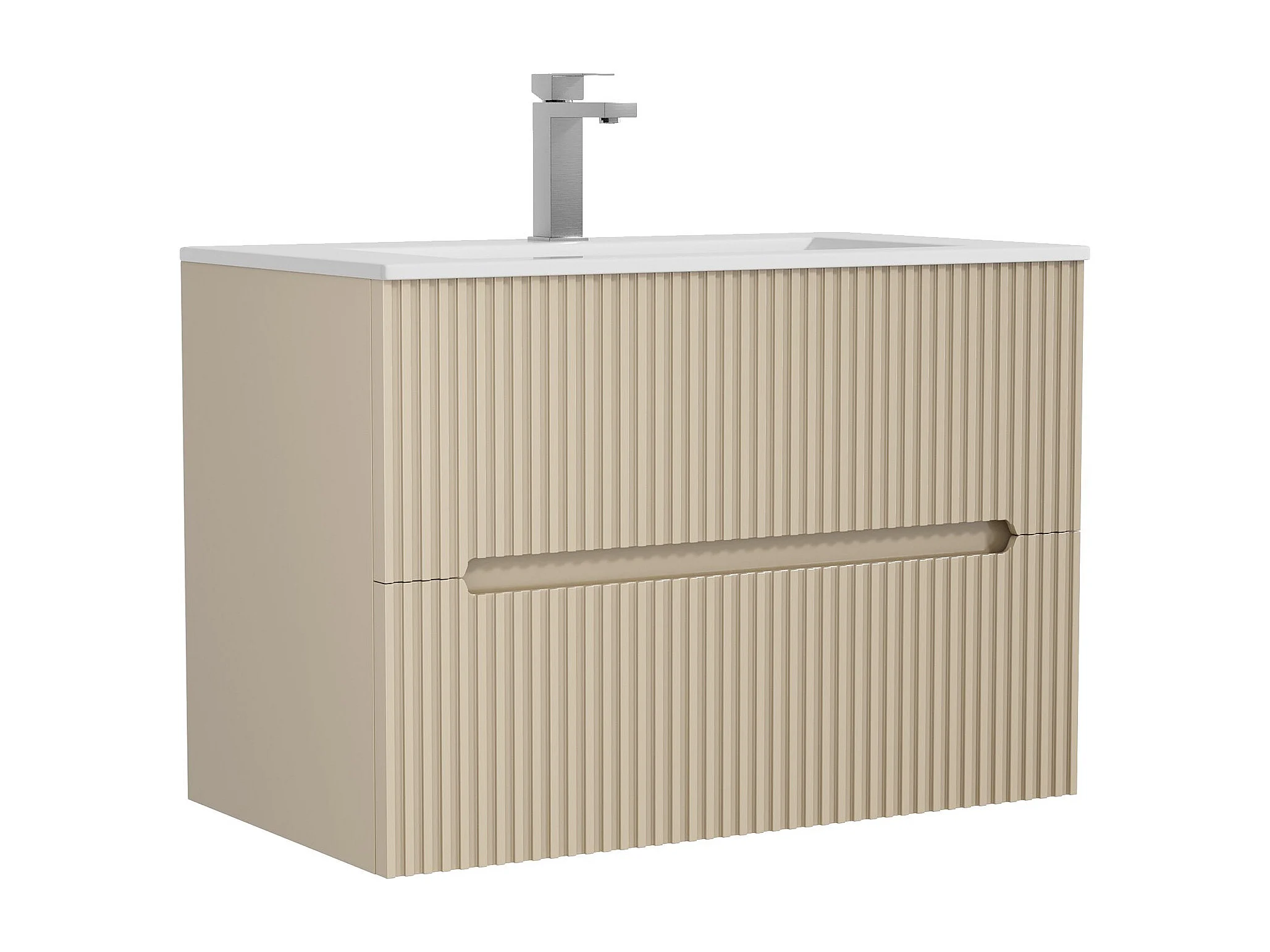 Meuble de salle de bain suspendu avec vasque à encastrer et robinet - Strié beige- 80 cm - PAVANI