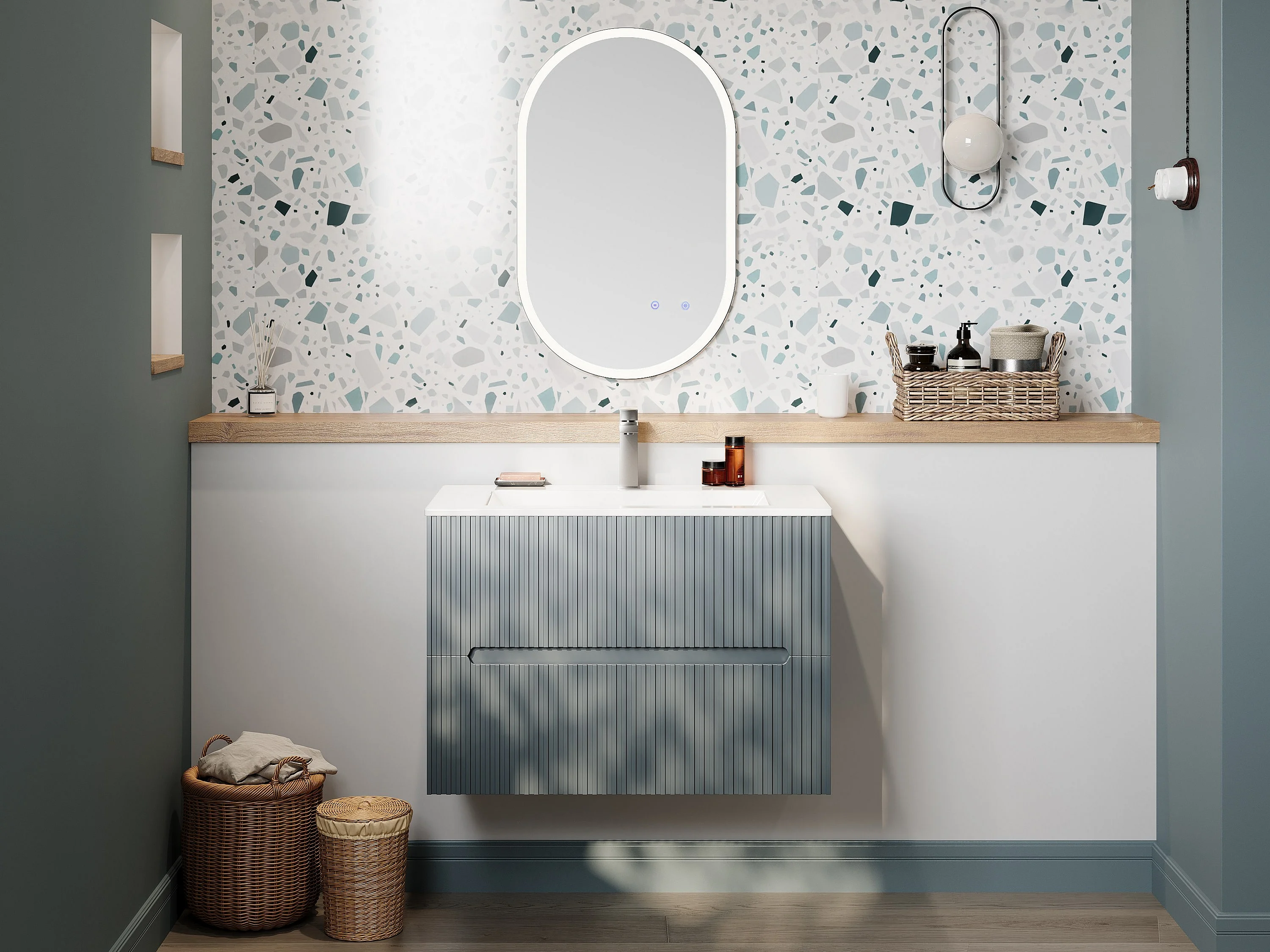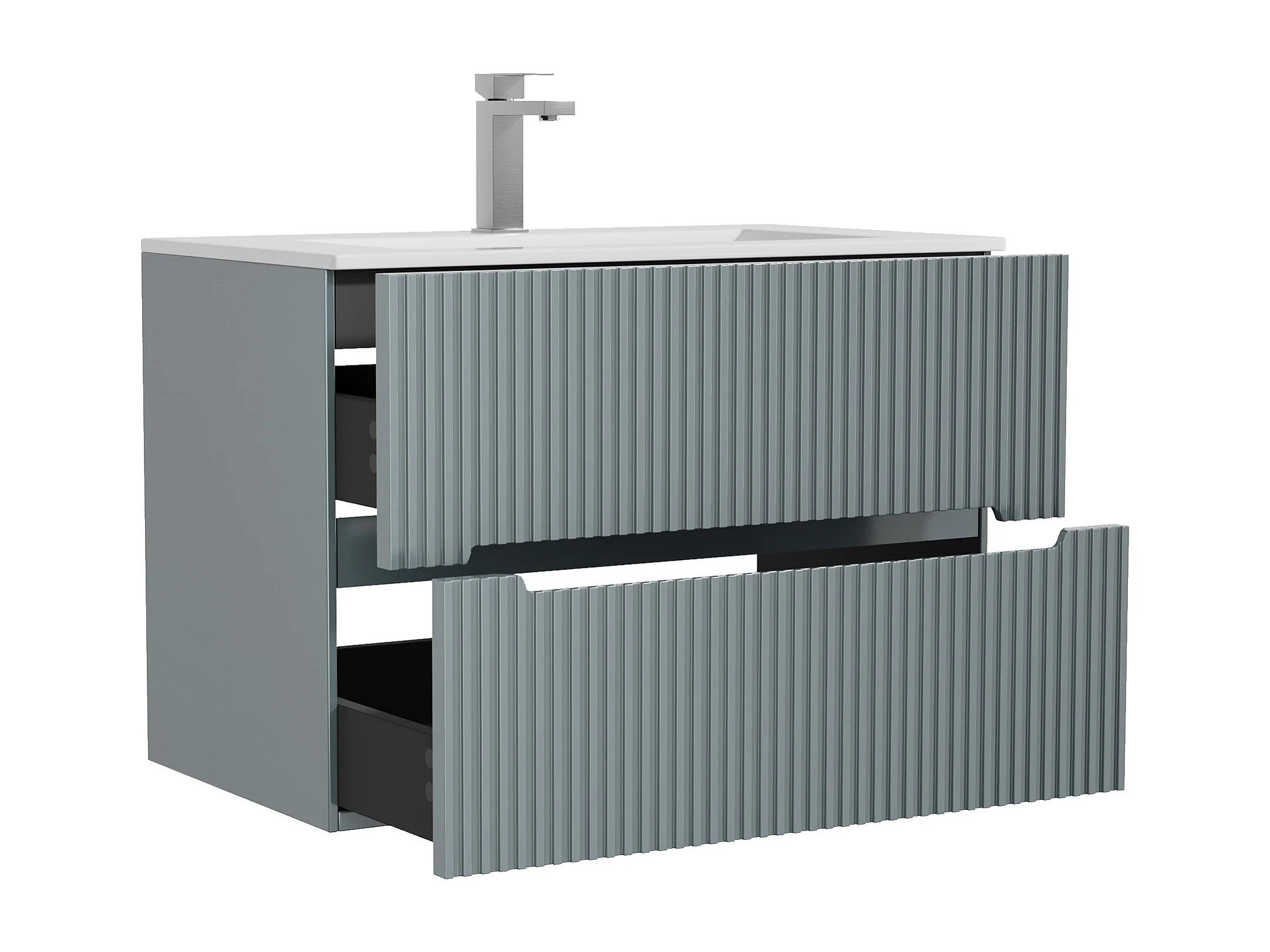 Meuble de salle de bain suspendu avec vasque à encastrer et robinet - Strié bleu ciel - 80 cm - PAVANI
