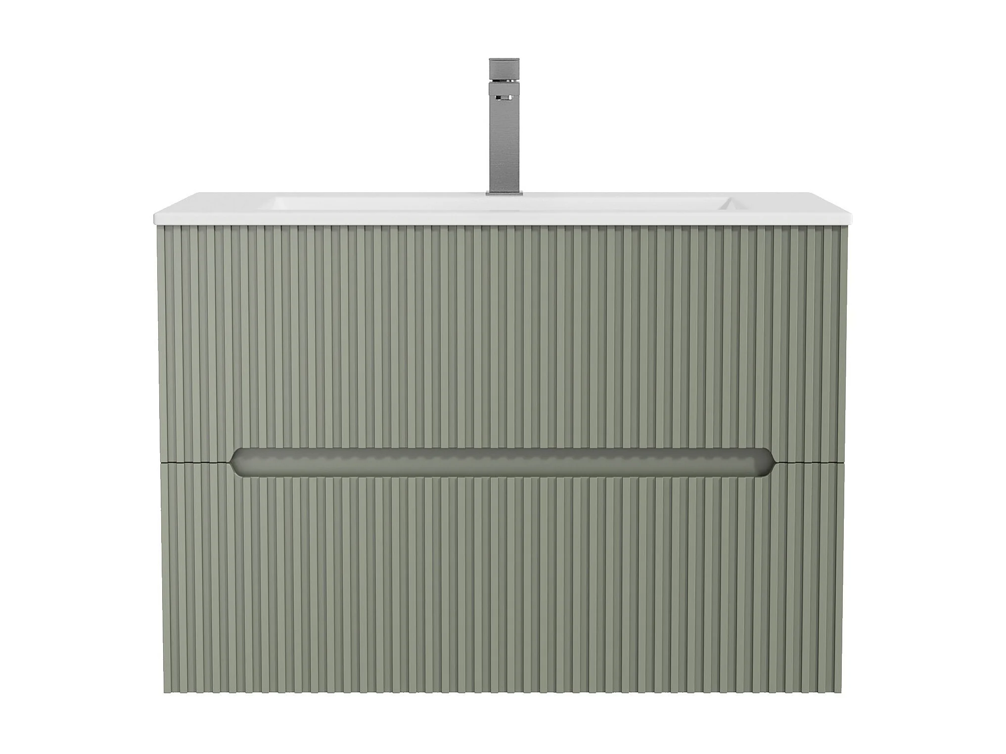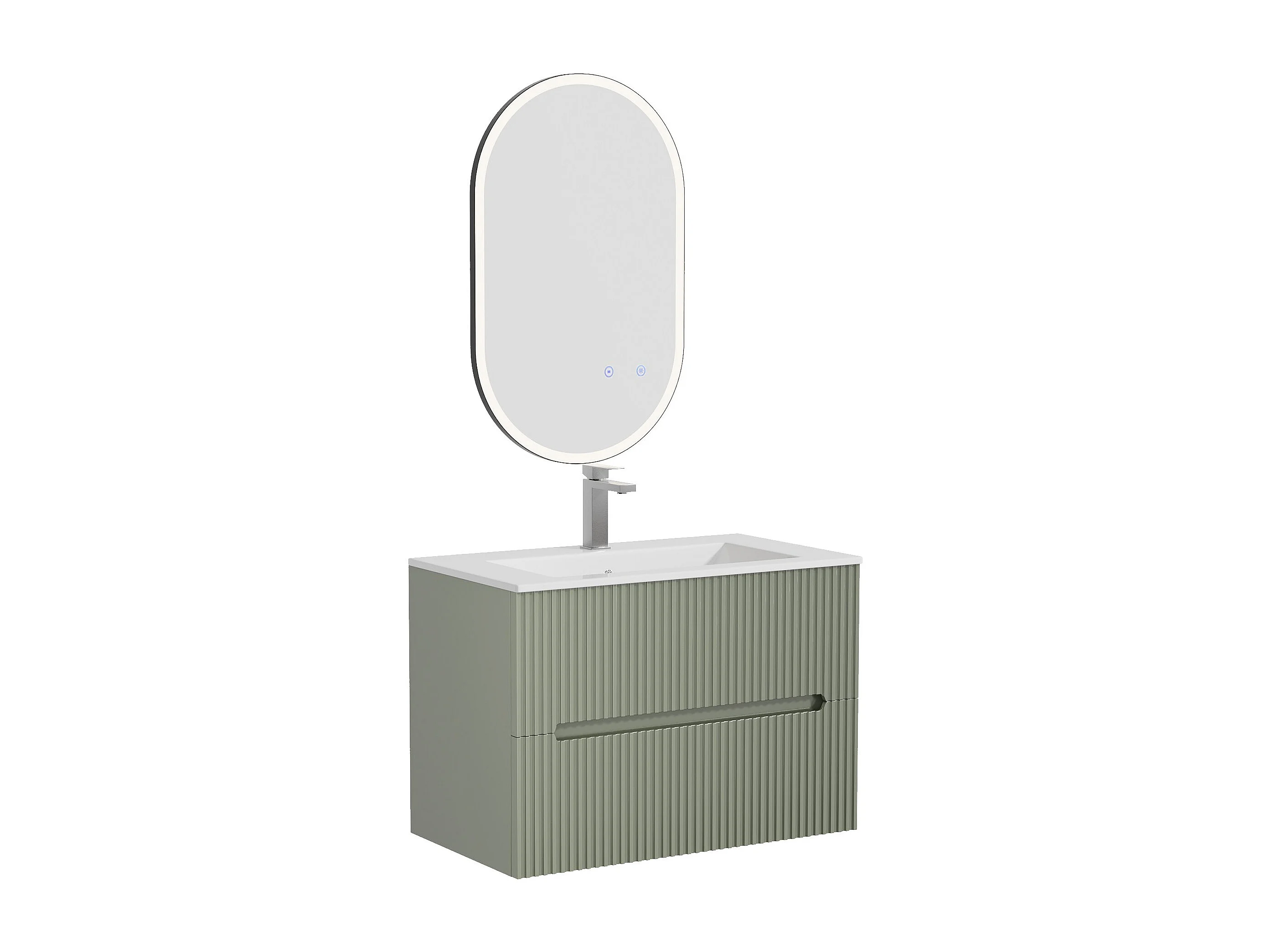 Meuble de salle de bain suspendu avec vasque à encastrer, robinet et miroir - Strié vert- 80 cm - PAVANI
