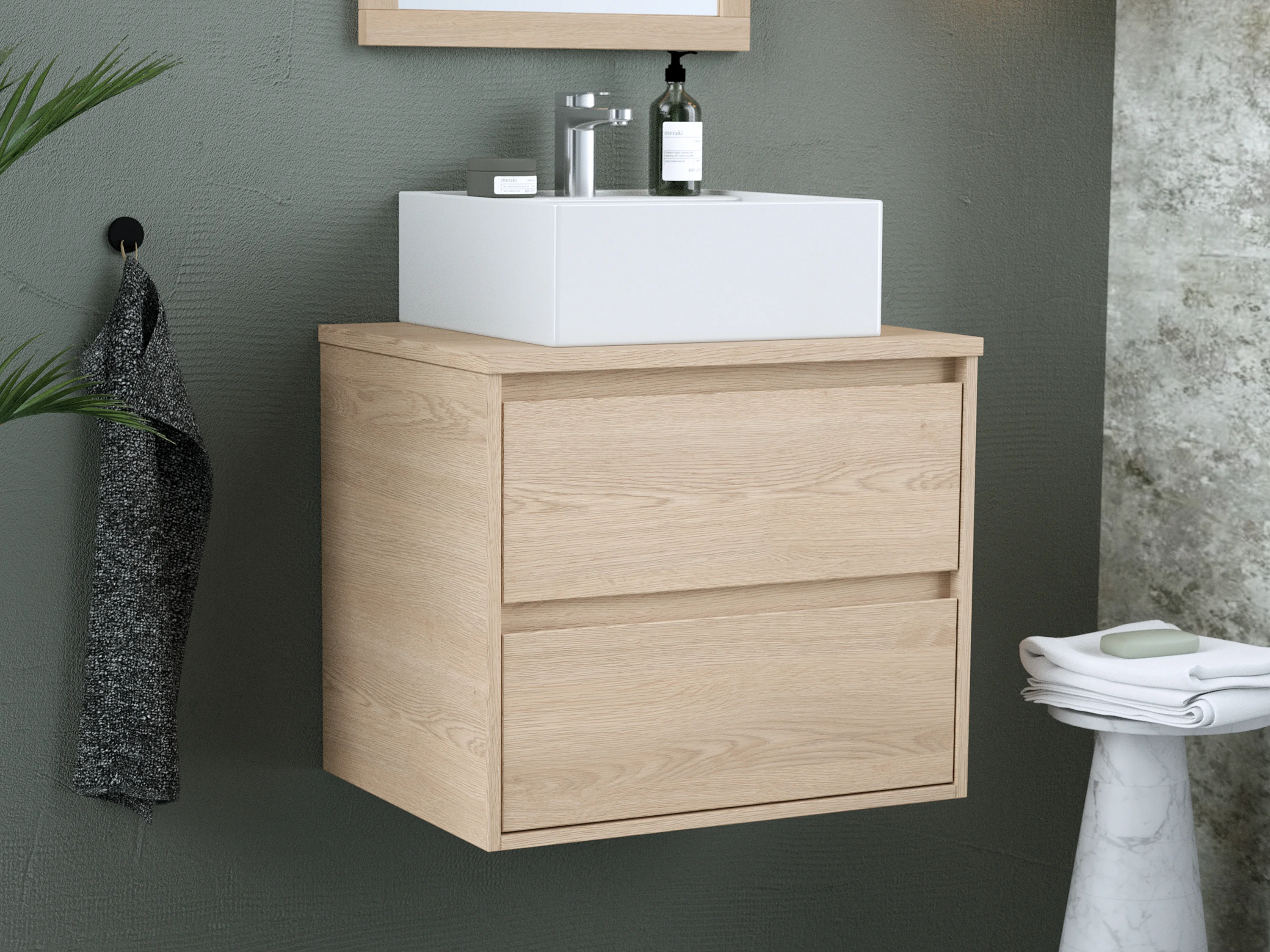 Meuble de salle de bain suspendu avec vasque à poser - Placage chêne - 60 cm - MILIPAM