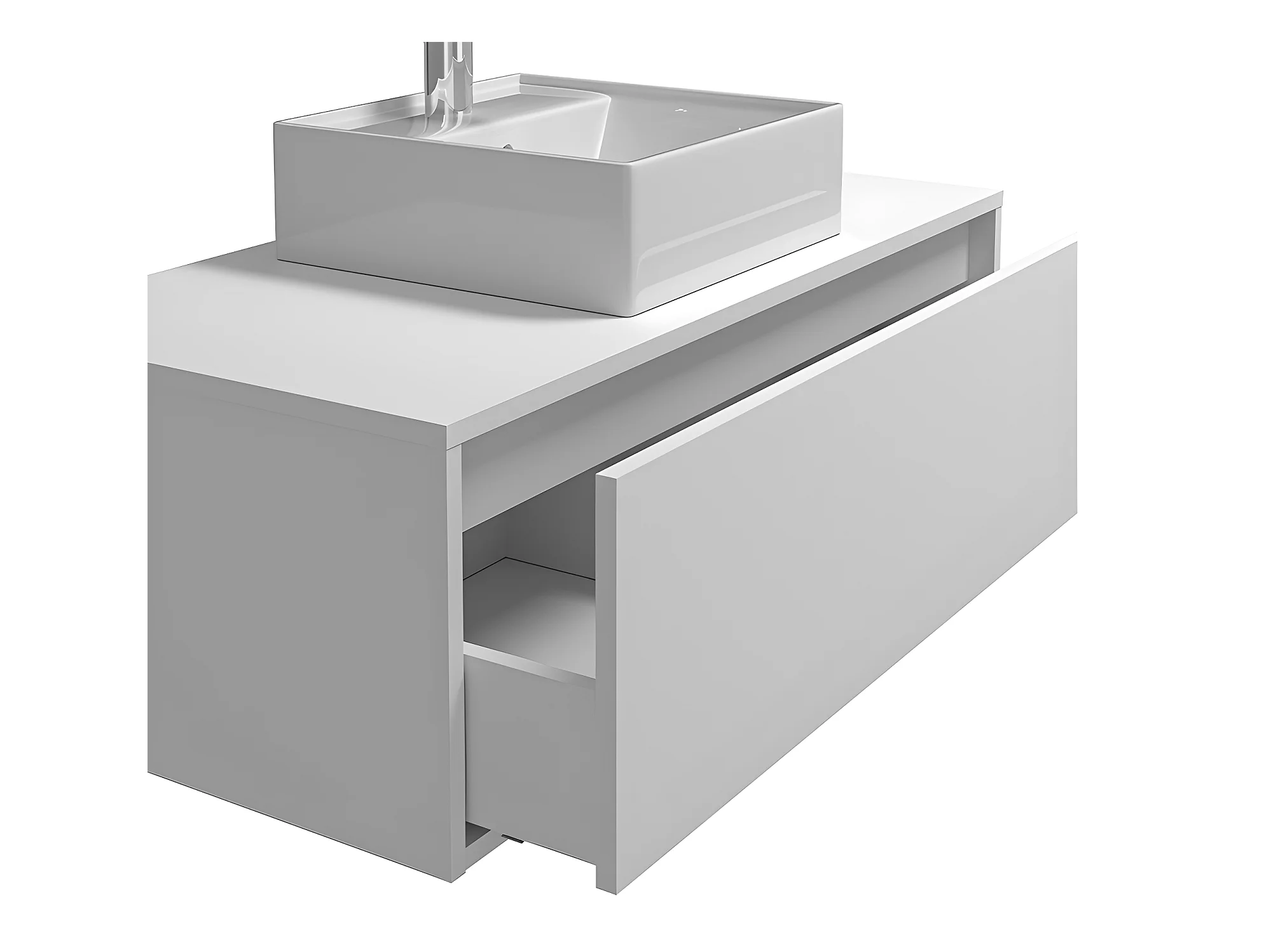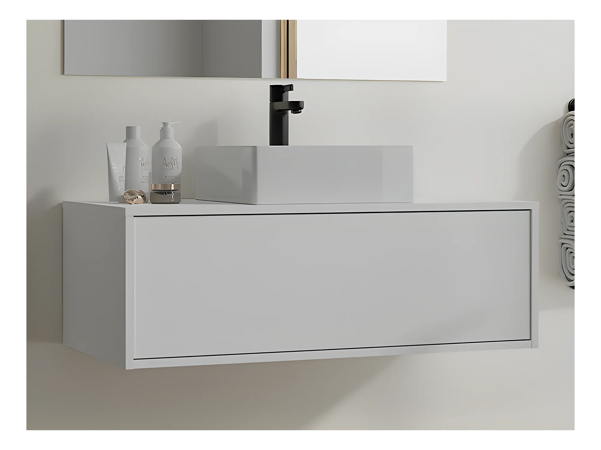 Meuble de salle de bain suspendu blanc avec simple vasque carrée - 94 cm - TEANA II