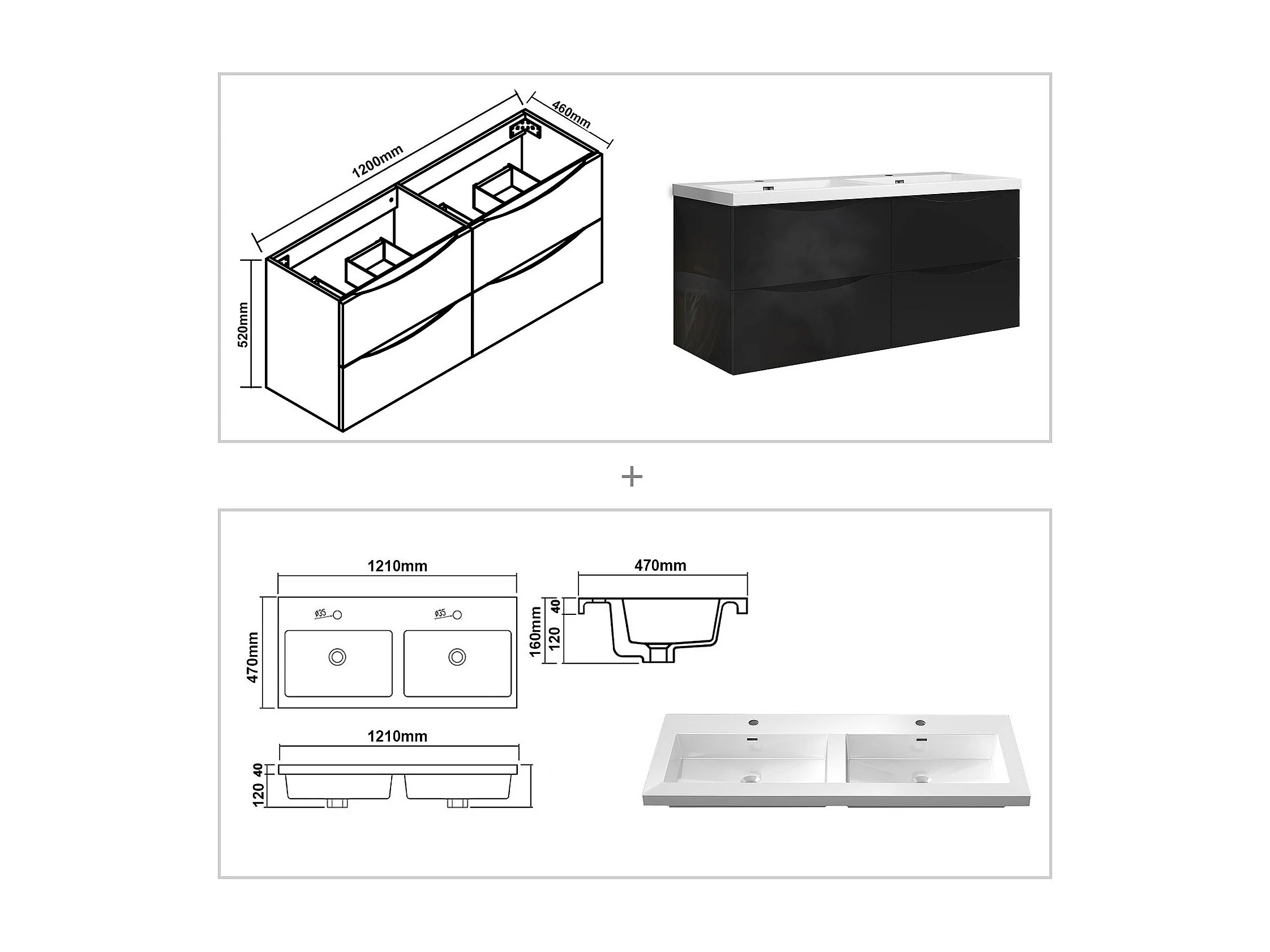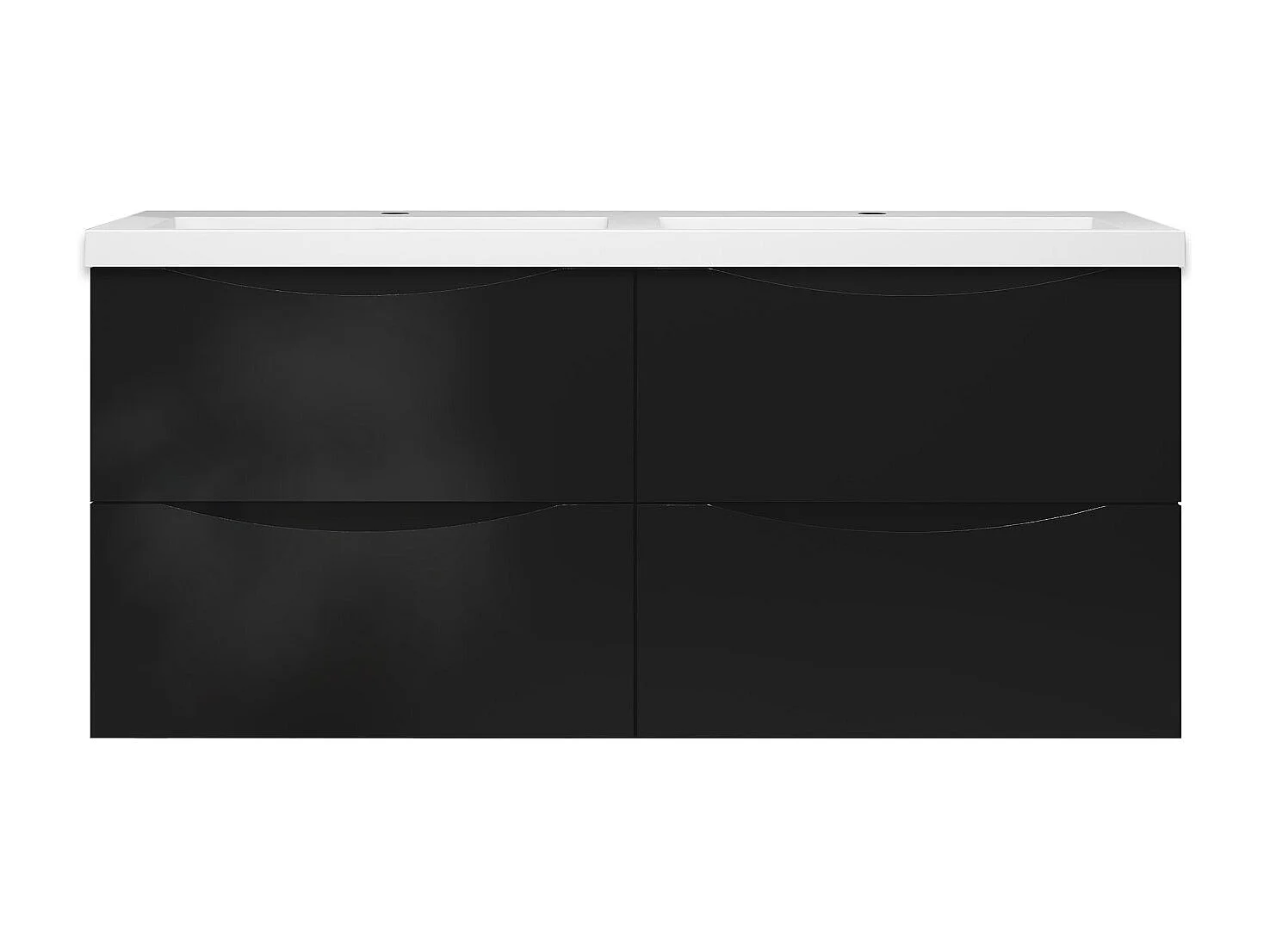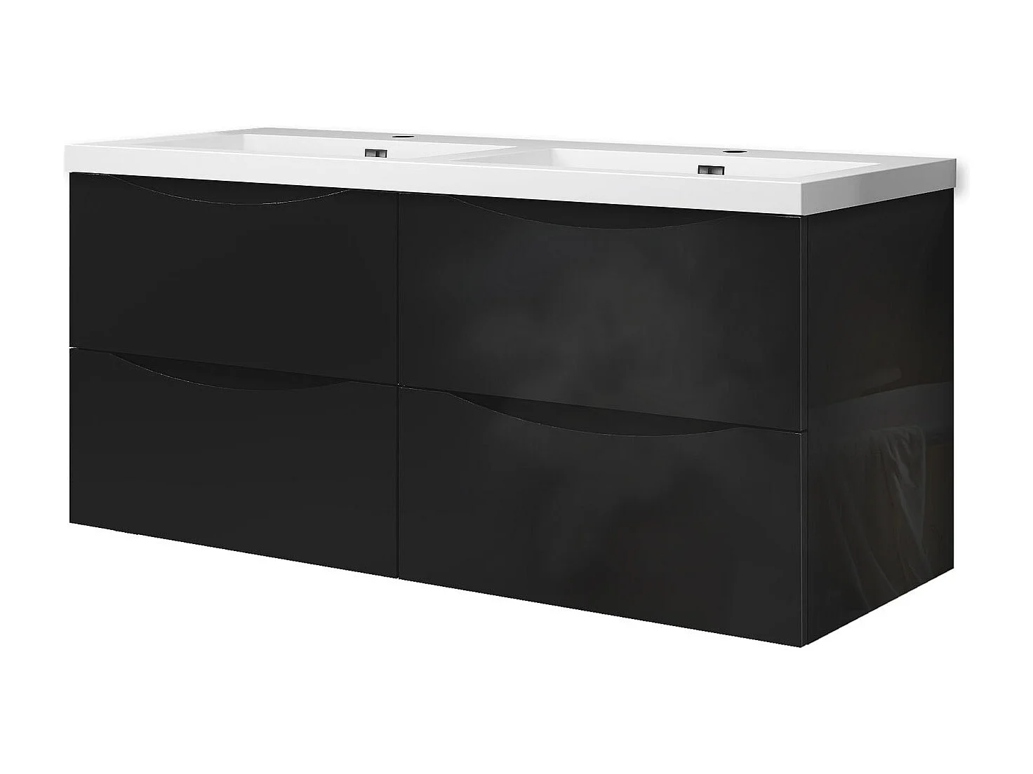 Meuble de salle de bain suspendu Brillant 120cm avec simple lavabo + 4 tiroirs, Noir