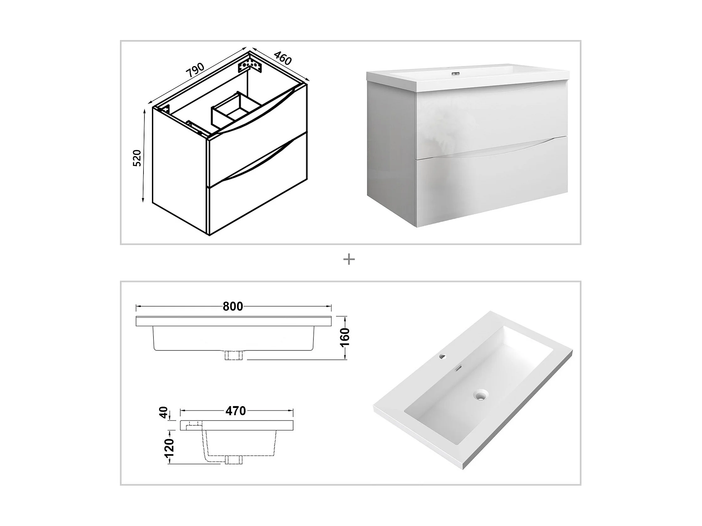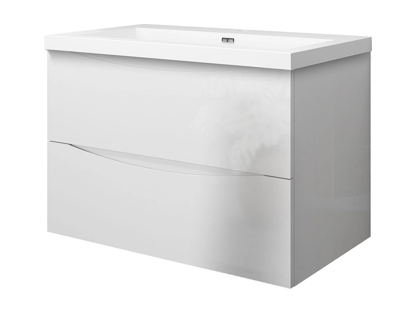 Meuble de salle de bain suspendu Brillant 80cm avec simple lavabo + 2 tiroirs, Blanc