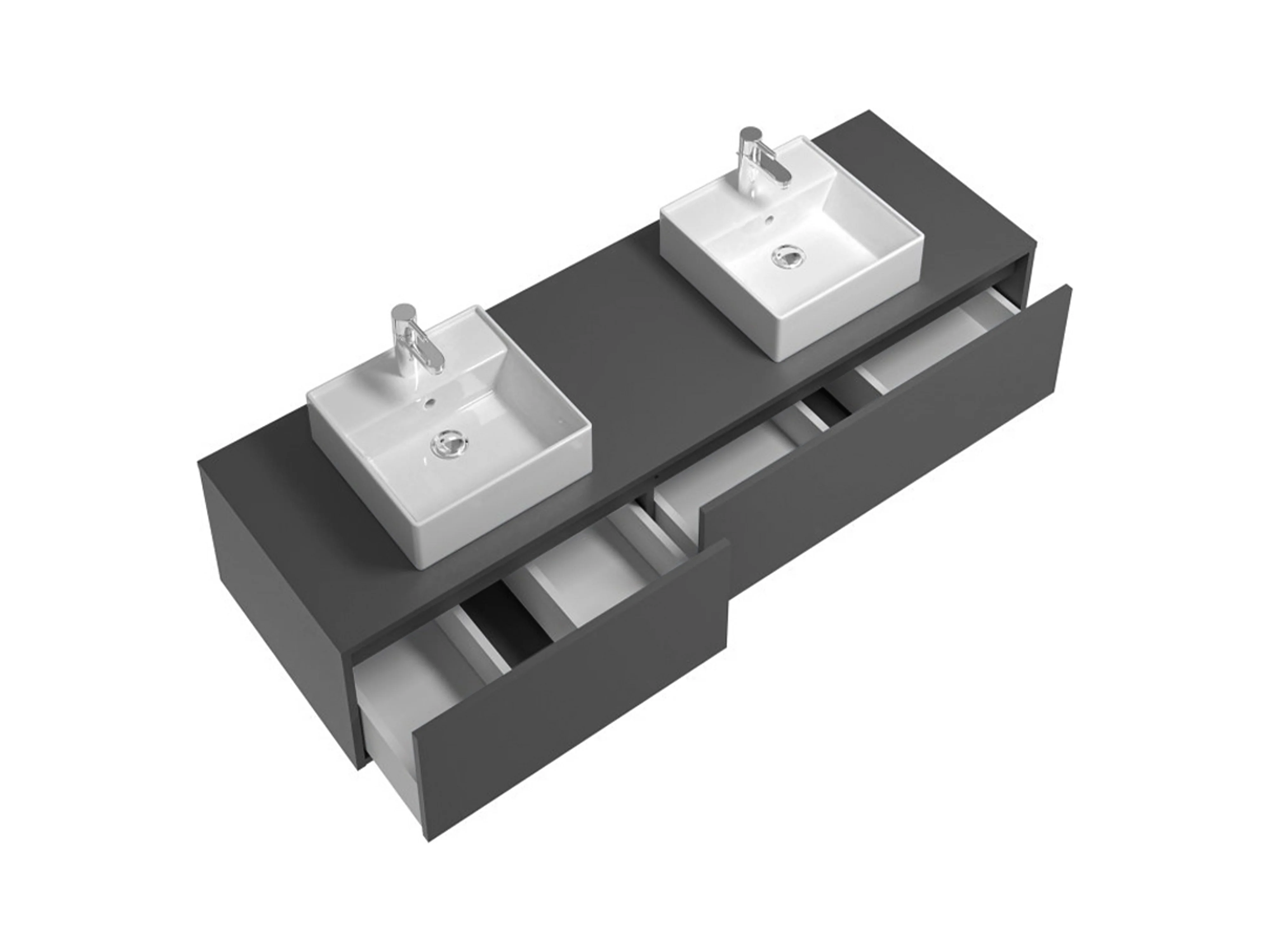 Meuble de salle de bain suspendu coloris gris anthracite avec double vasque - L150 cm - ISAURE II
