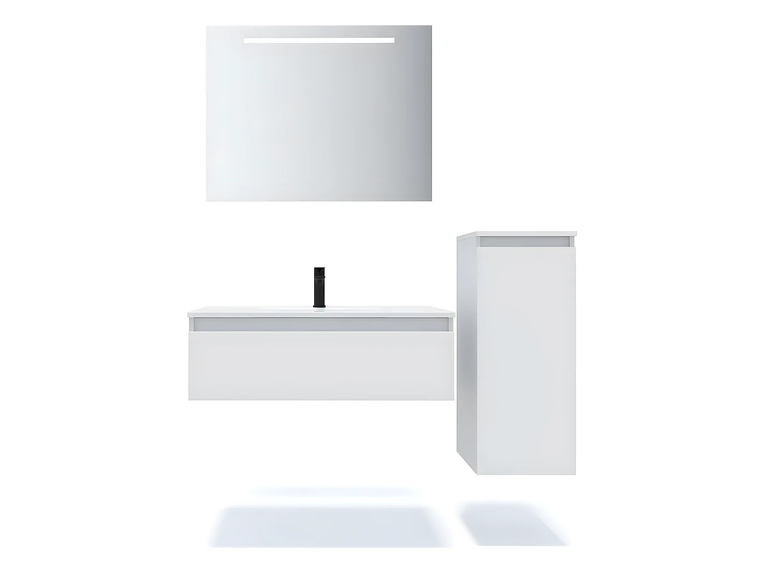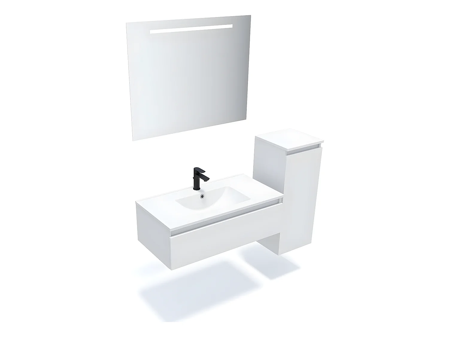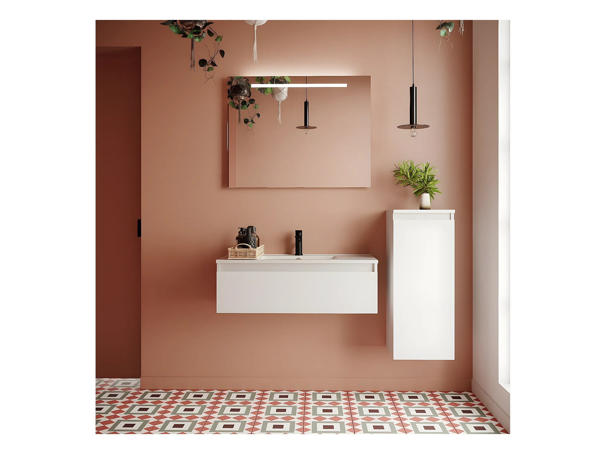 Meuble de salle de bain suspendu double vasque intégrée 120cm 1 tiroir Blanc + miroir + colonne ouverture droite - Hudson