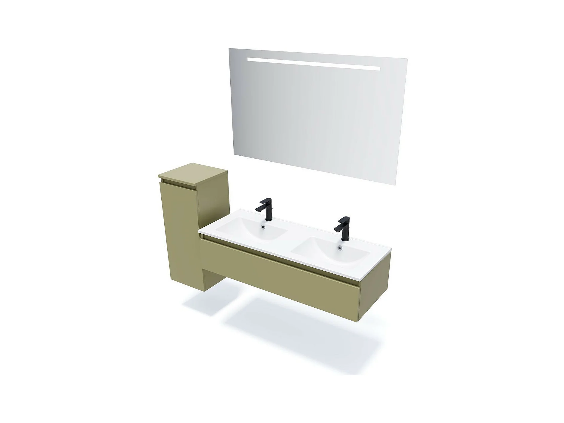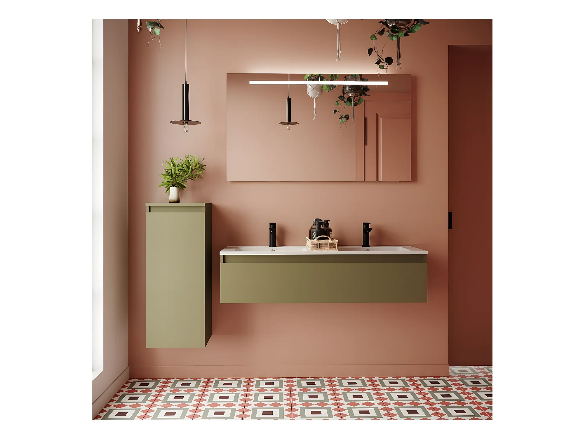Meuble de salle de bain suspendu double vasque intégrée 120cm 1 tiroir Vert olive + miroir - Hudson