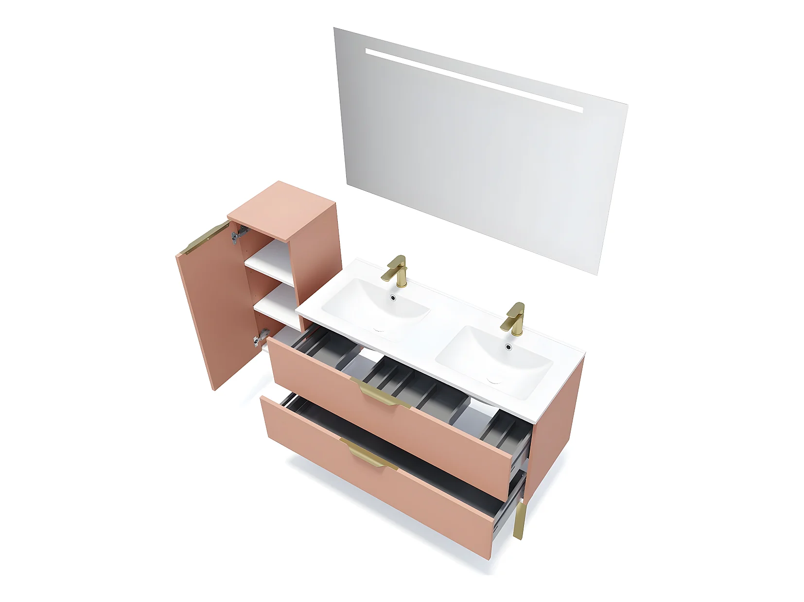 Meuble de salle de bain suspendu double vasque intégrée 120cm 2 tiroirs Abricot - Venice