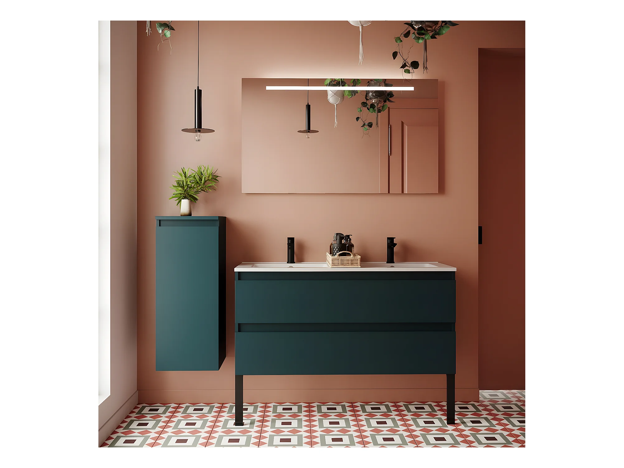 Meuble de salle de bain suspendu double vasque intégrée 120cm 2 tiroirs Bleu - Hudson