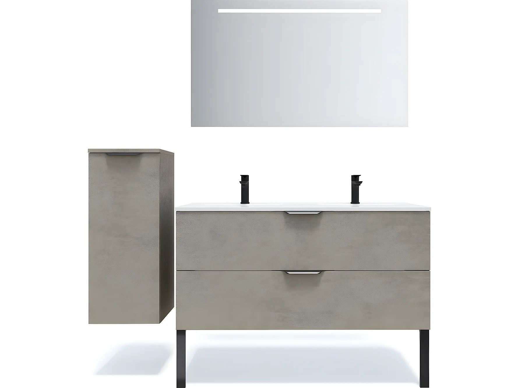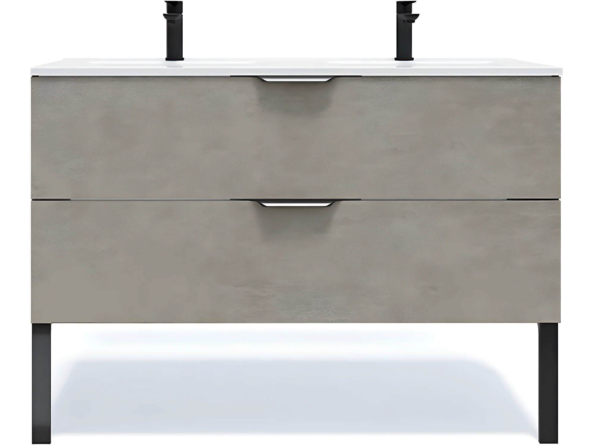 Meuble de salle de bain suspendu double vasque intégrée 120cm 2 tiroirs façon Béton - Venice