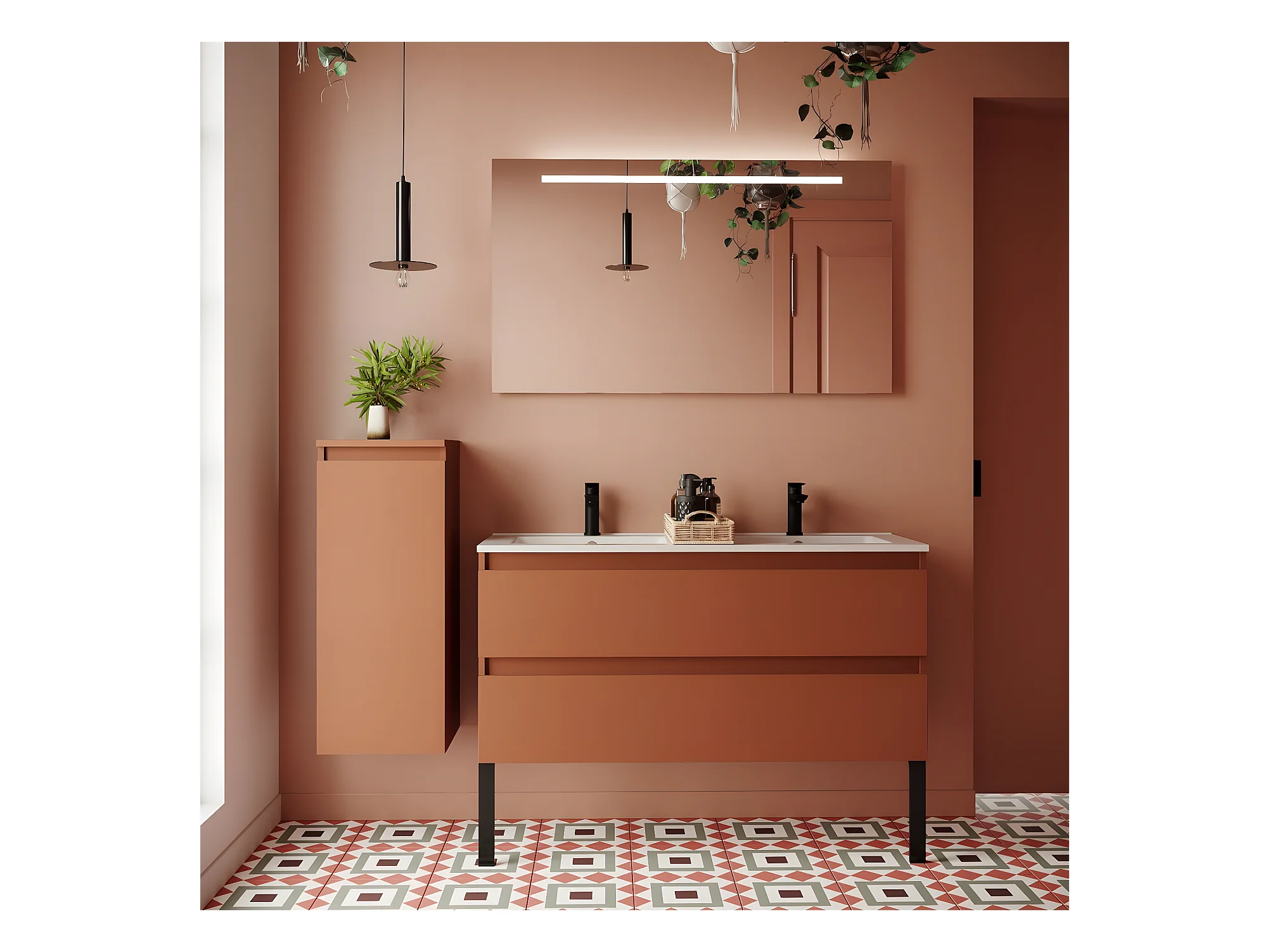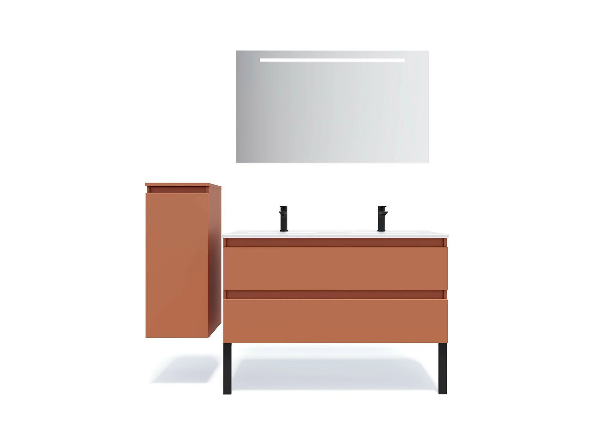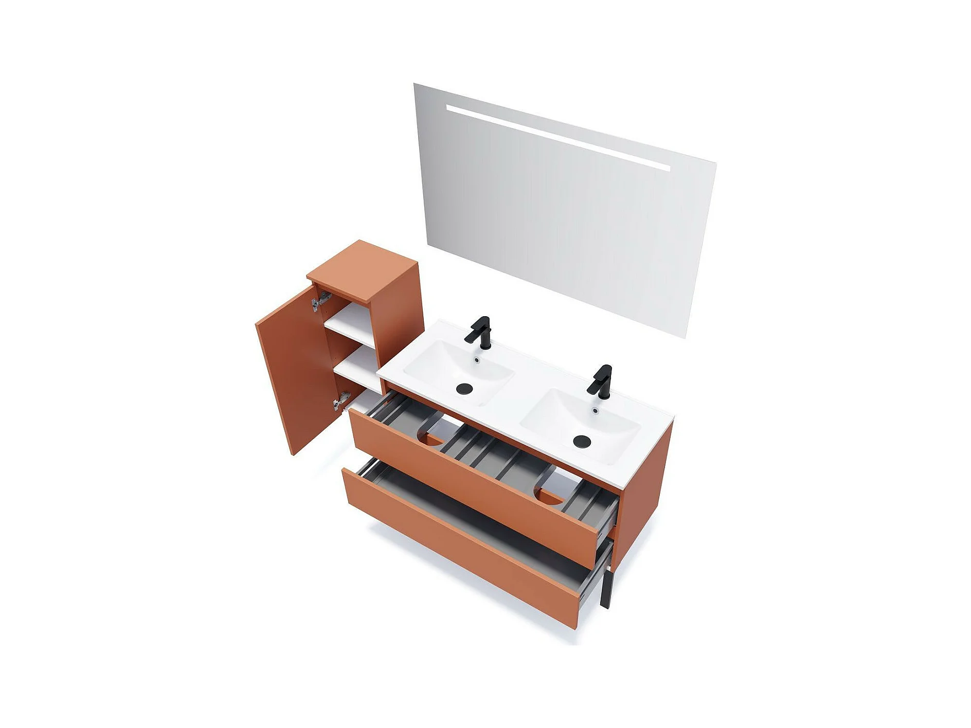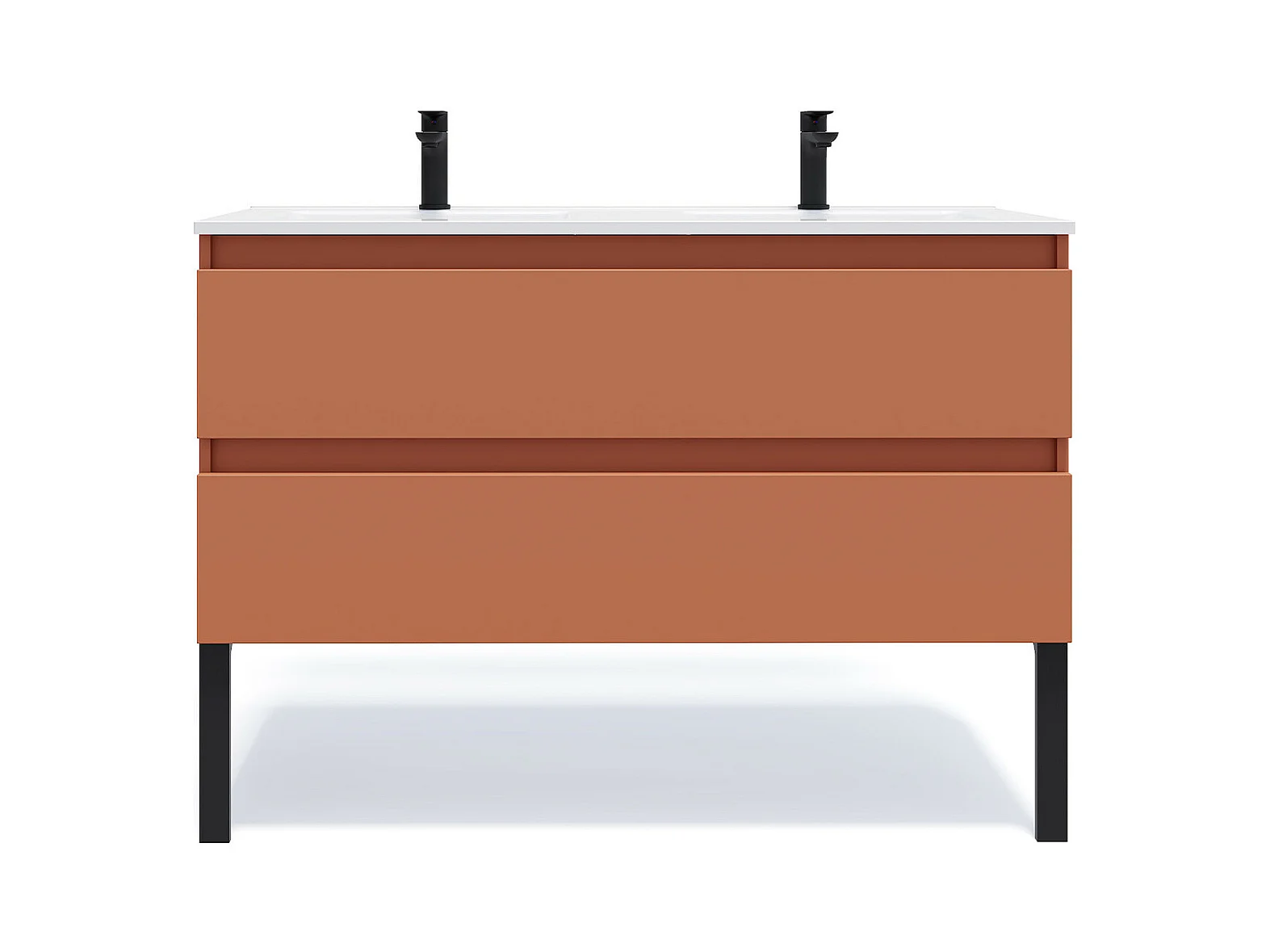 Meuble de salle de bain suspendu double vasque intégrée 120cm 2 tiroirs Terracotta - Hudson