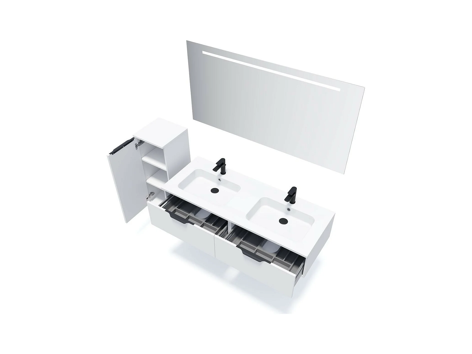 Meuble de salle de bain suspendu double vasque intégrée 140cm 2 tiroirs Blanc + miroir - Soho