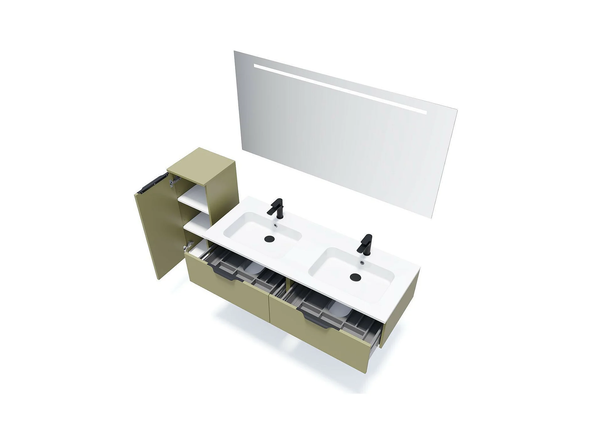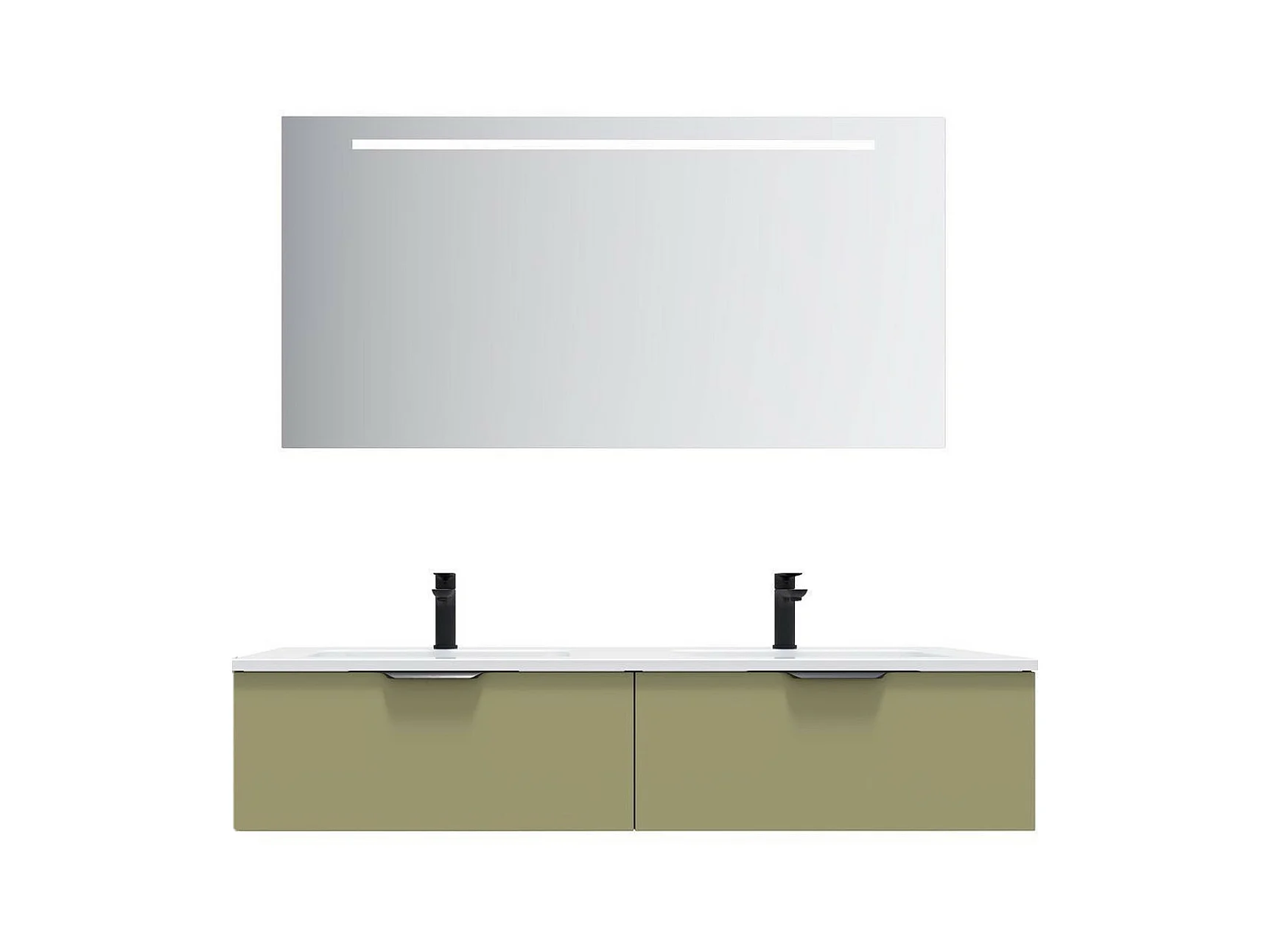 Meuble de salle de bain suspendu double vasque intégrée 140cm 2 tiroirs Vert olive + miroir - Soho