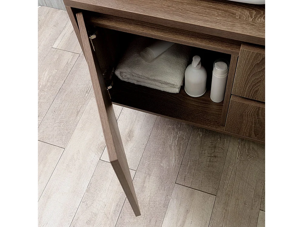Meuble De Salle De Bain Suspendu En Noyer Foncé Avec Double Lavabo D'appui Et Miroir | Siena