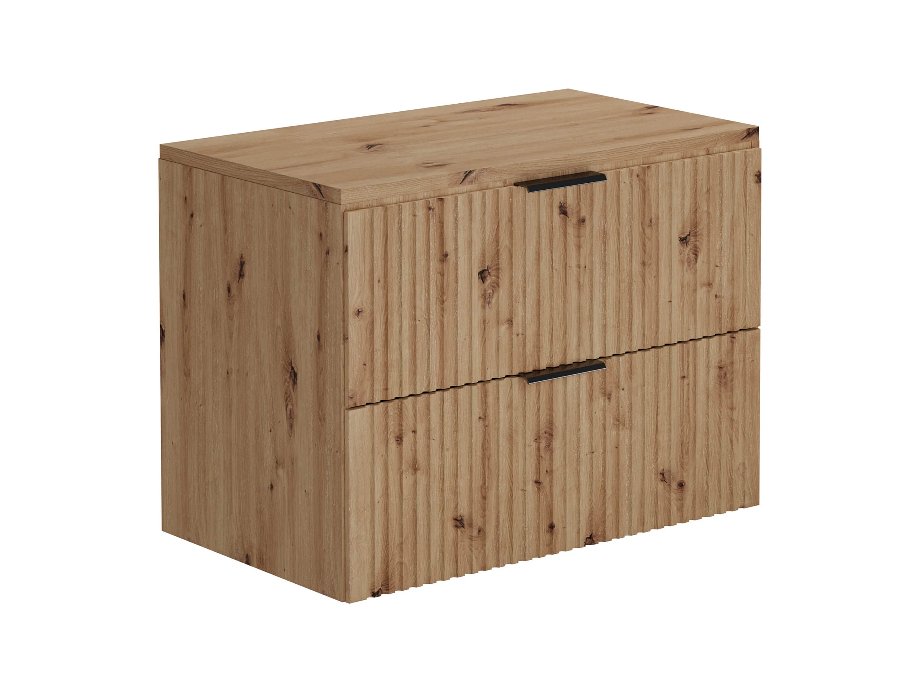 Meuble de salle de bain suspendu strié avec vasque à poser carrée - Naturel clair - L80 cm - ZEVARA
