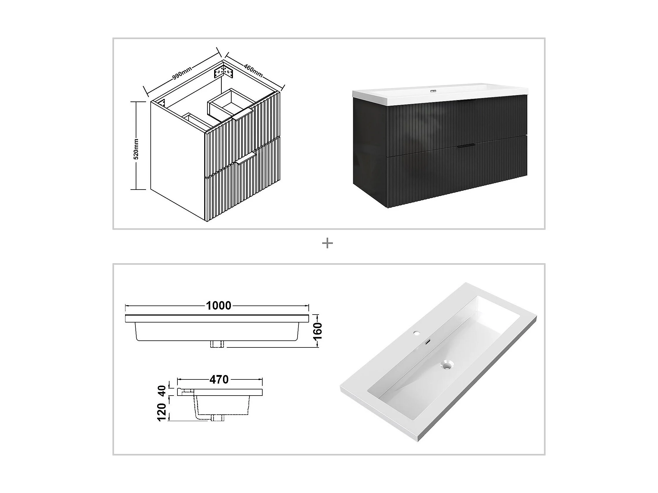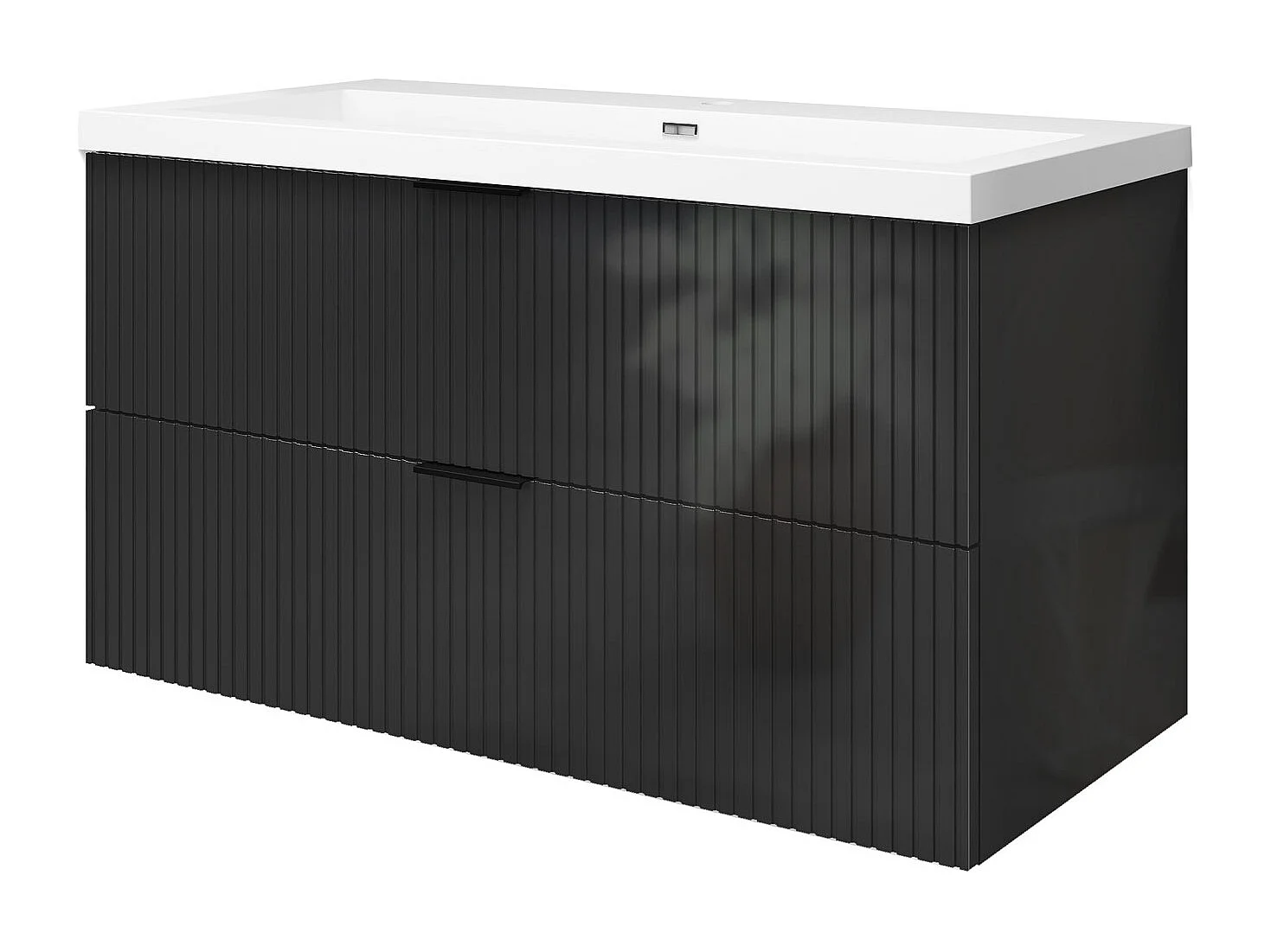 Meuble de salle de bain suspendu Strié Brillant 100cm avec simple lavabo + 2 tiroirs, Anthracite