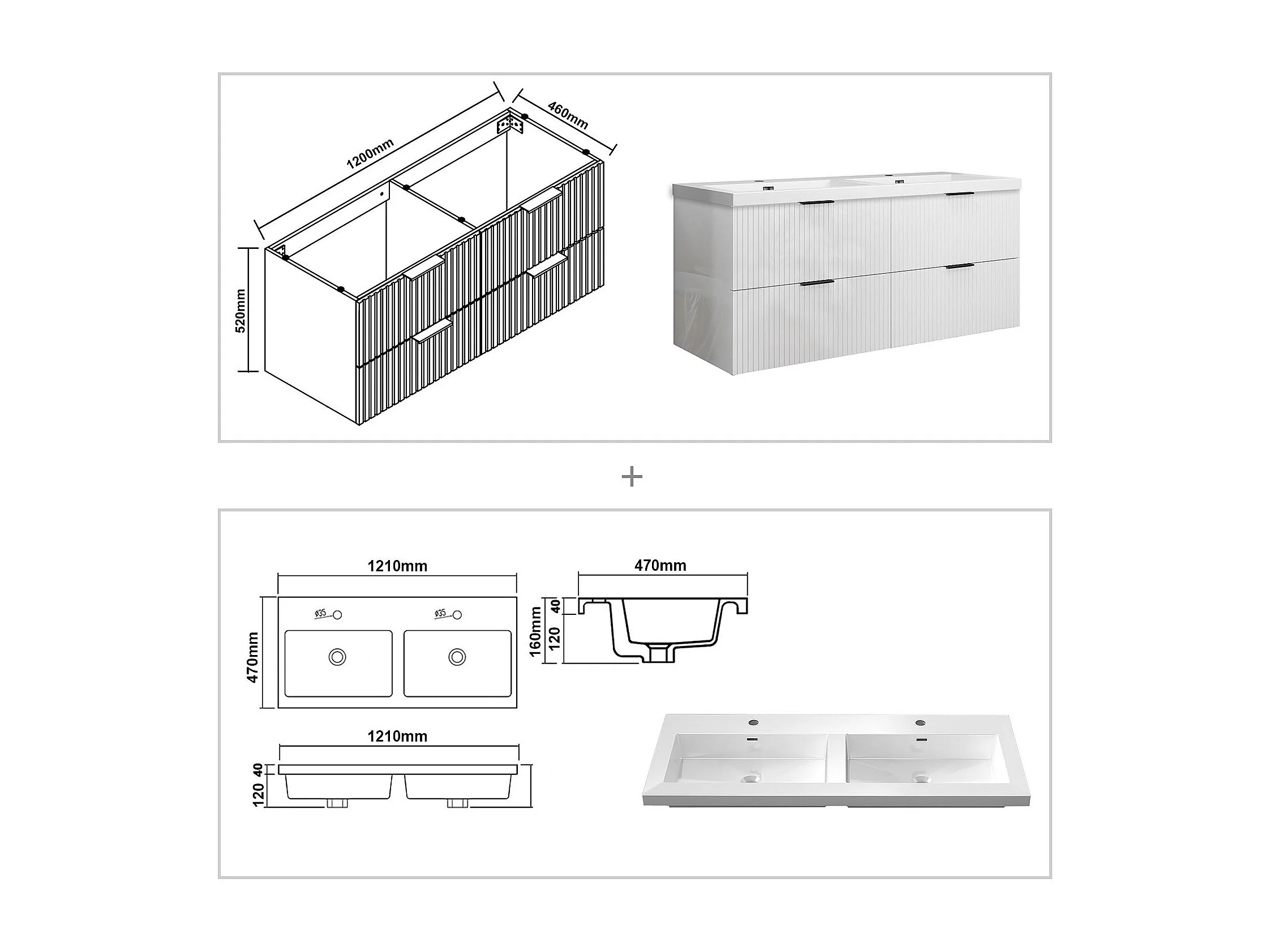 Meuble de salle de bain suspendu Strié Brillant 120cm avec simple lavabo + 4 tiroirs, Blanc