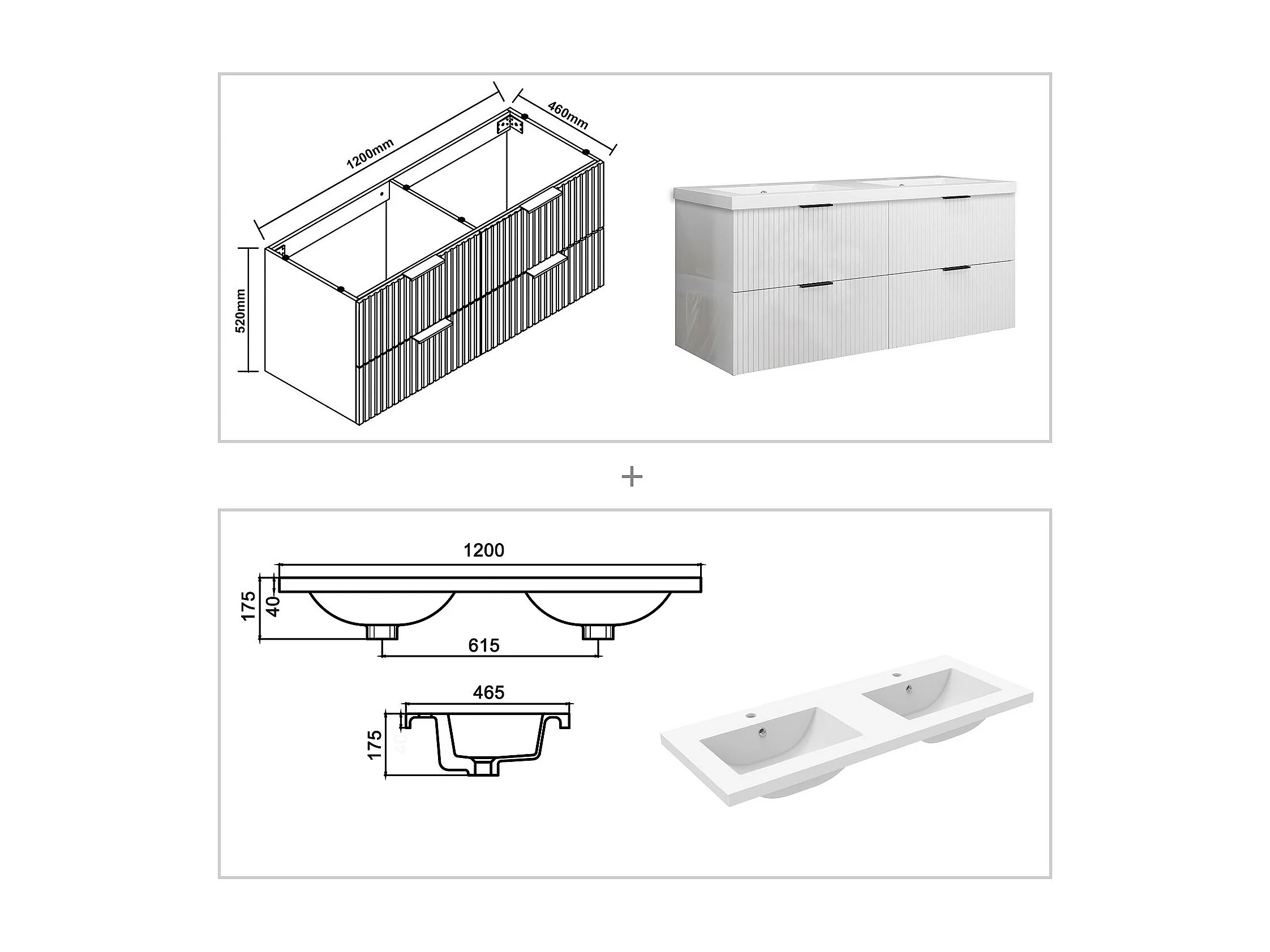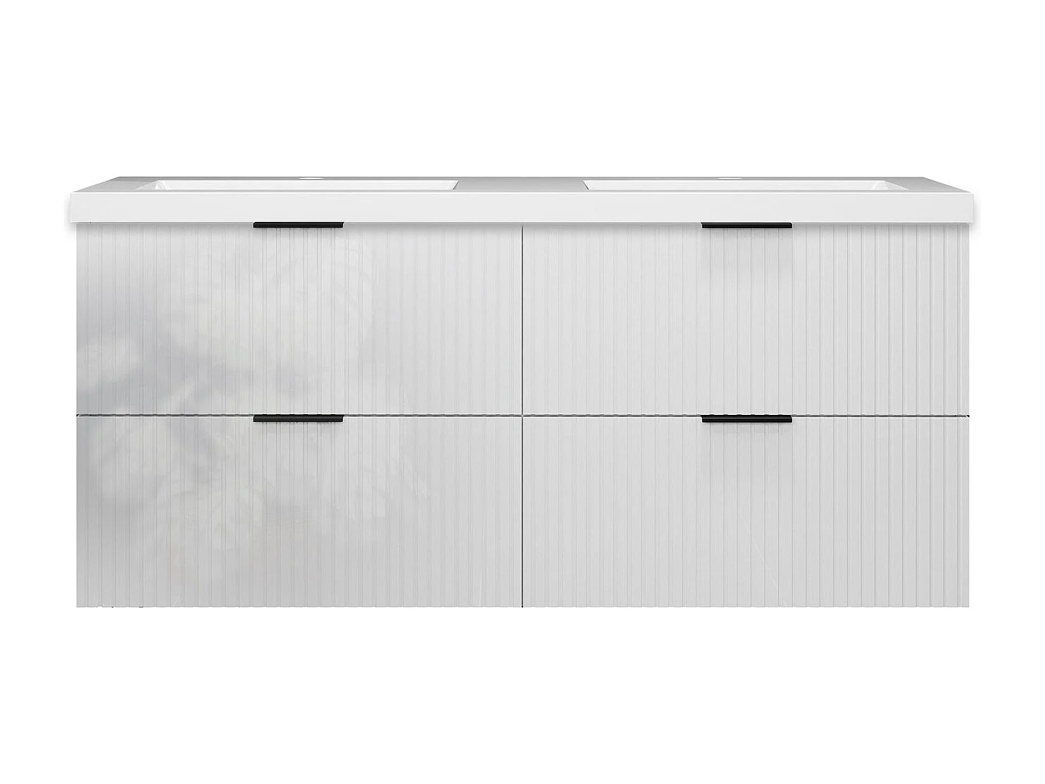 Meuble de salle de bain suspendu Strié Brillant 120cm avec simple vasque + 4 tiroirs, Blanc