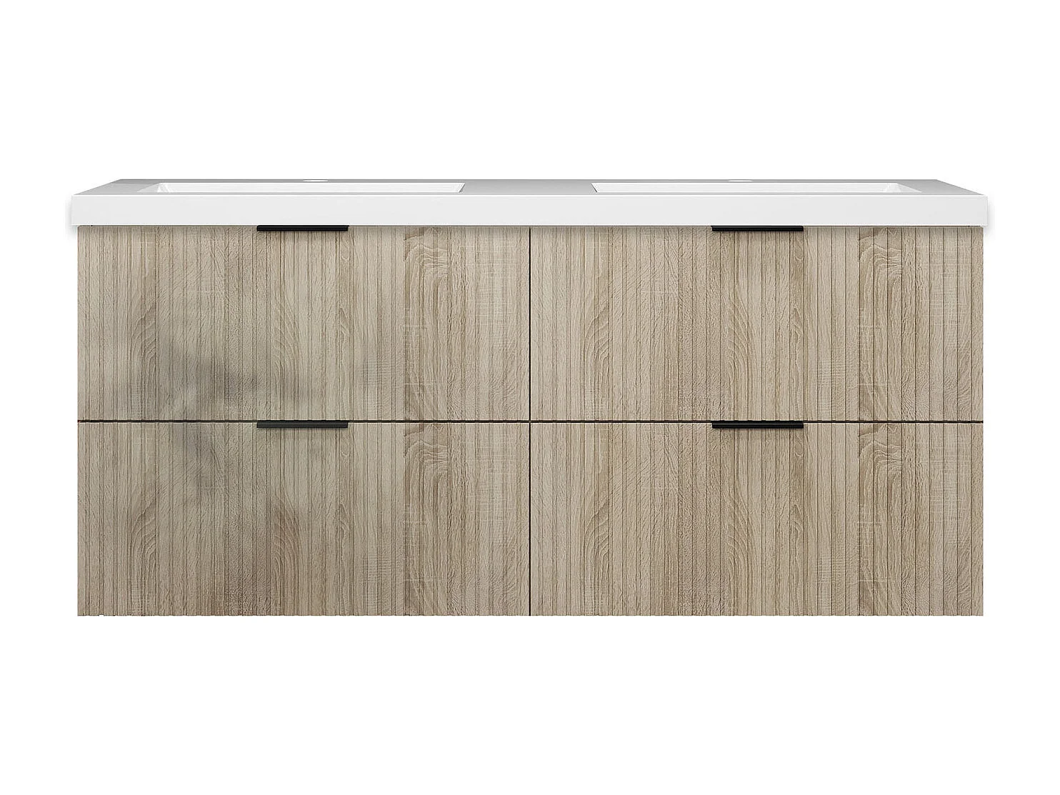 Meuble de salle de bain suspendu Strié Brillant 120cm avec simple vasque + 4 tiroirs, Chêne