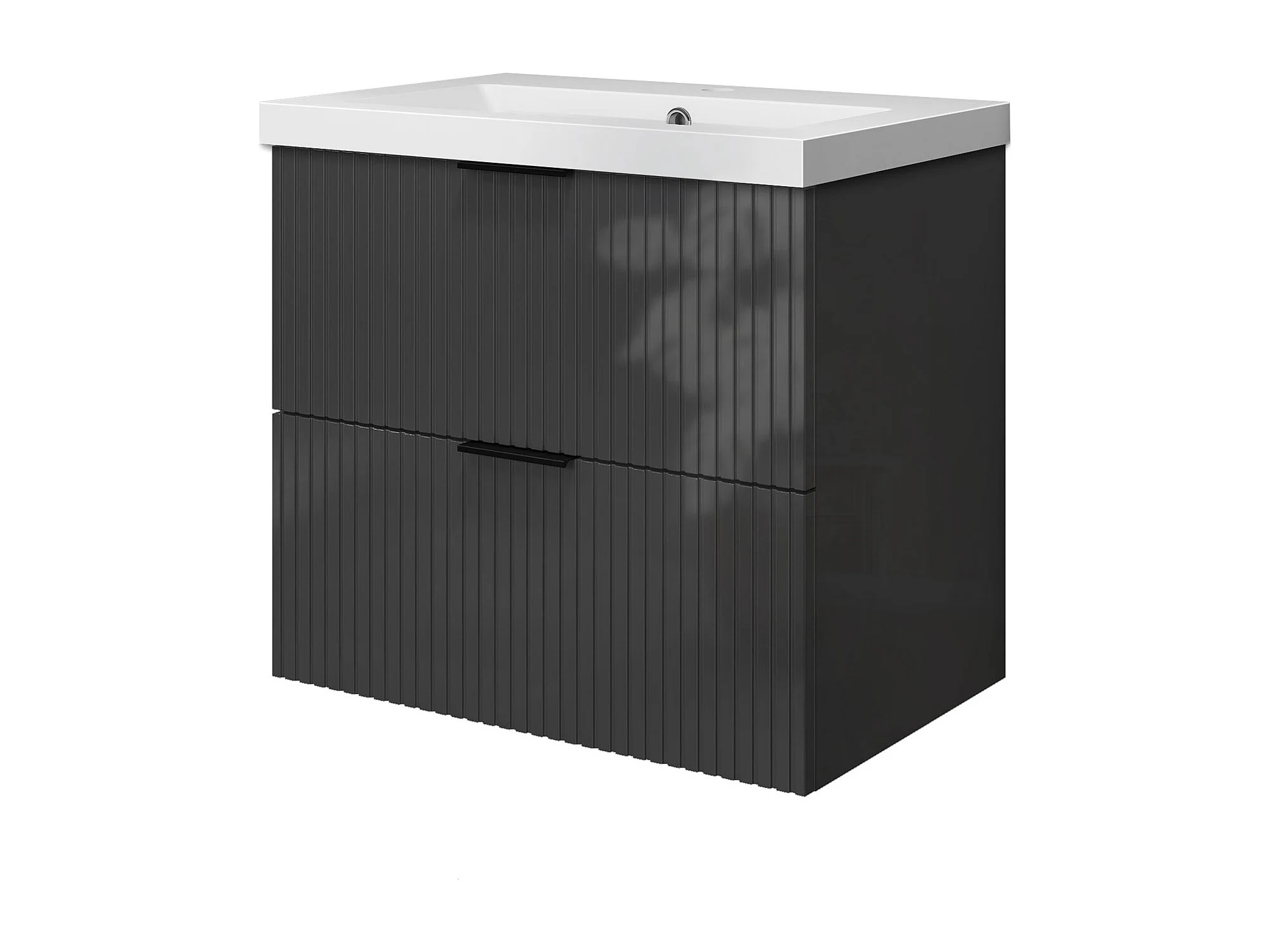 Meuble de salle de bain suspendu Strié Brillant 60cm avec simple vasque + 2 tiroirs, Anthracite