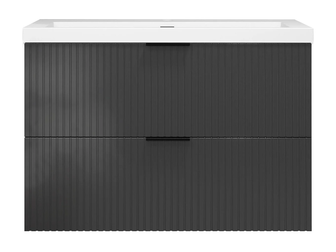 Meuble de salle de bain suspendu Strié Brillant 80cm avec simple lavabo + 2 tiroirs, Anthracite