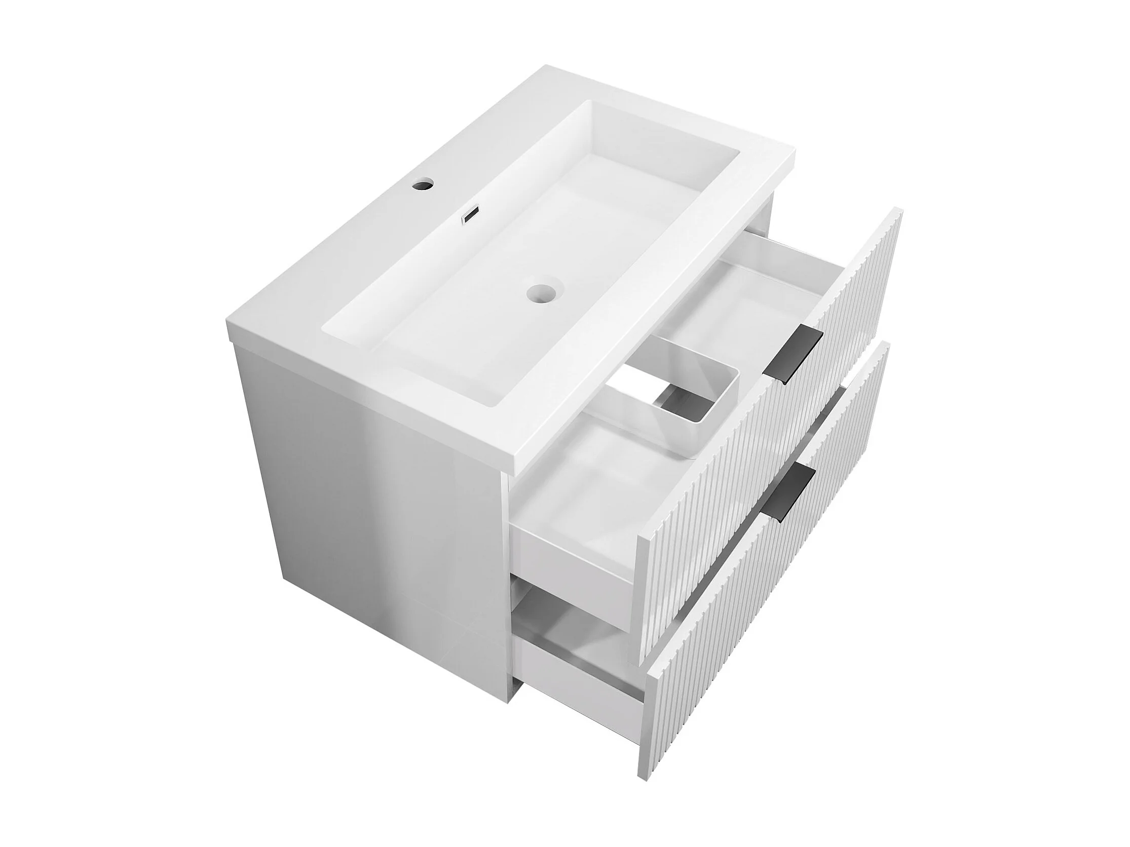 Meuble de salle de bain suspendu Strié Brillant 80cm avec simple lavabo + 2 tiroirs, Blanc