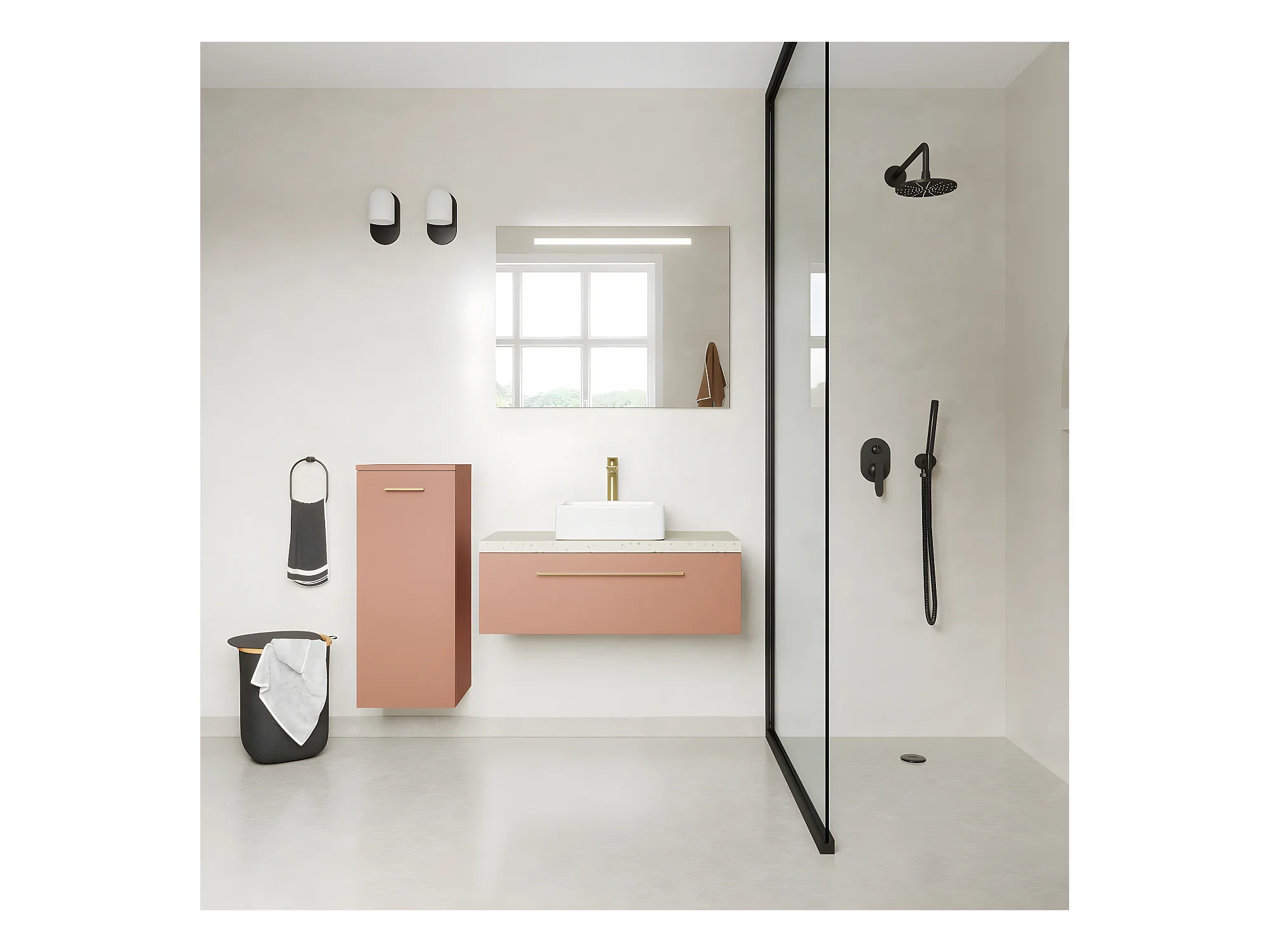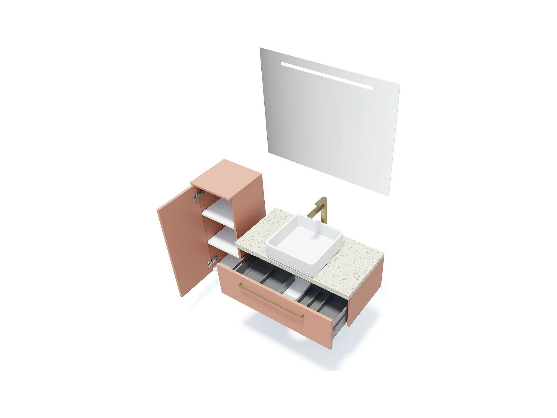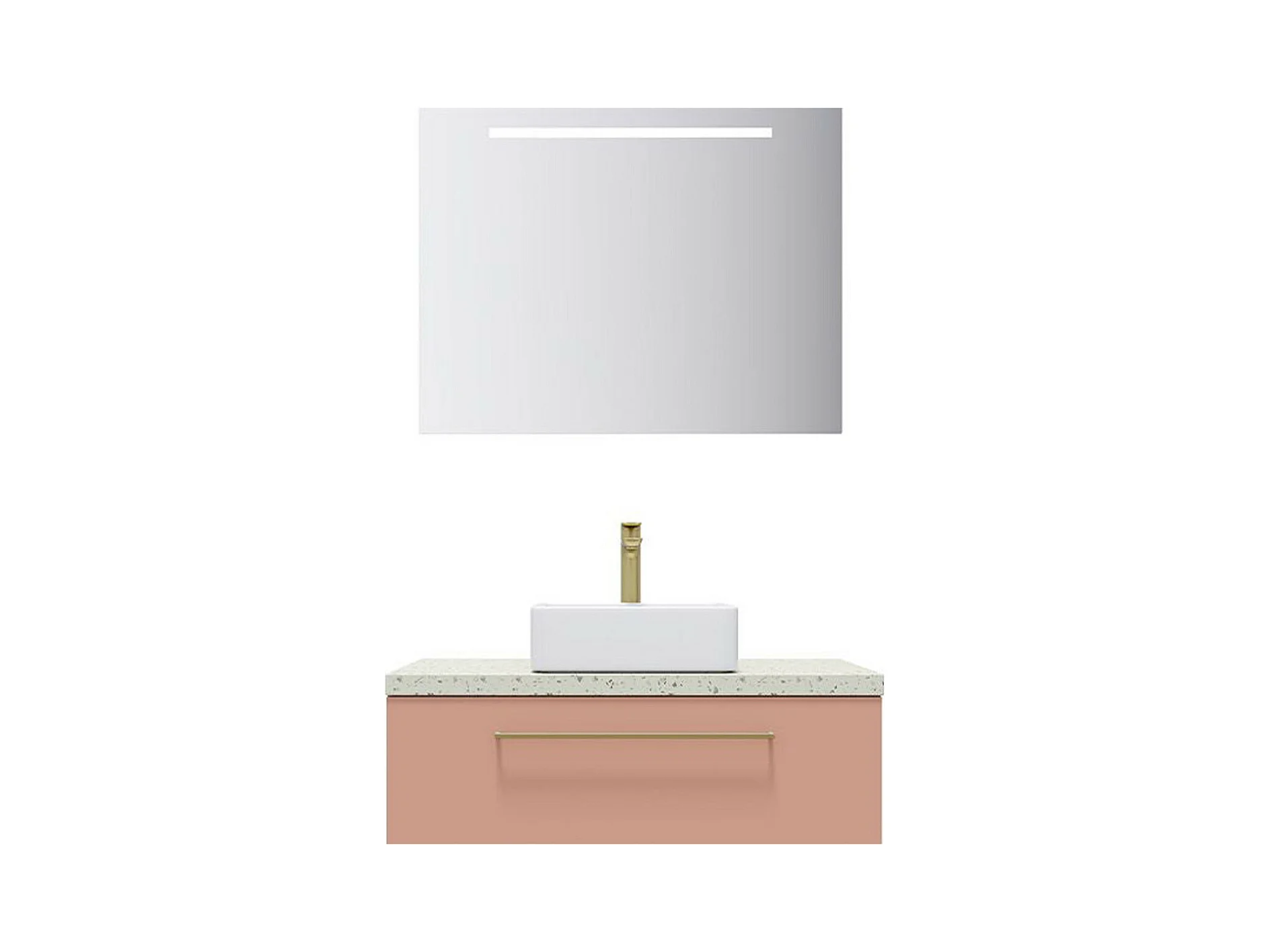Meuble de salle de bain suspendu vasque à poser 90cm 1 tiroir Abricot + miroir - Glasgow