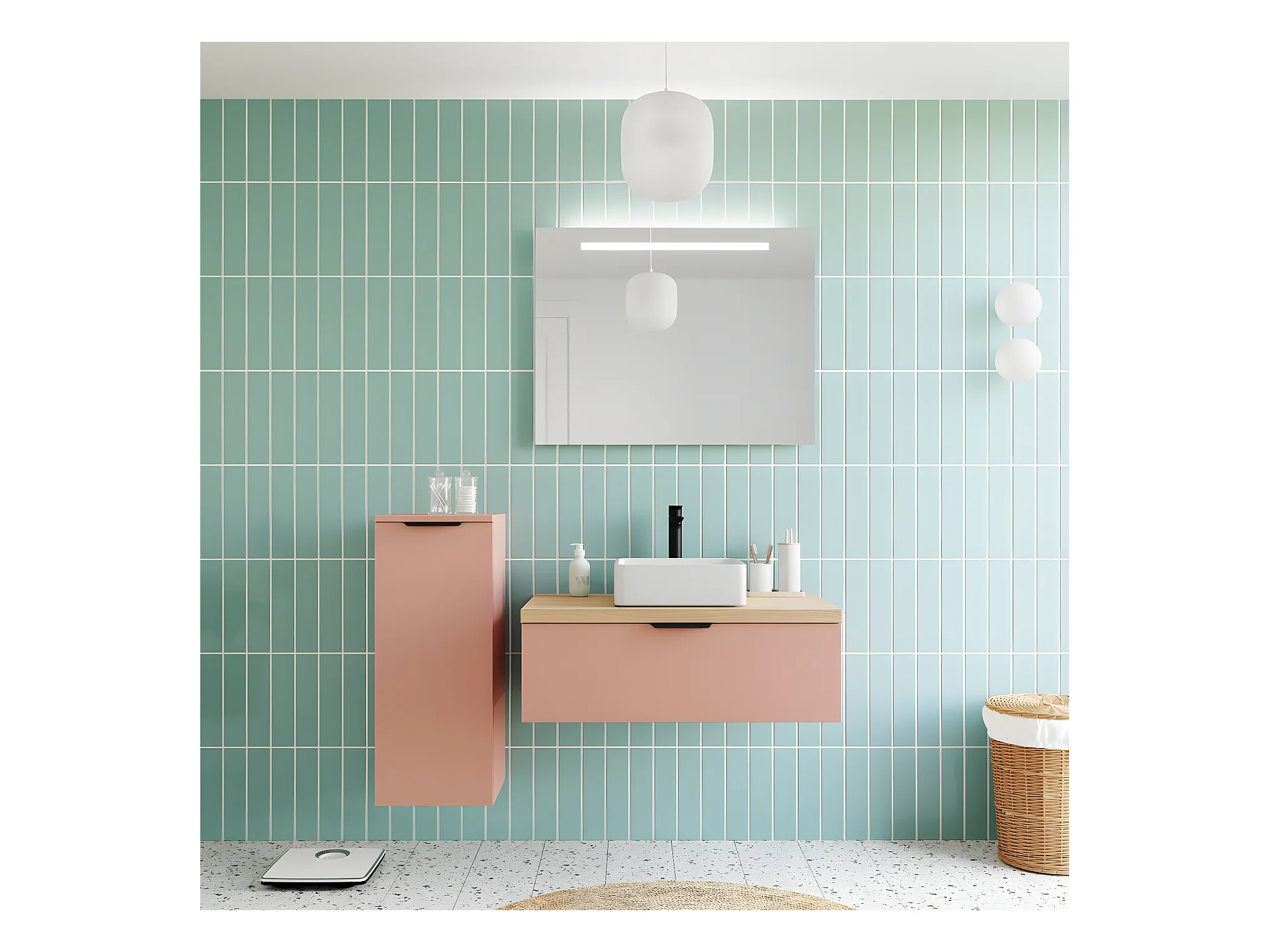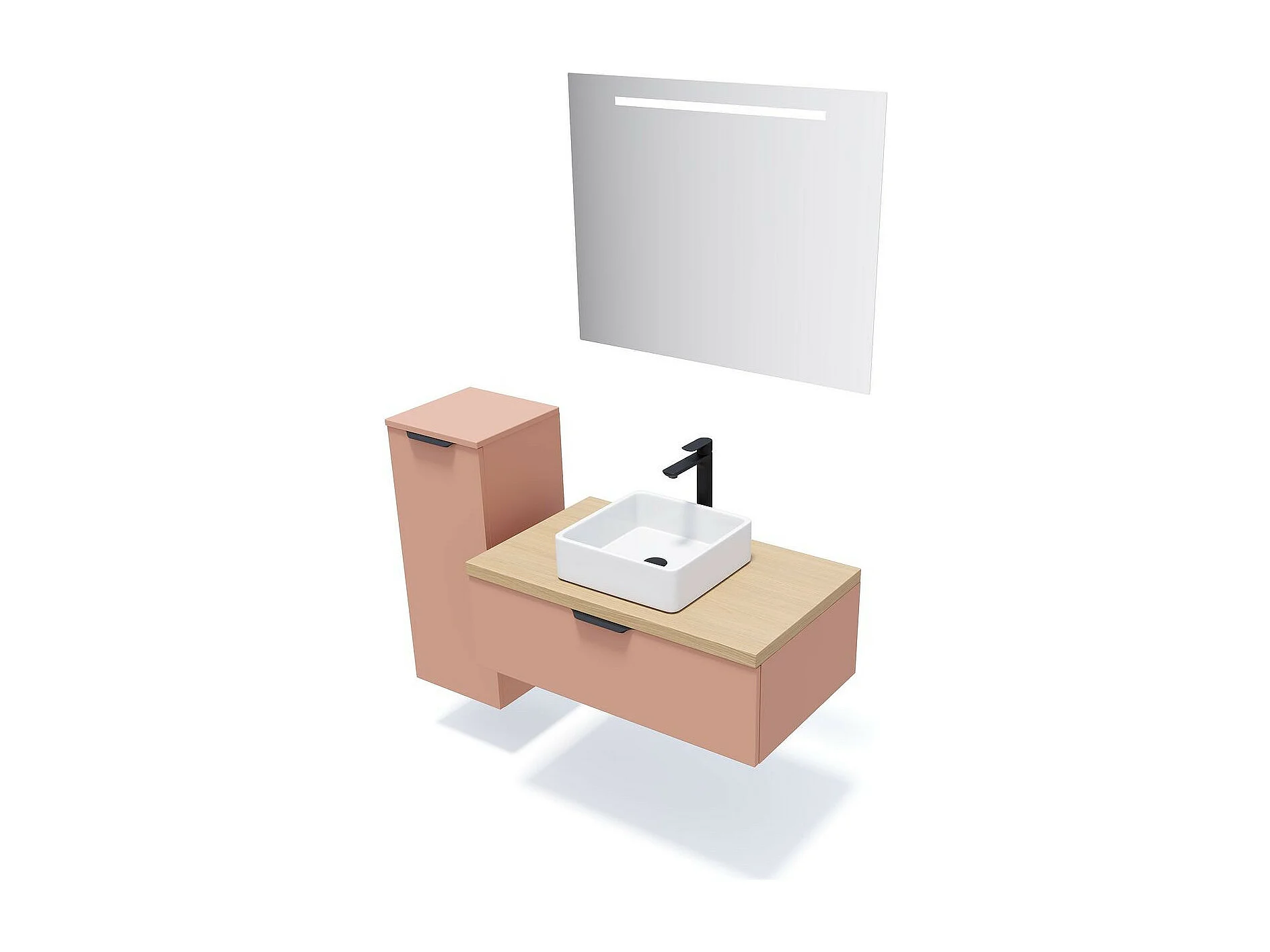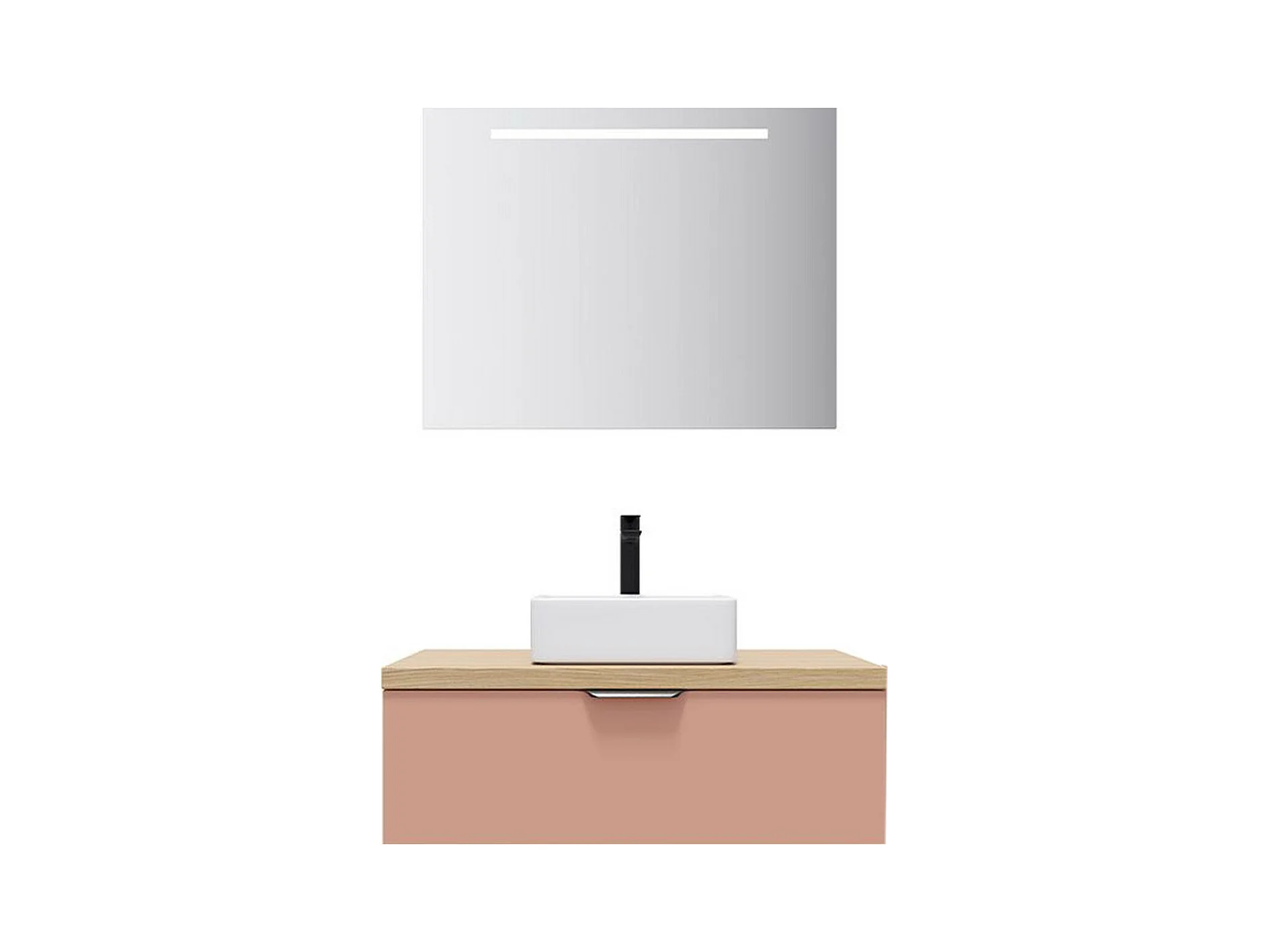Meuble de salle de bain suspendu vasque à poser 90cm 1 tiroir Abricot + miroir - Soho