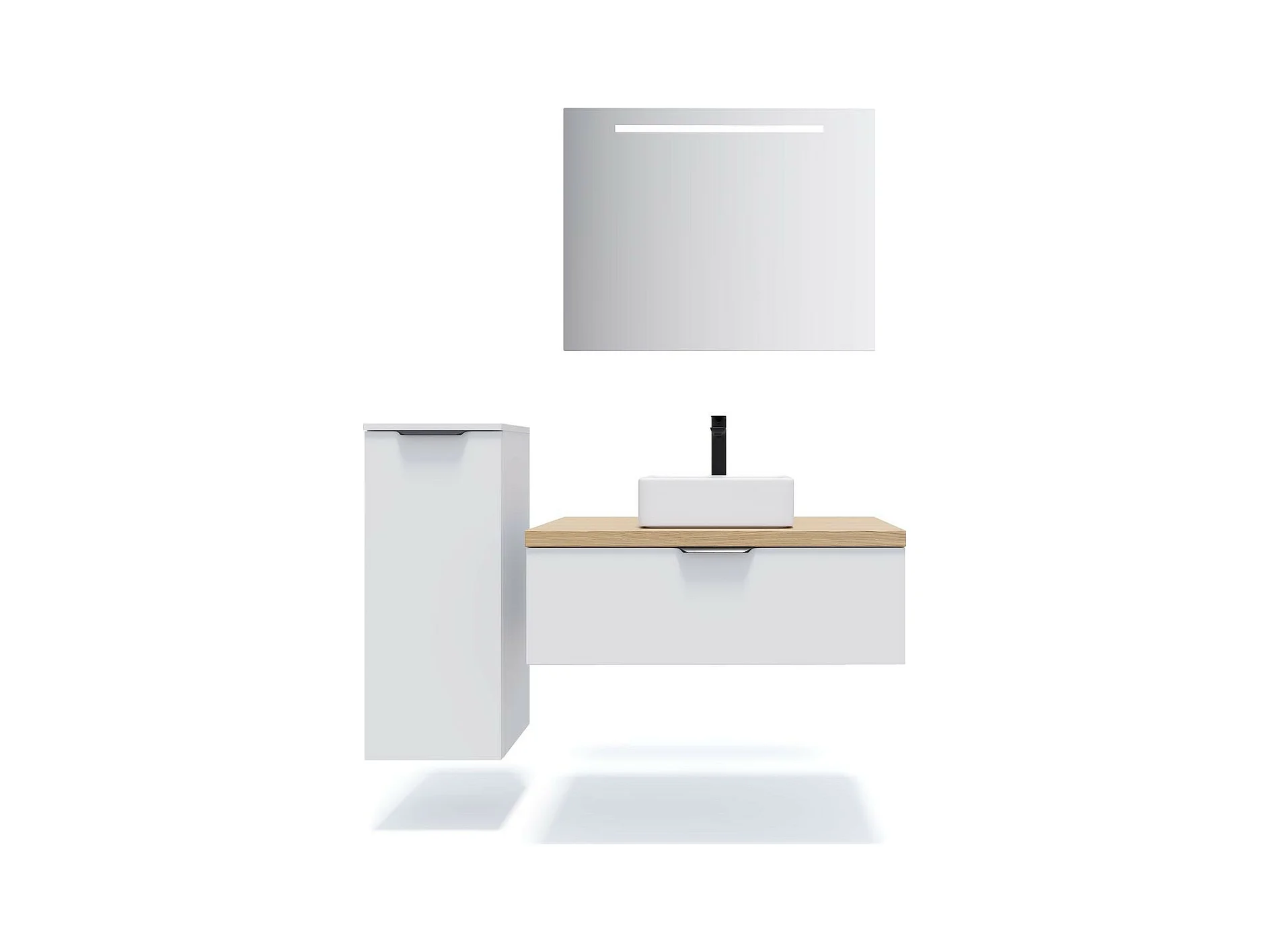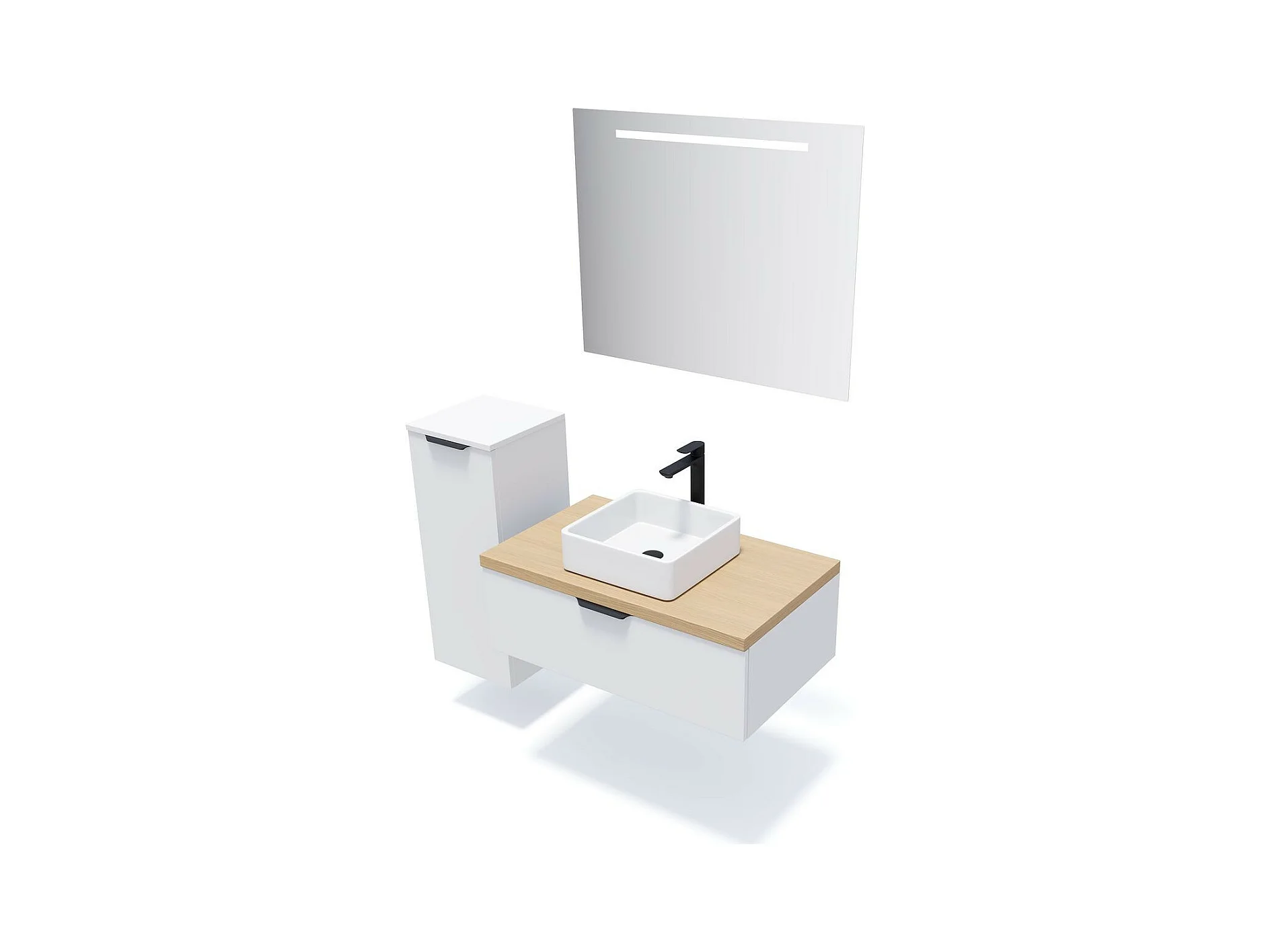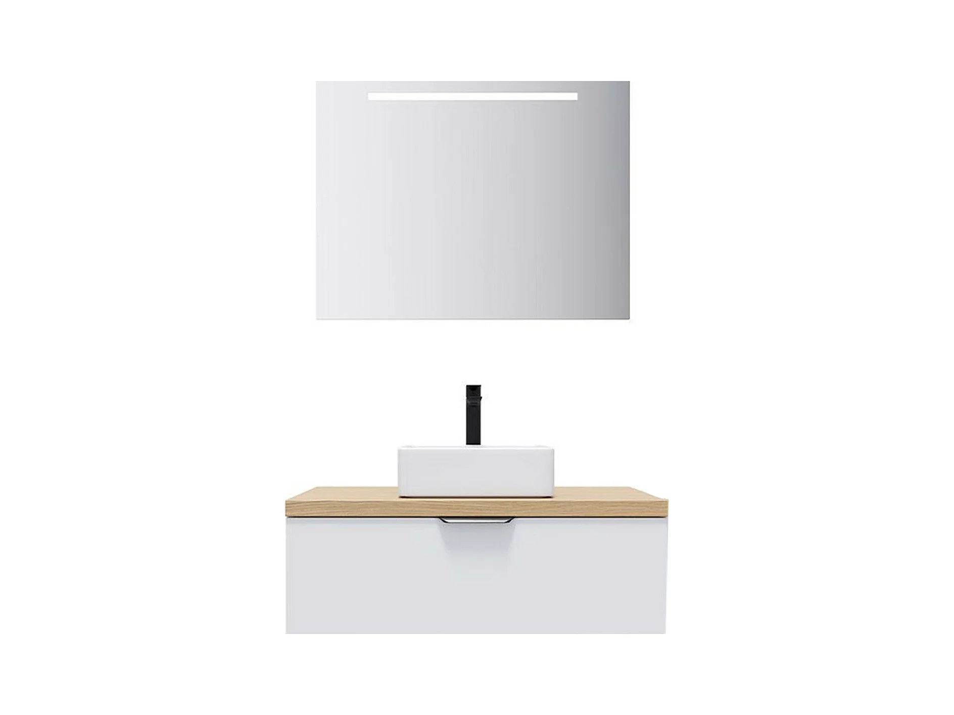 Meuble de salle de bain suspendu vasque à poser 90cm 1 tiroir Blanc + miroir - Soho