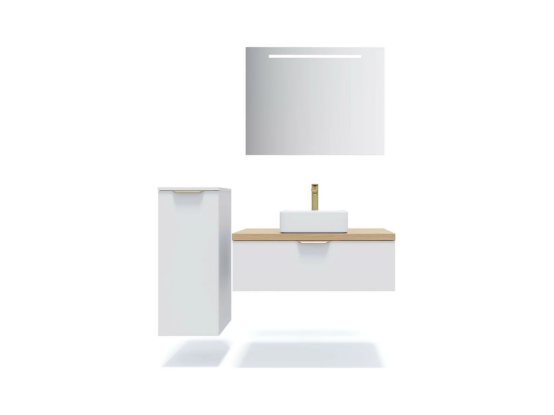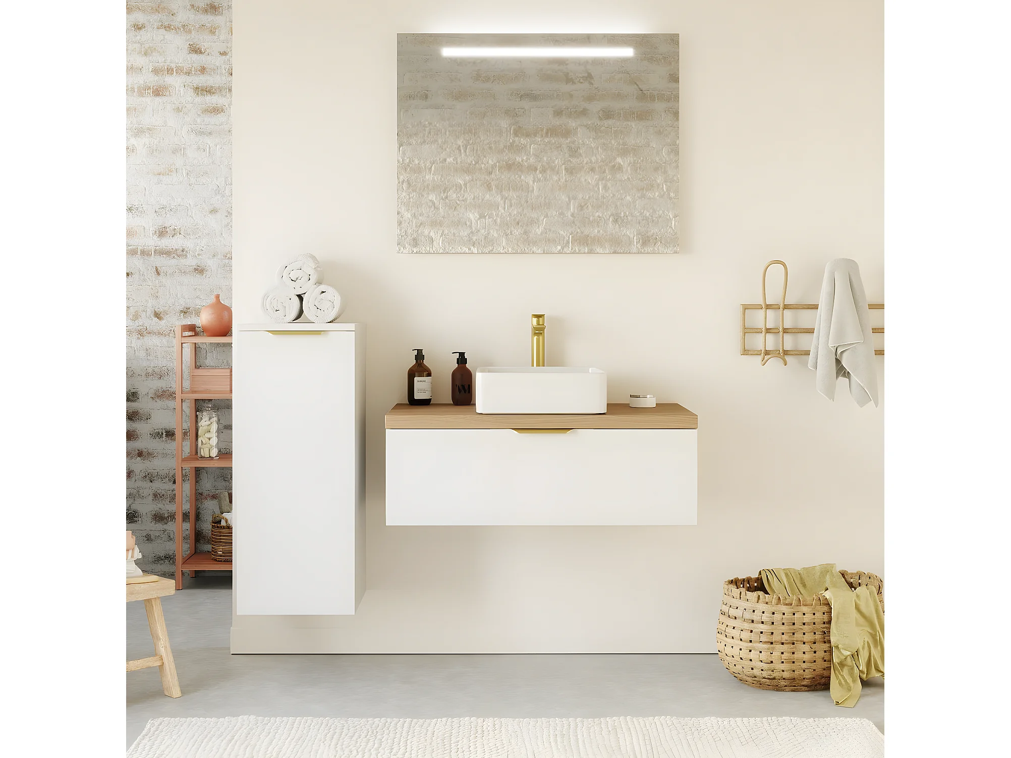 Meuble de salle de bain suspendu vasque à poser 90cm 1 tiroir Blanc + miroir - Venice