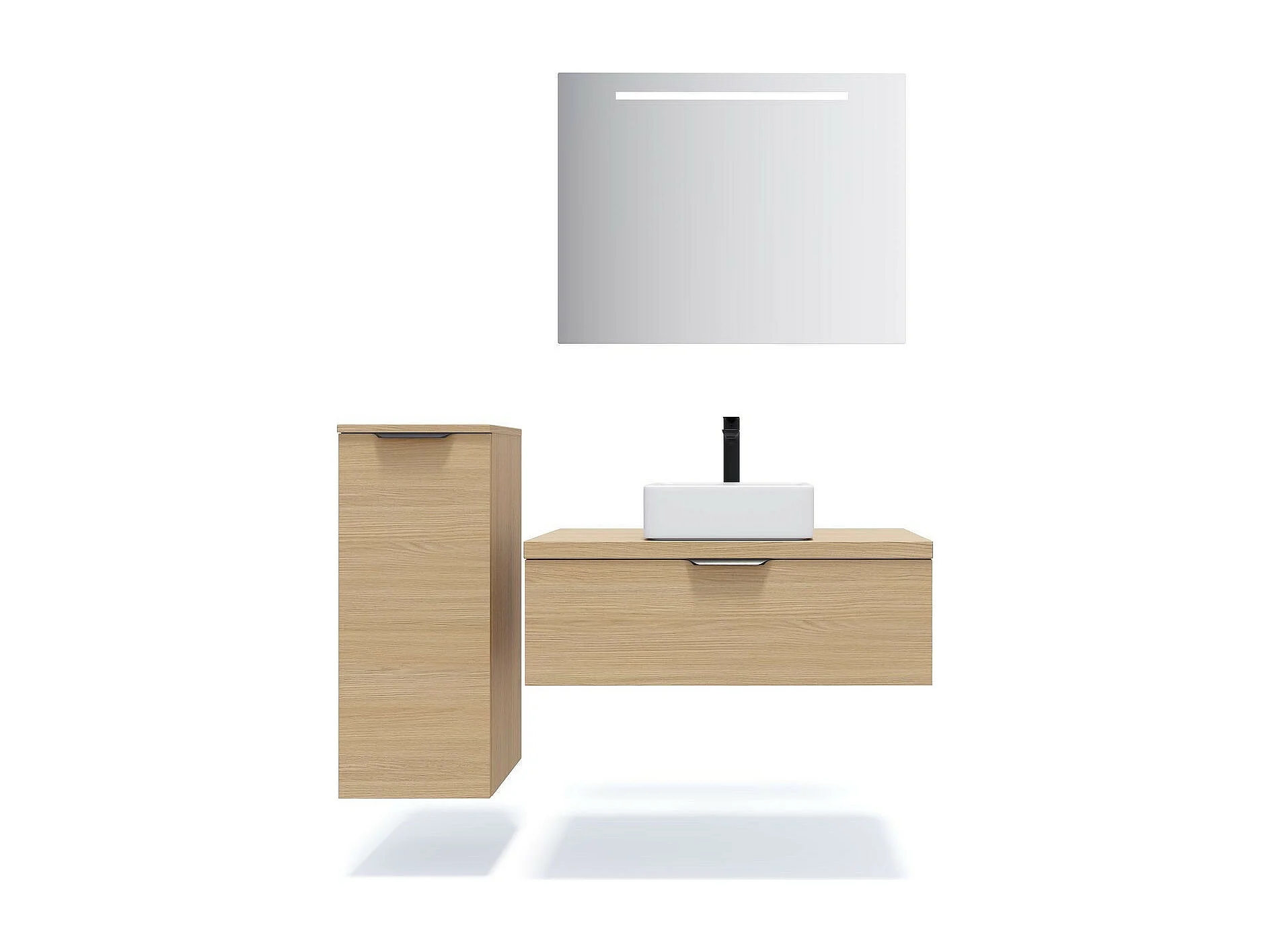 Meuble de salle de bain suspendu vasque à poser 90cm 1 tiroir Chêne clair + miroir - Venice