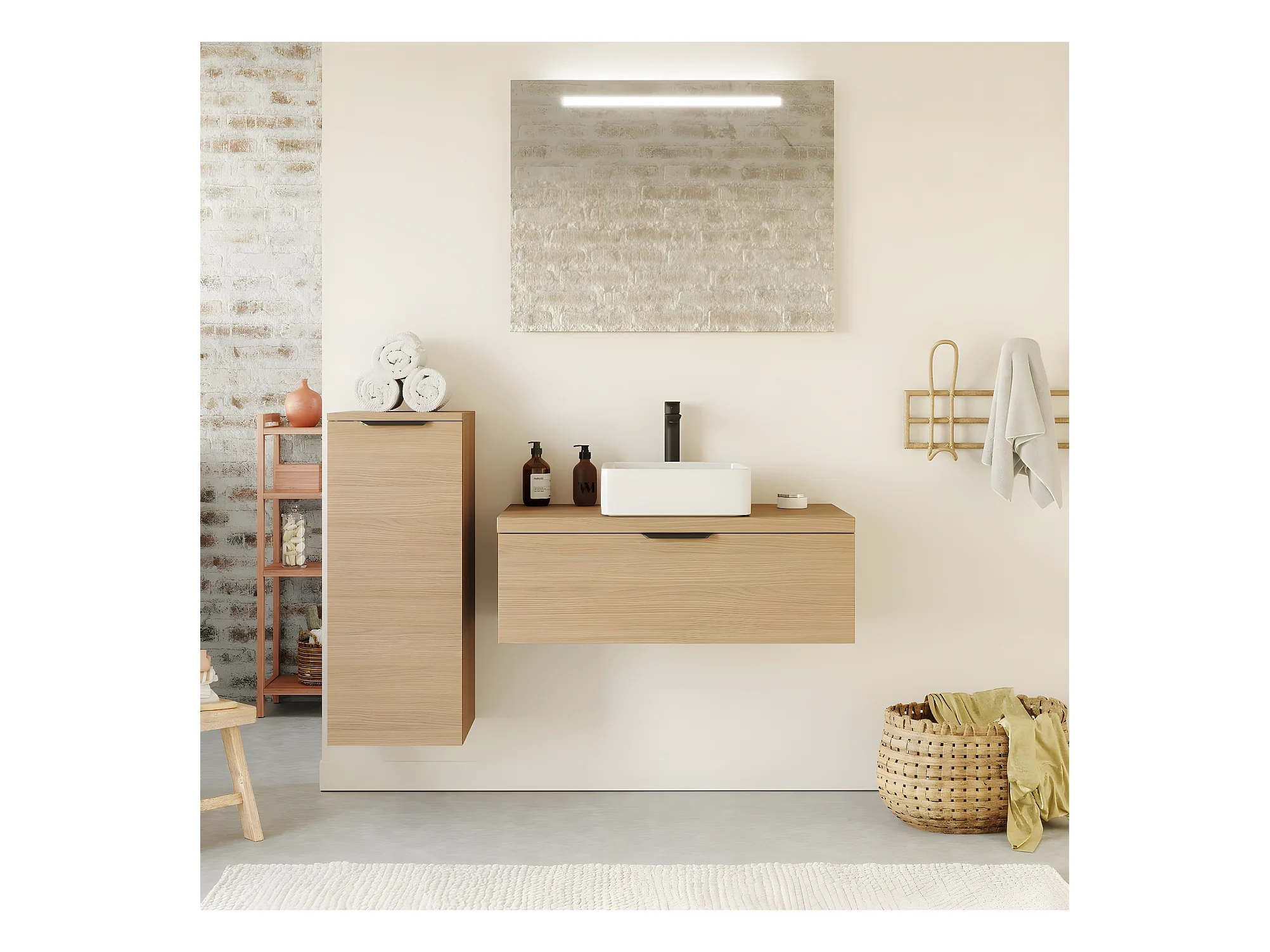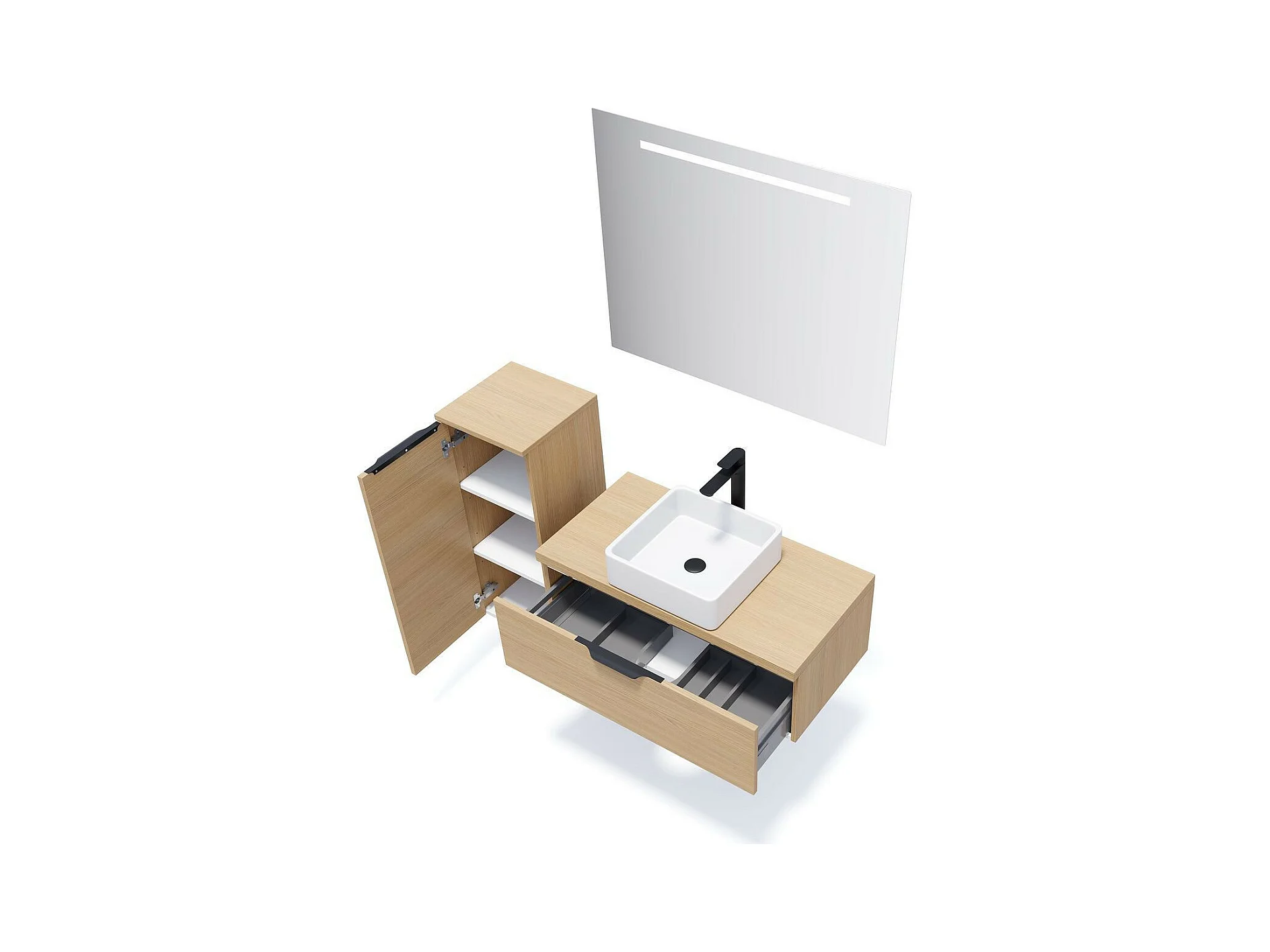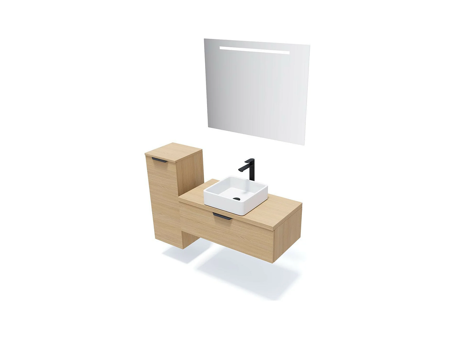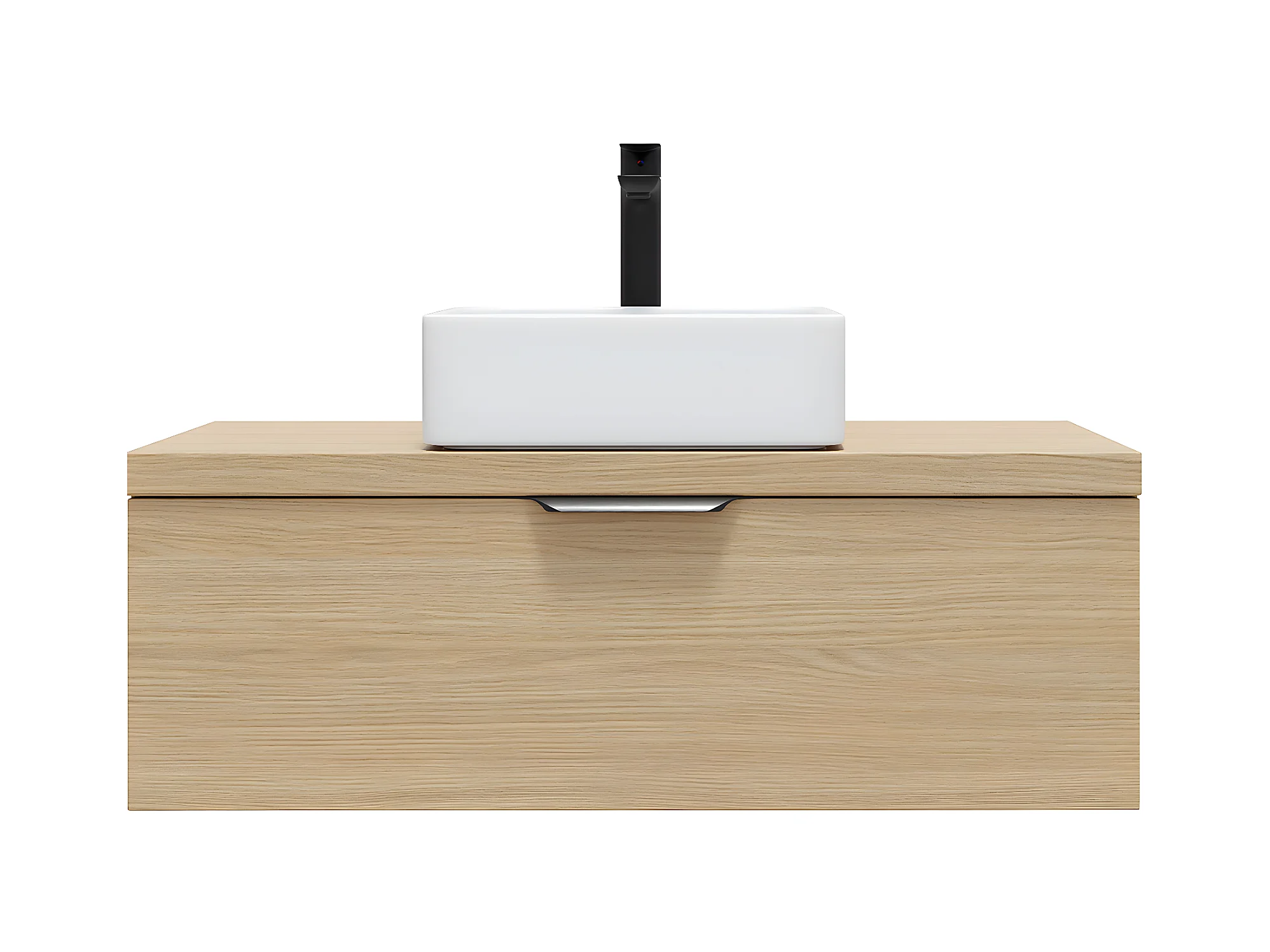 Meuble de salle de bain suspendu vasque à poser 90cm 1 tiroir Chêne clair - Venice