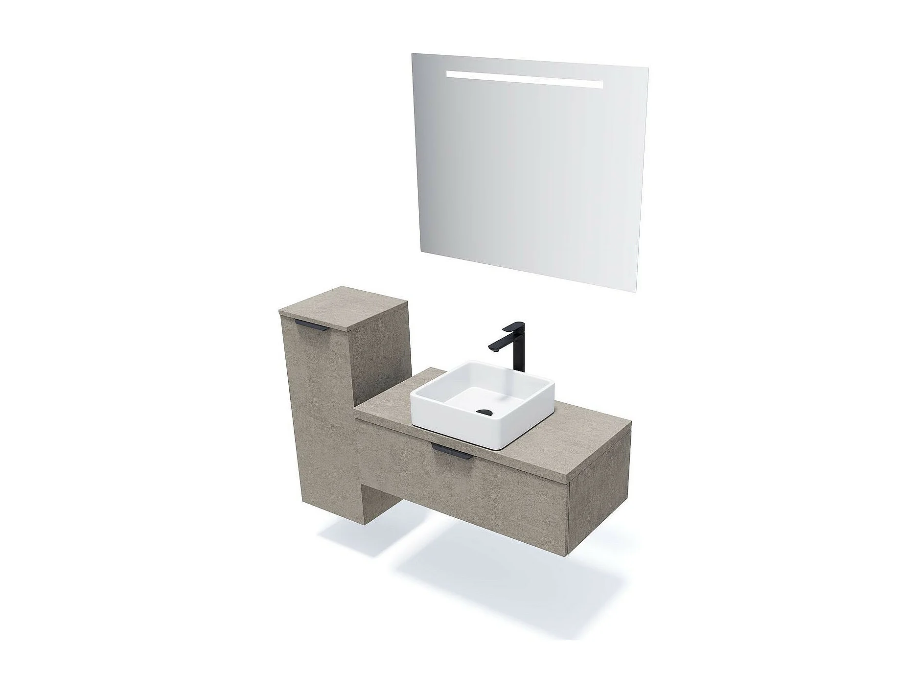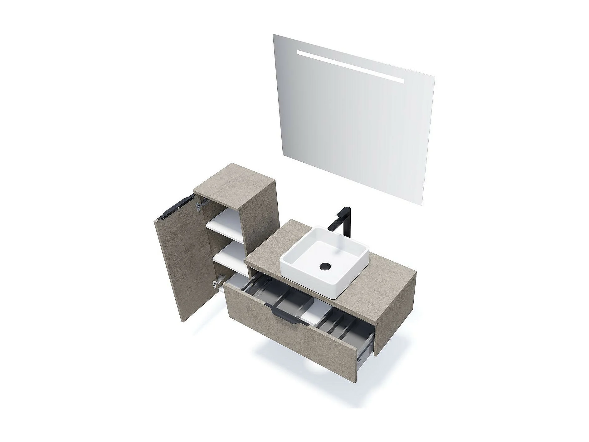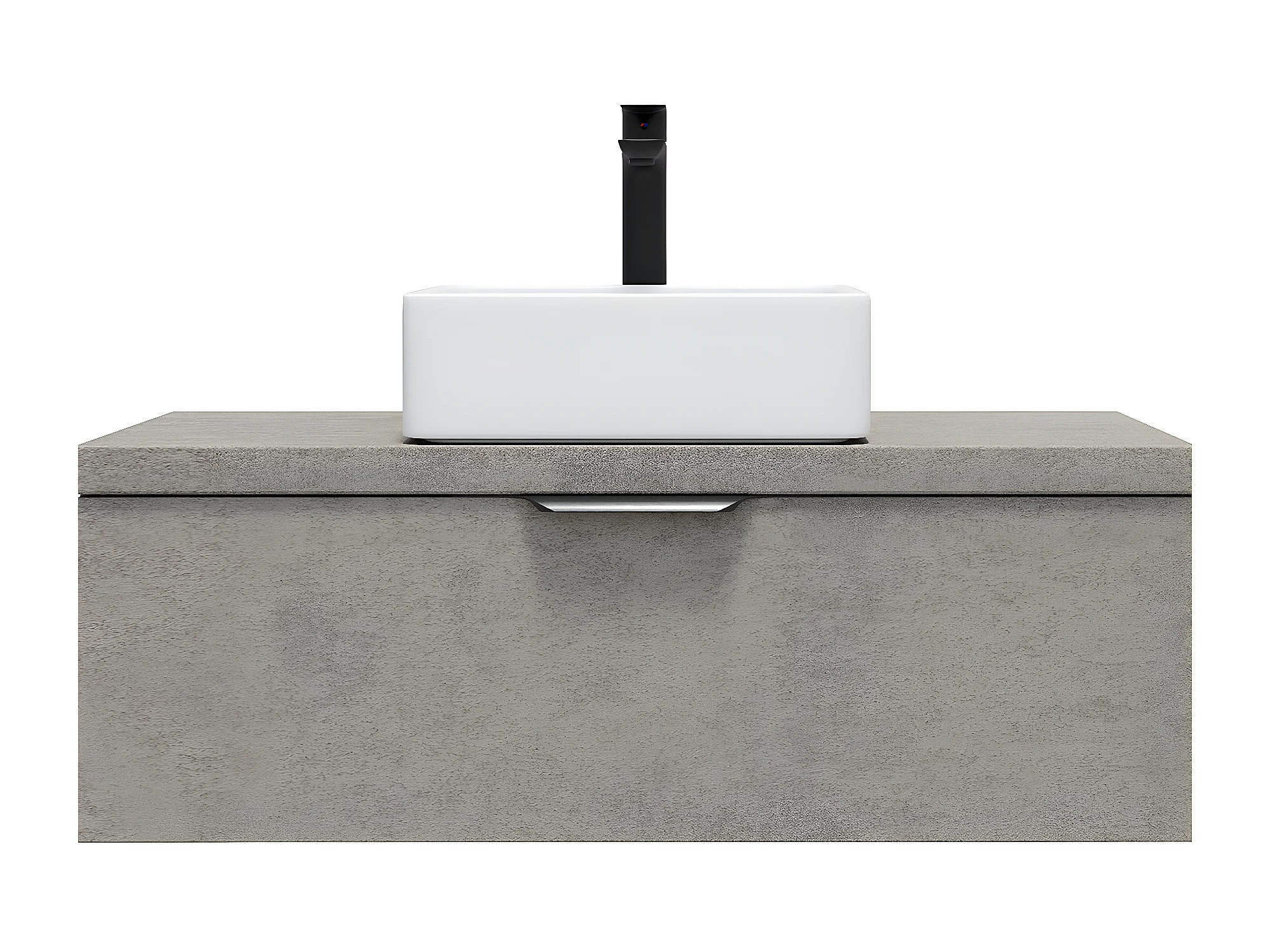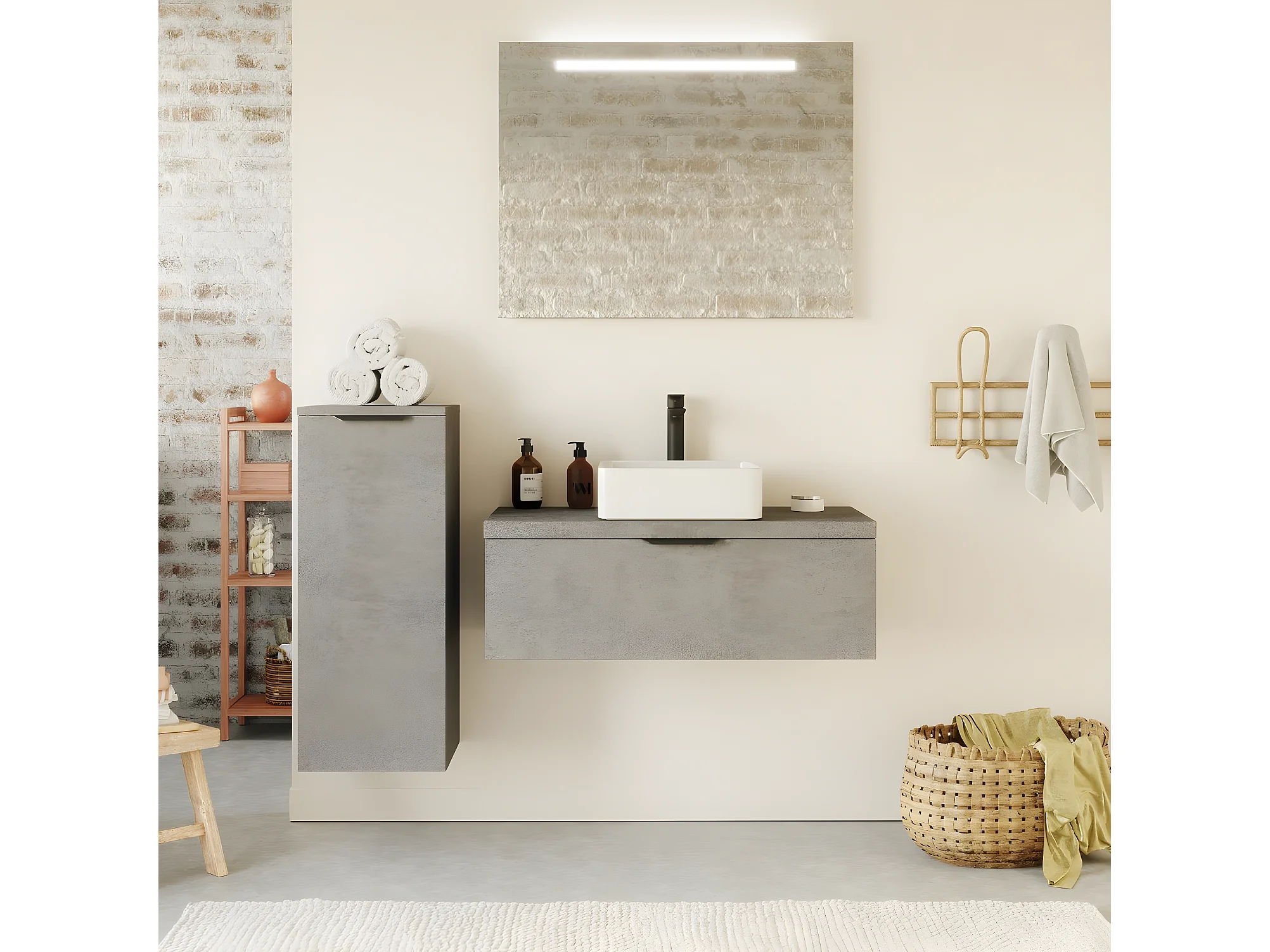 Meuble de salle de bain suspendu vasque à poser 90cm 1 tiroir façon Béton - Venice