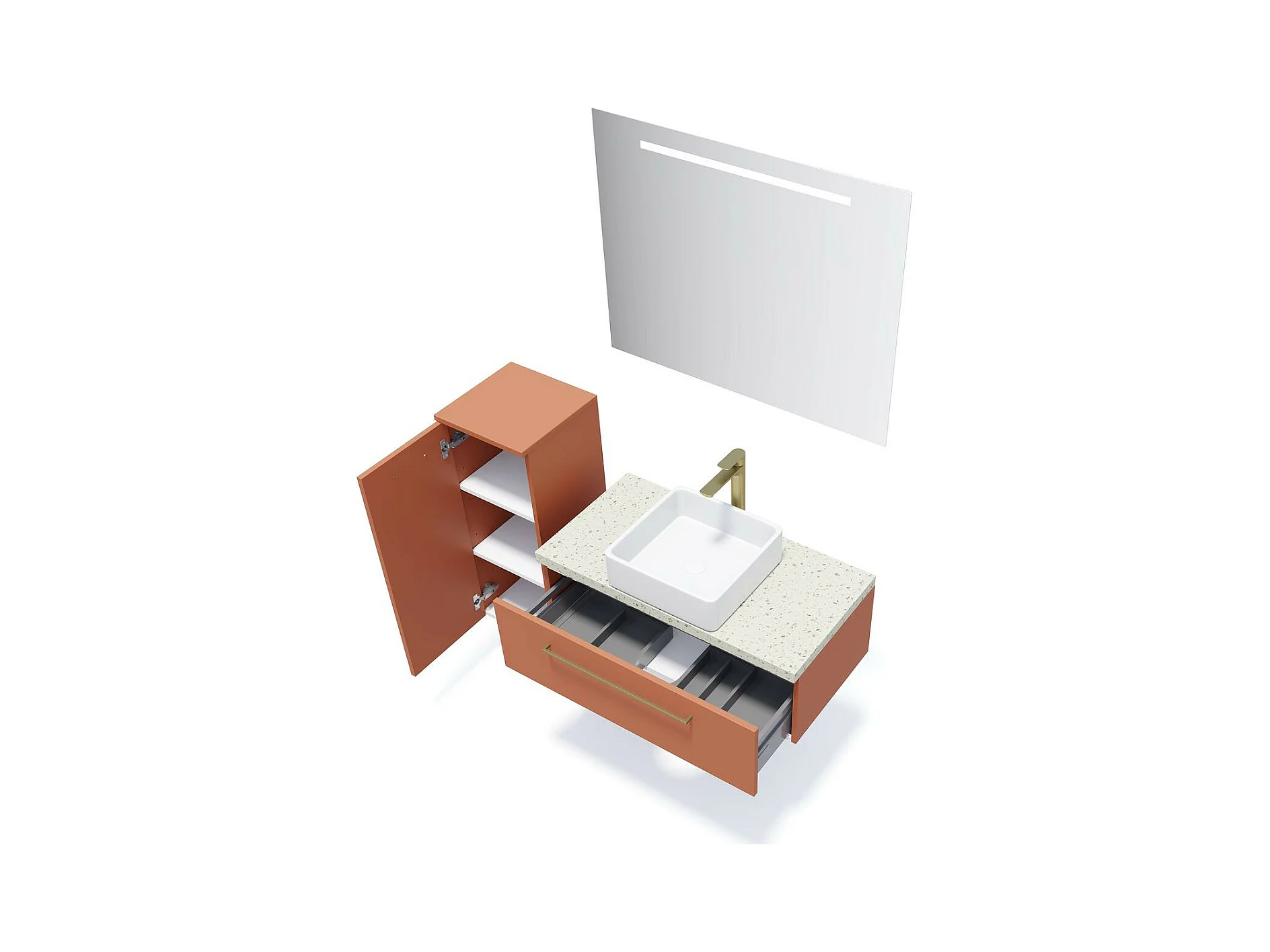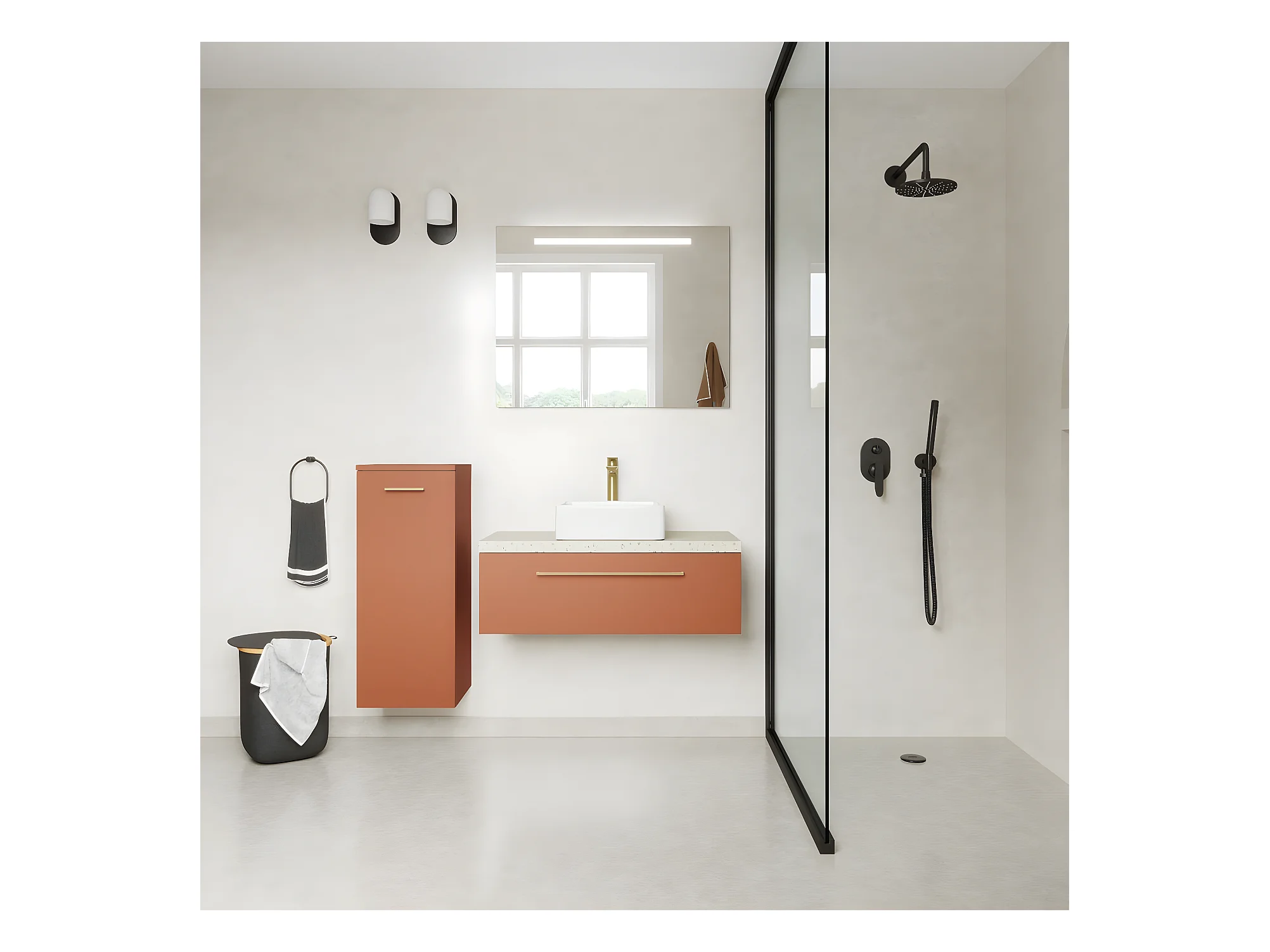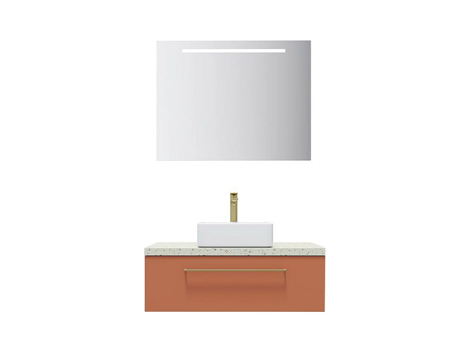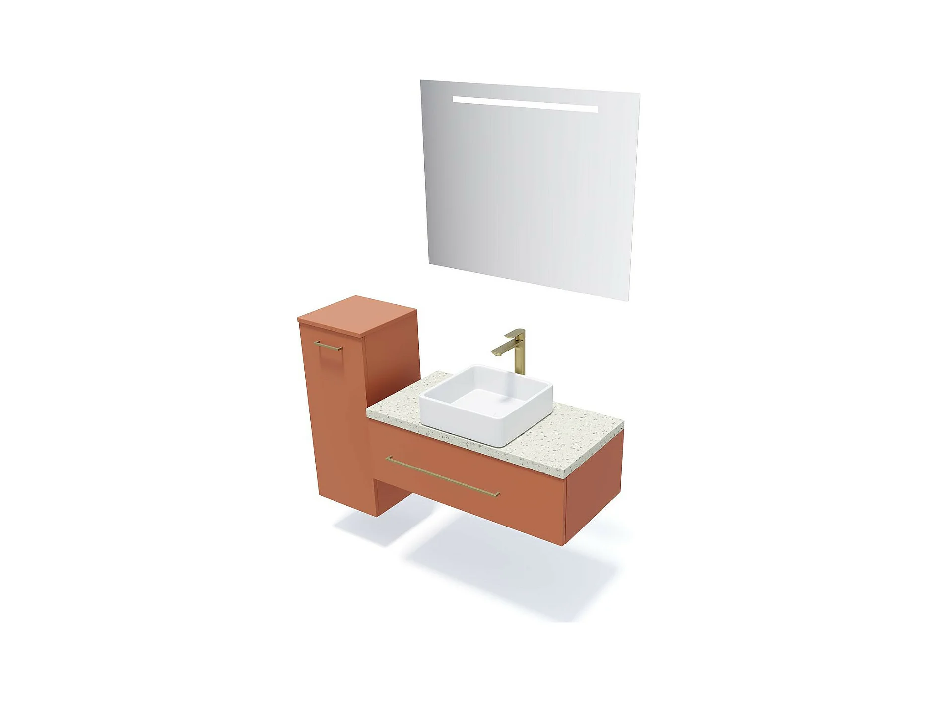 Meuble de salle de bain suspendu vasque à poser 90cm 1 tiroir Terracotta + miroir - Glasgow