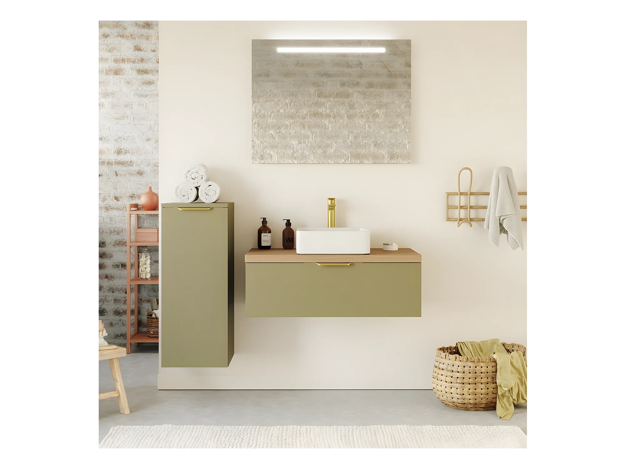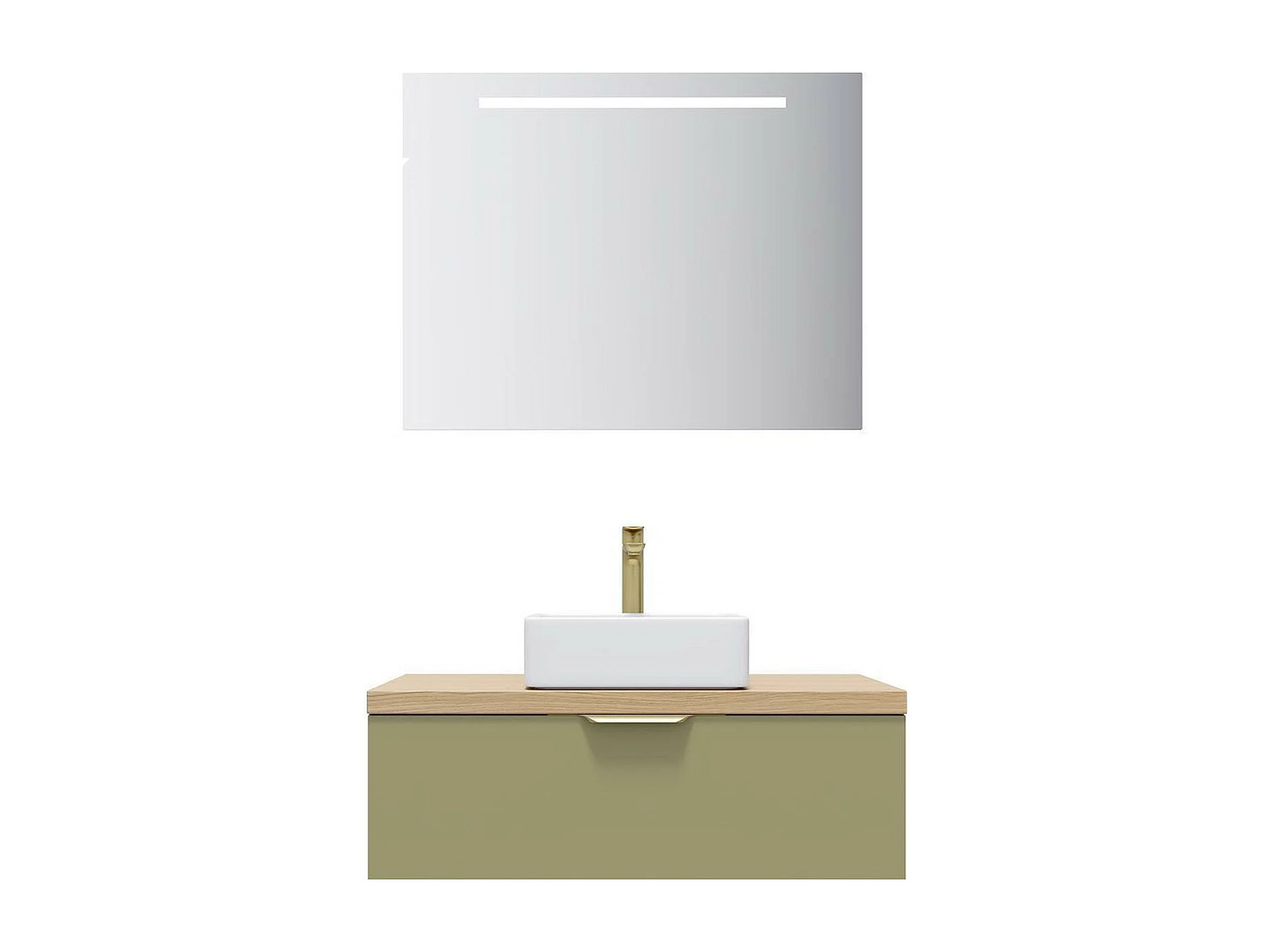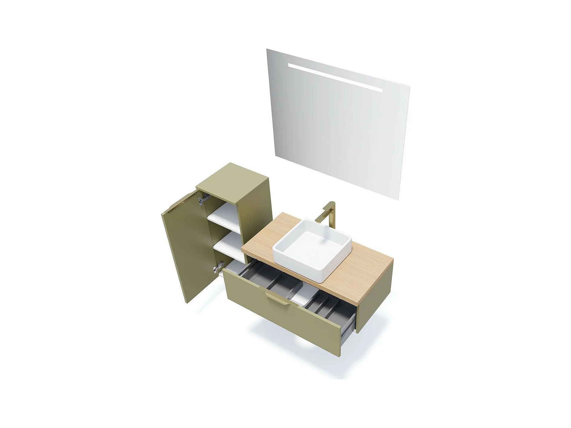 Meuble de salle de bain suspendu vasque à poser 90cm 1 tiroir Vert olive + miroir - Venice
