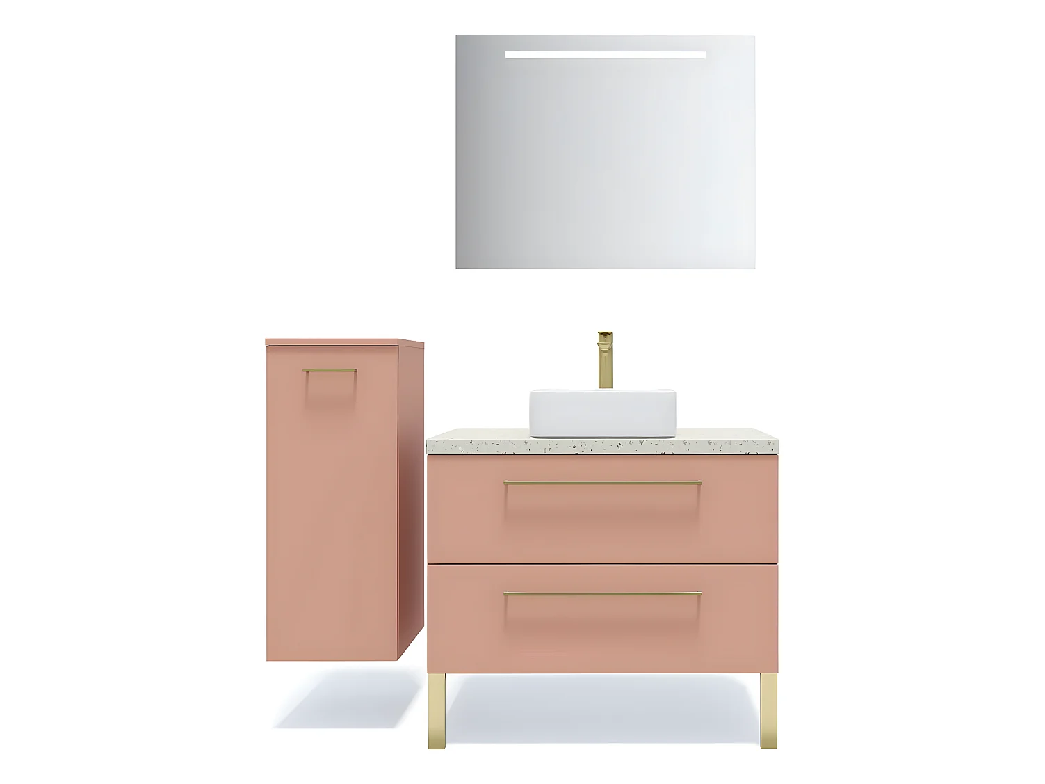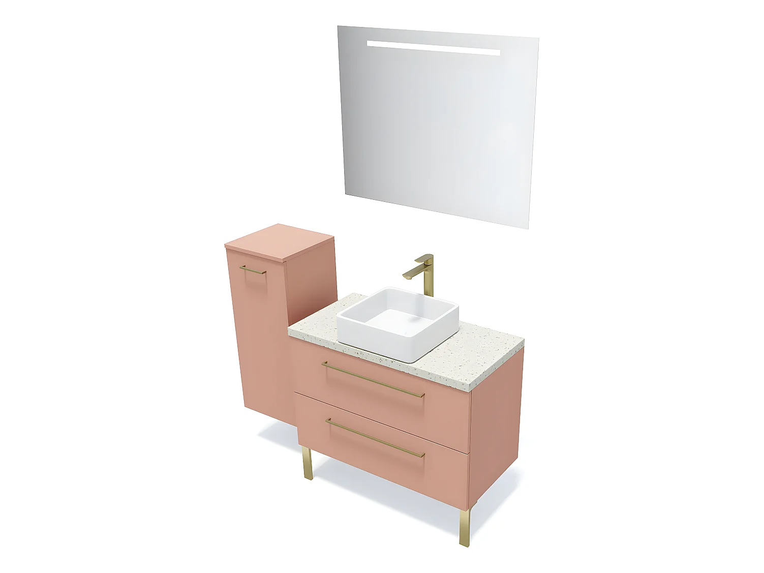 Meuble de salle de bain suspendu vasque à poser 90cm 2 tiroirs Abricot + miroir + colonne ouverture gauche - Glasgow