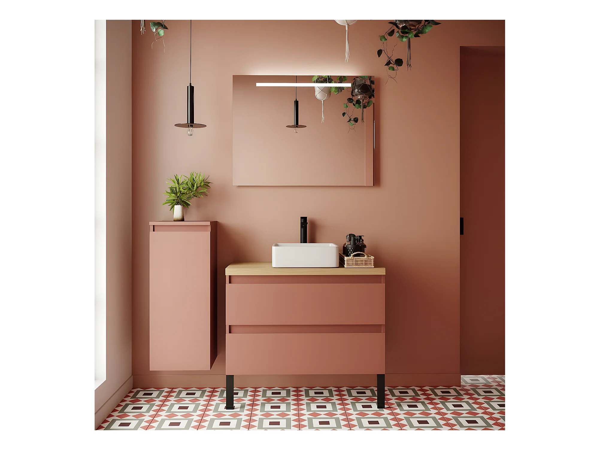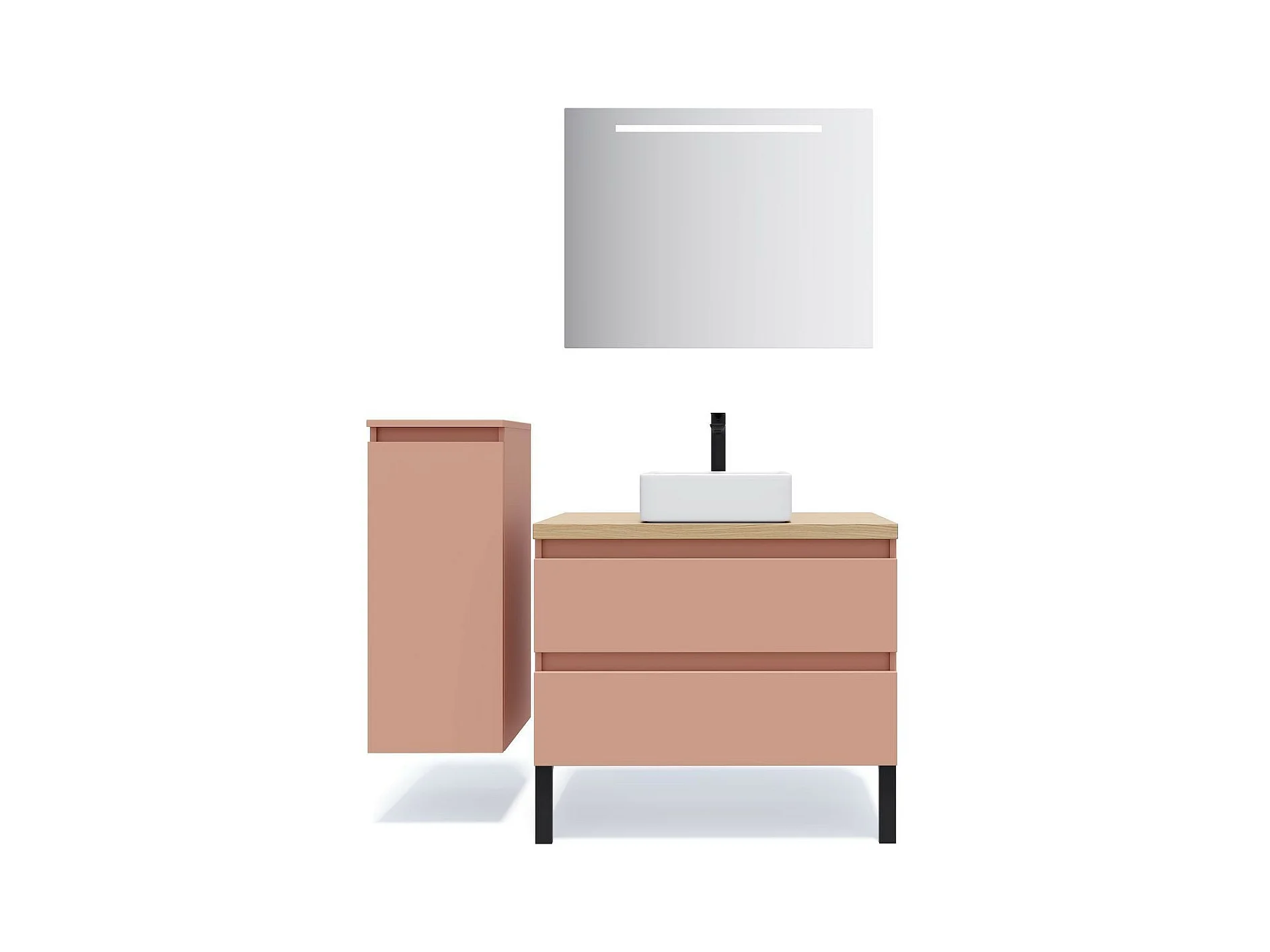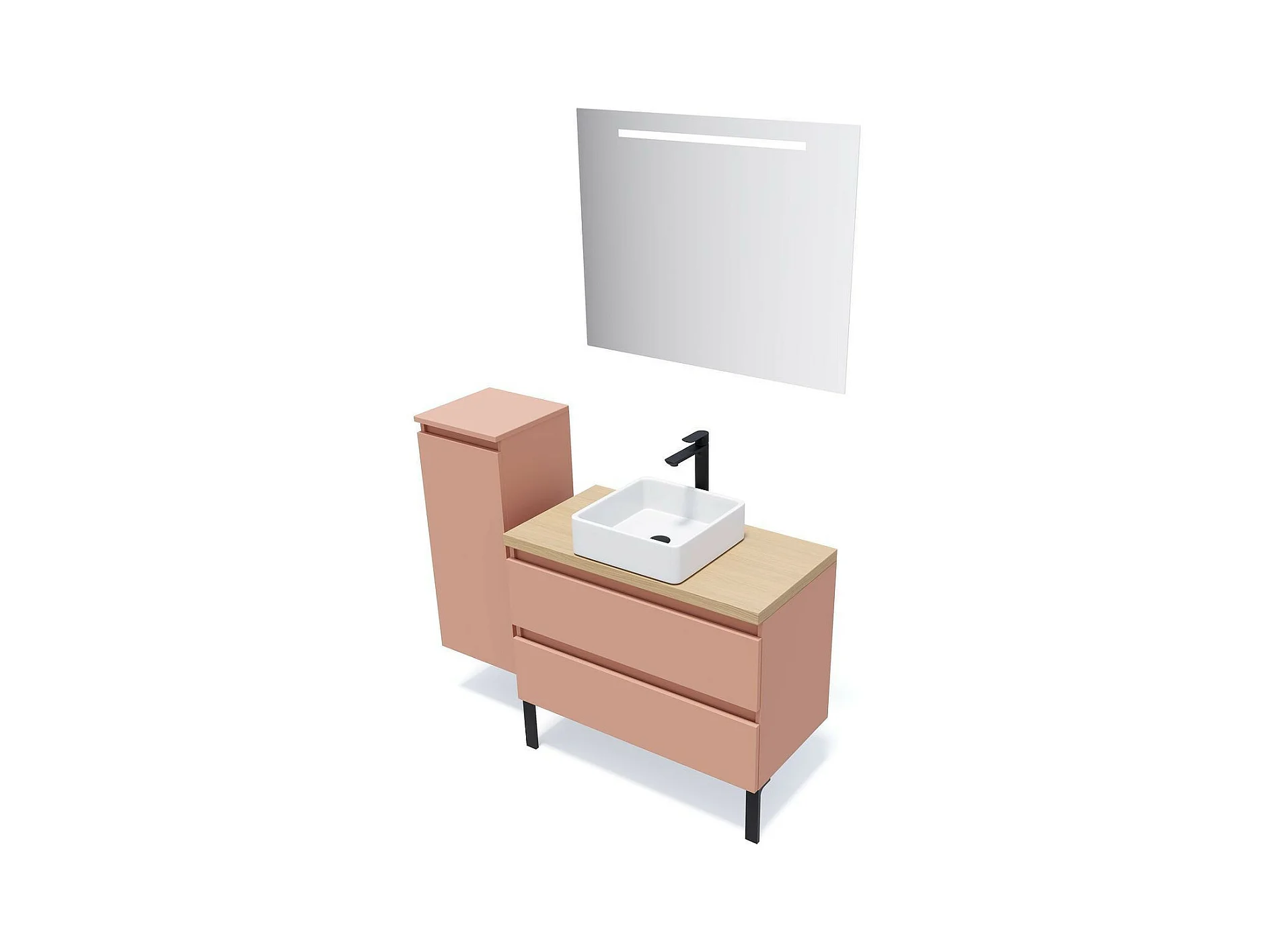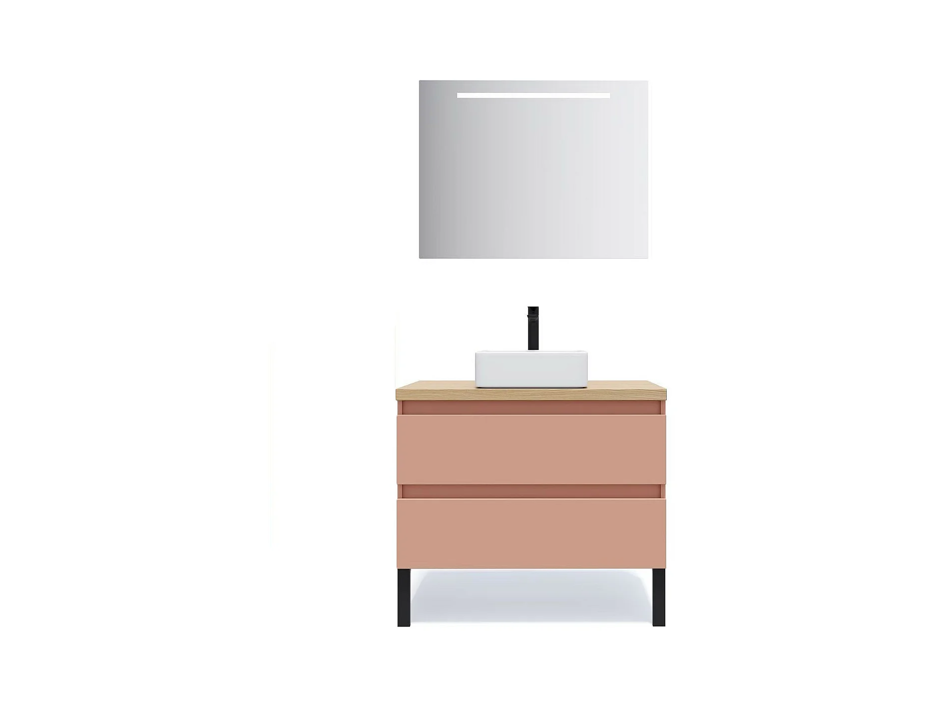Meuble de salle de bain suspendu vasque à poser 90cm 2 tiroirs Abricot + miroir - Hudson