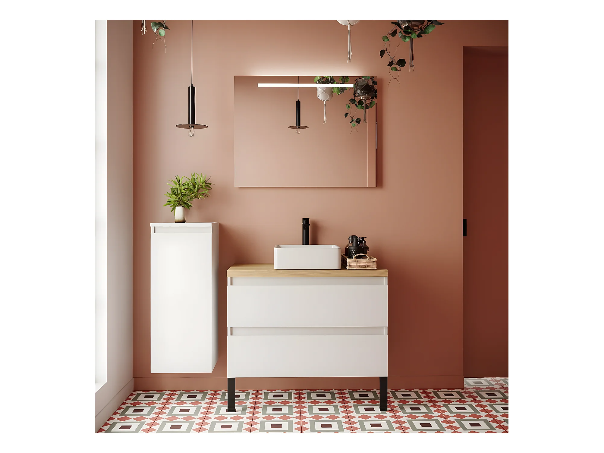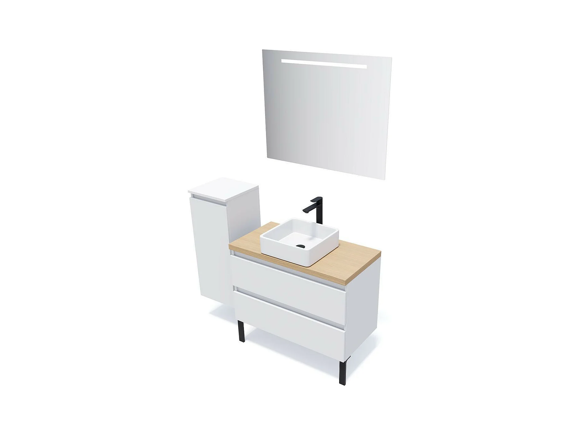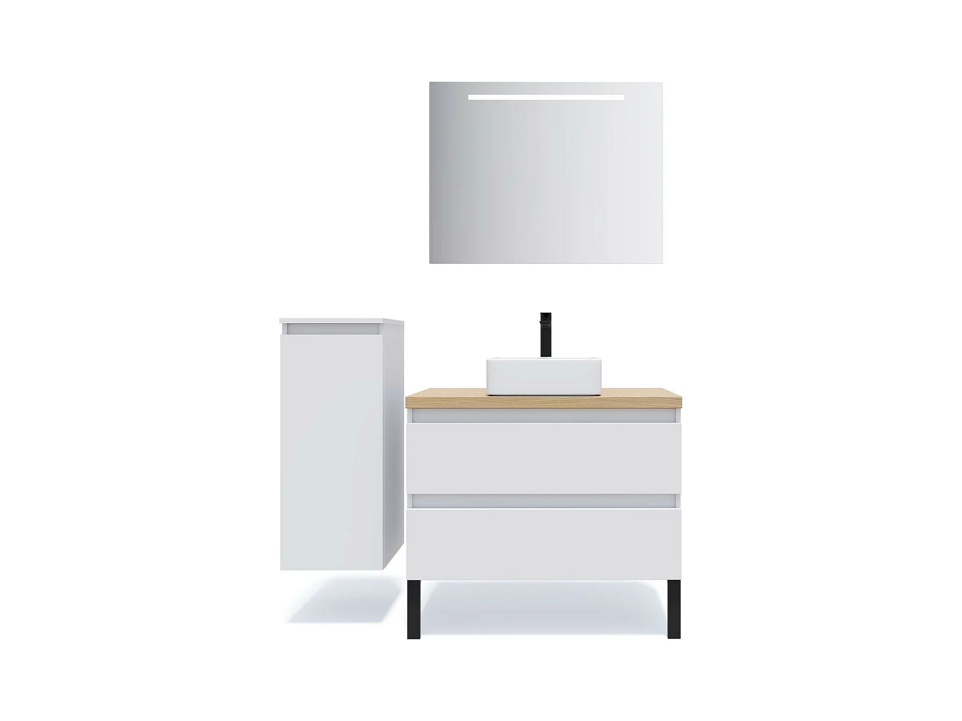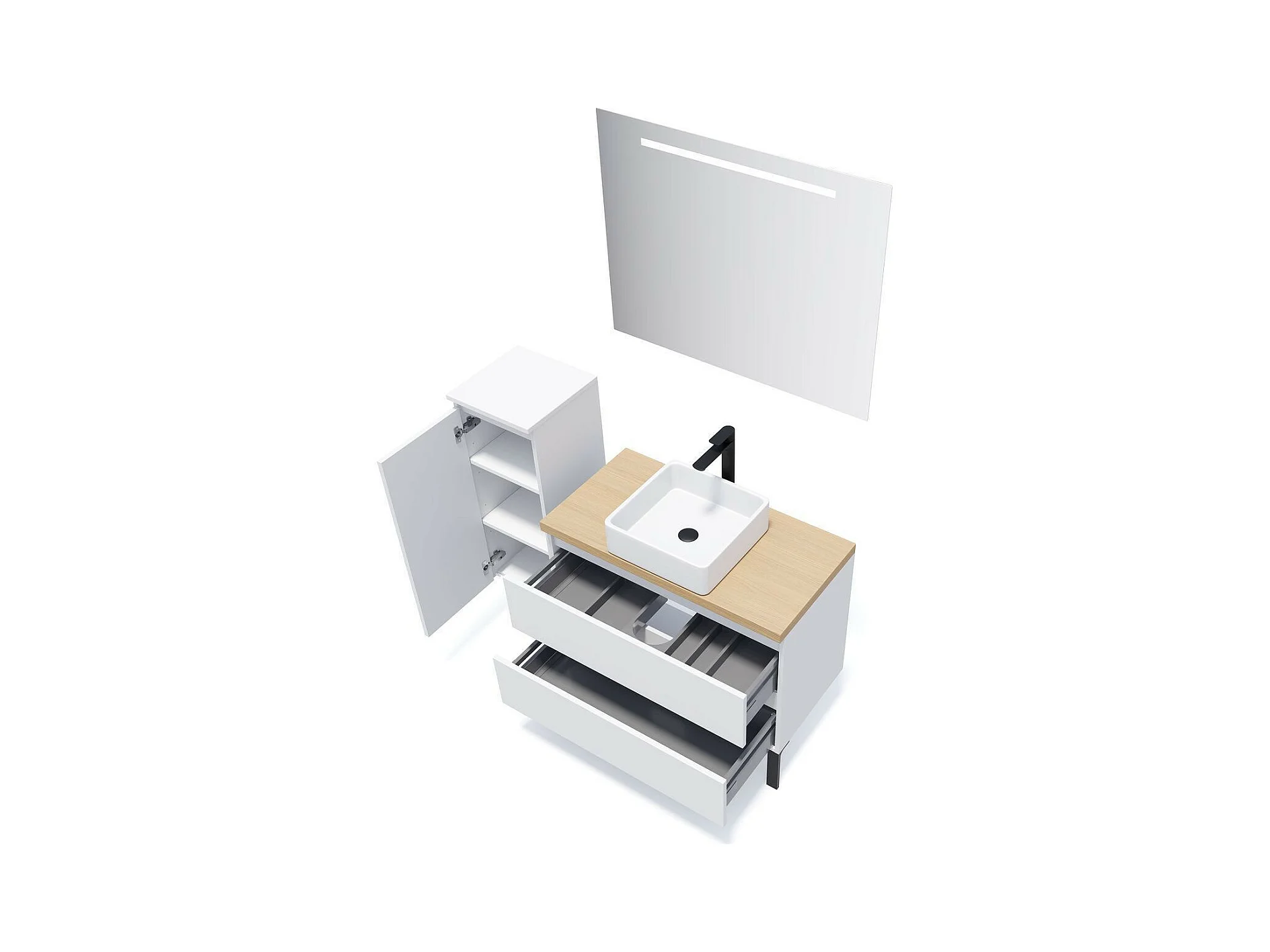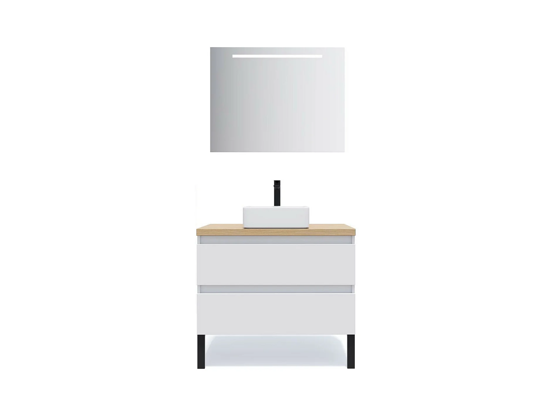 Meuble de salle de bain suspendu vasque à poser 90cm 2 tiroirs Blanc + miroir - Hudson