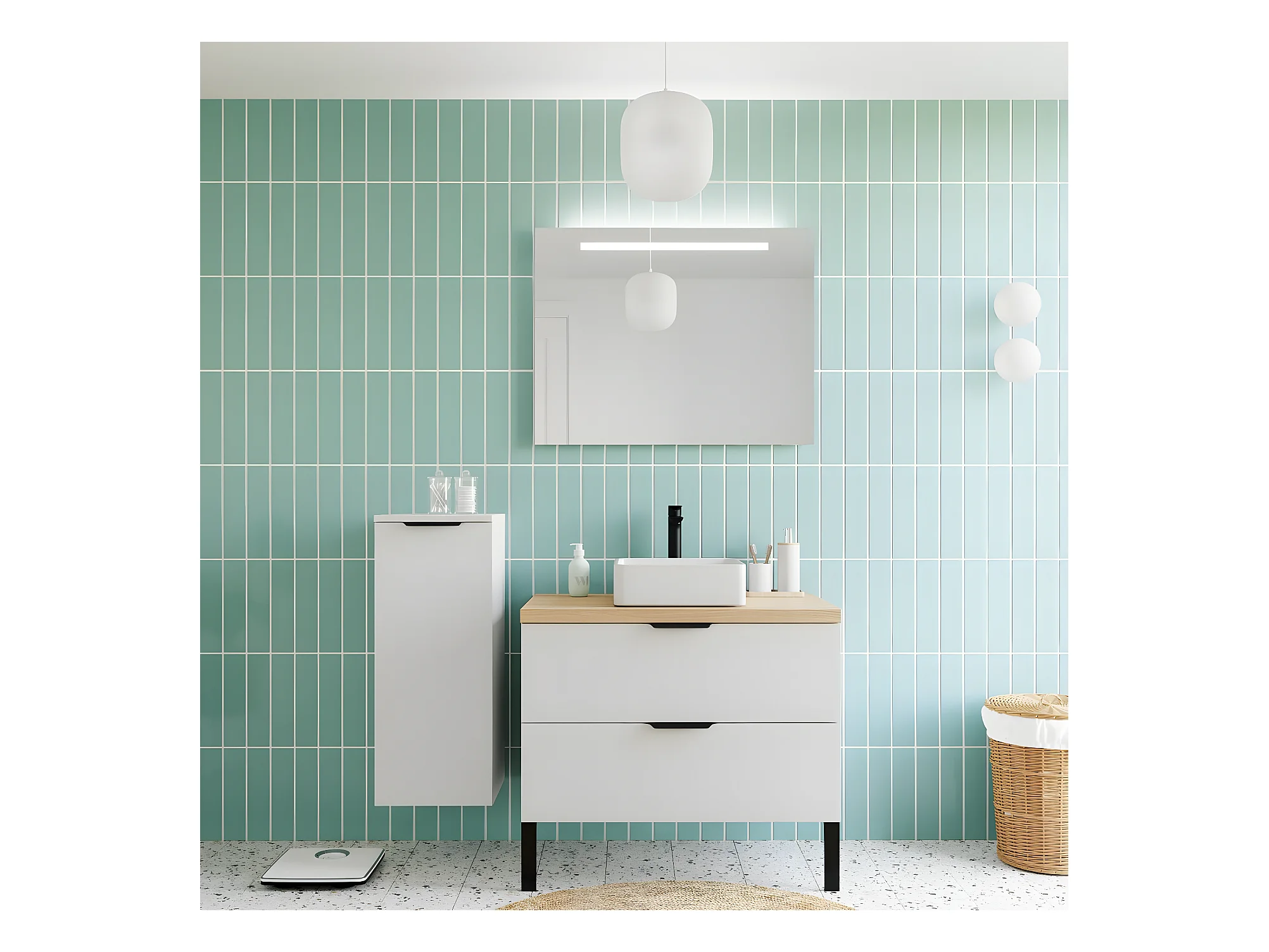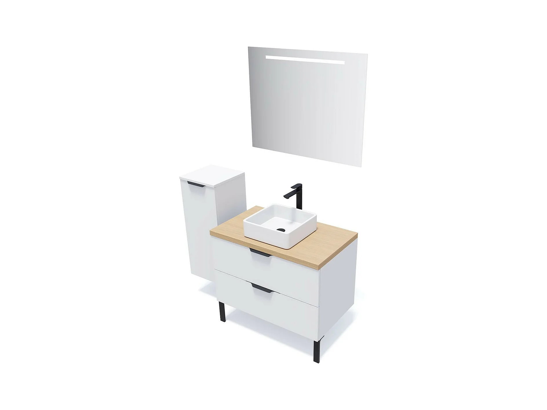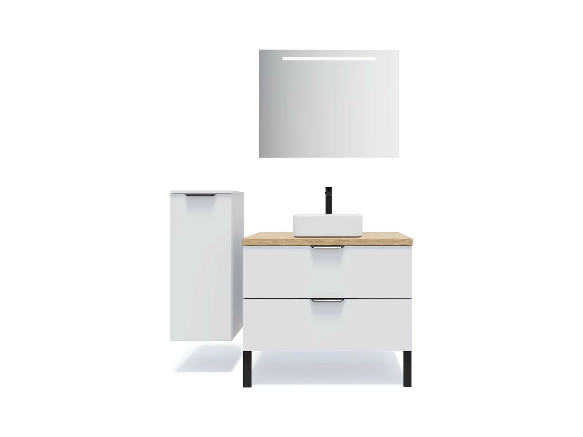Meuble de salle de bain suspendu vasque à poser 90cm 2 tiroirs Blanc + miroir - Soho