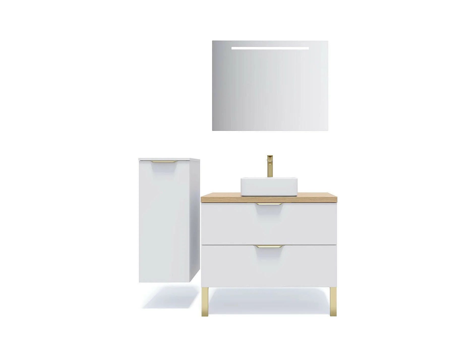 Meuble de salle de bain suspendu vasque à poser 90cm 2 tiroirs Blanc + miroir - Venice
