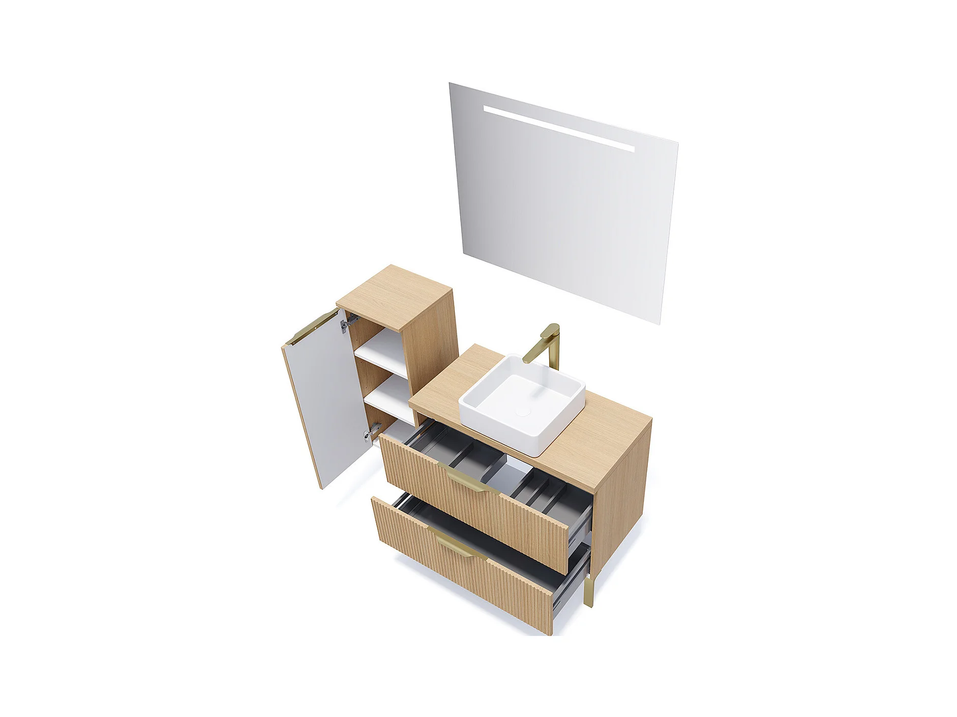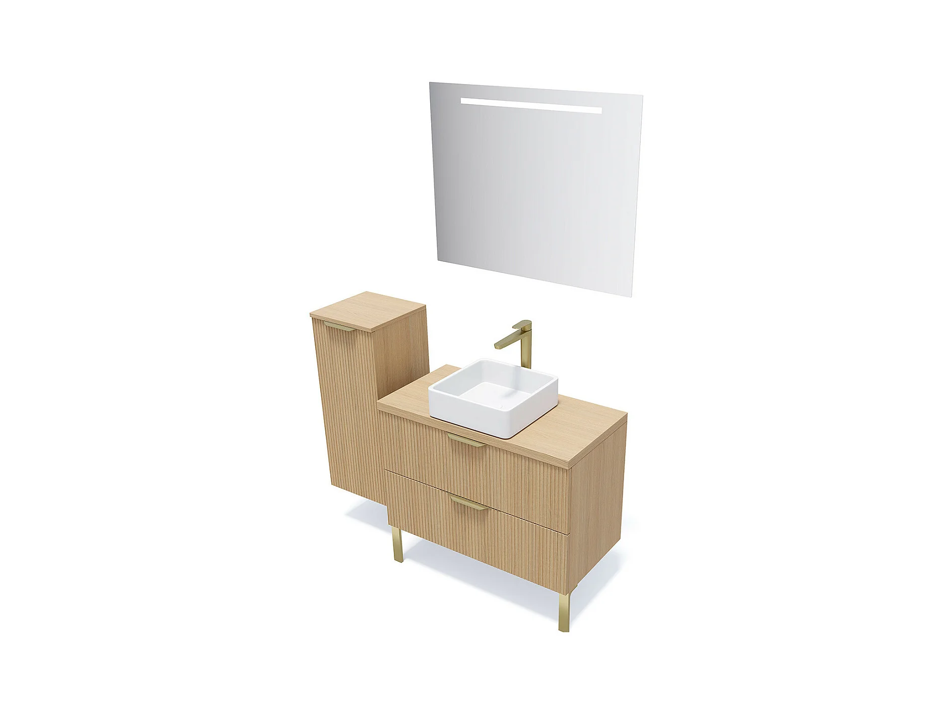 Meuble de salle de bain suspendu vasque à poser 90cm 2 tiroirs Chêne cannelé + miroir - Venice