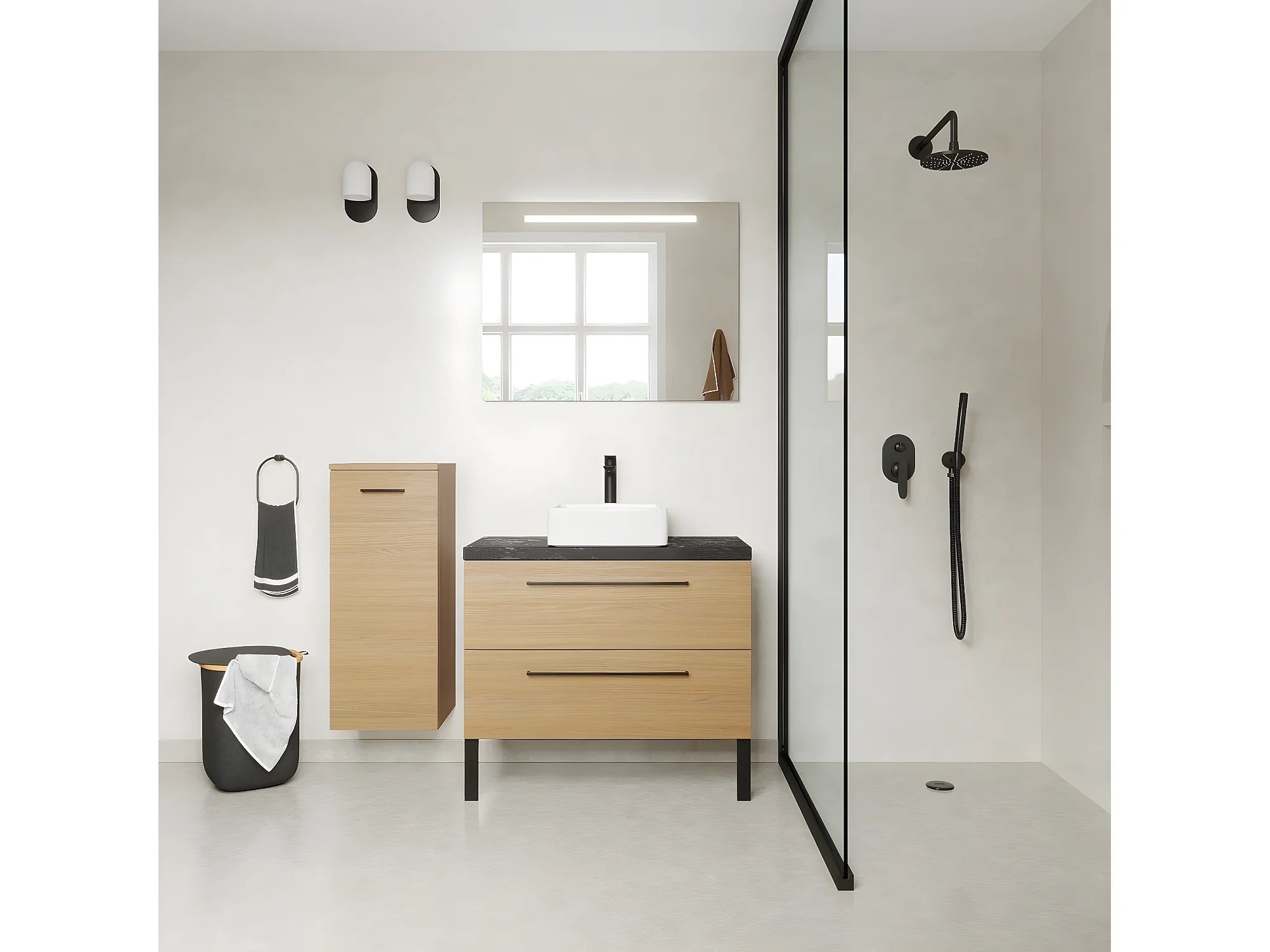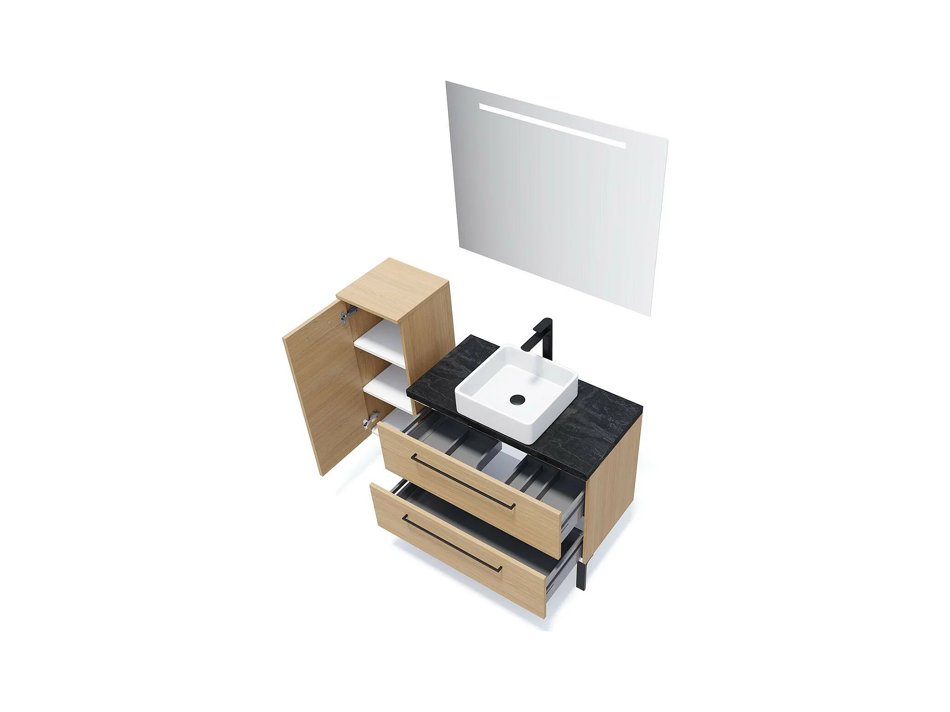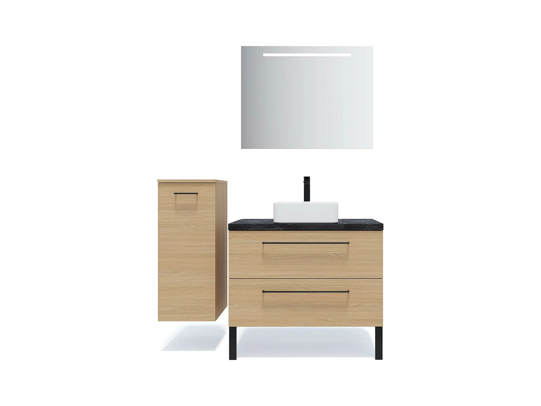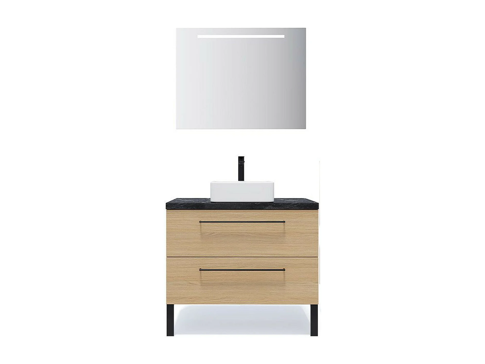 Meuble de salle de bain suspendu vasque à poser 90cm 2 tiroirs Chêne clair + miroir - Glasgow