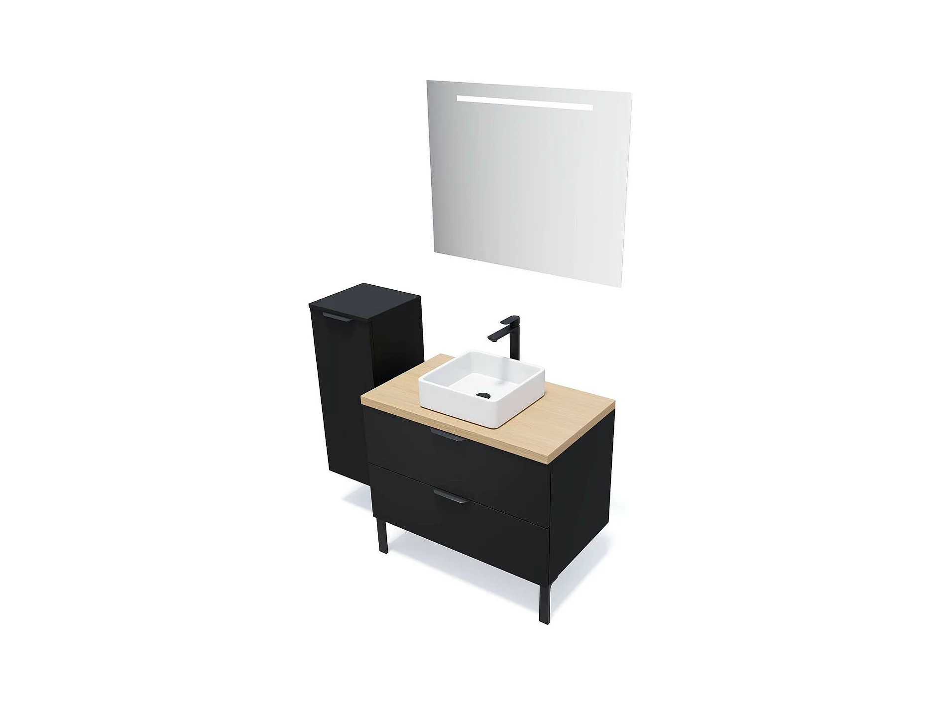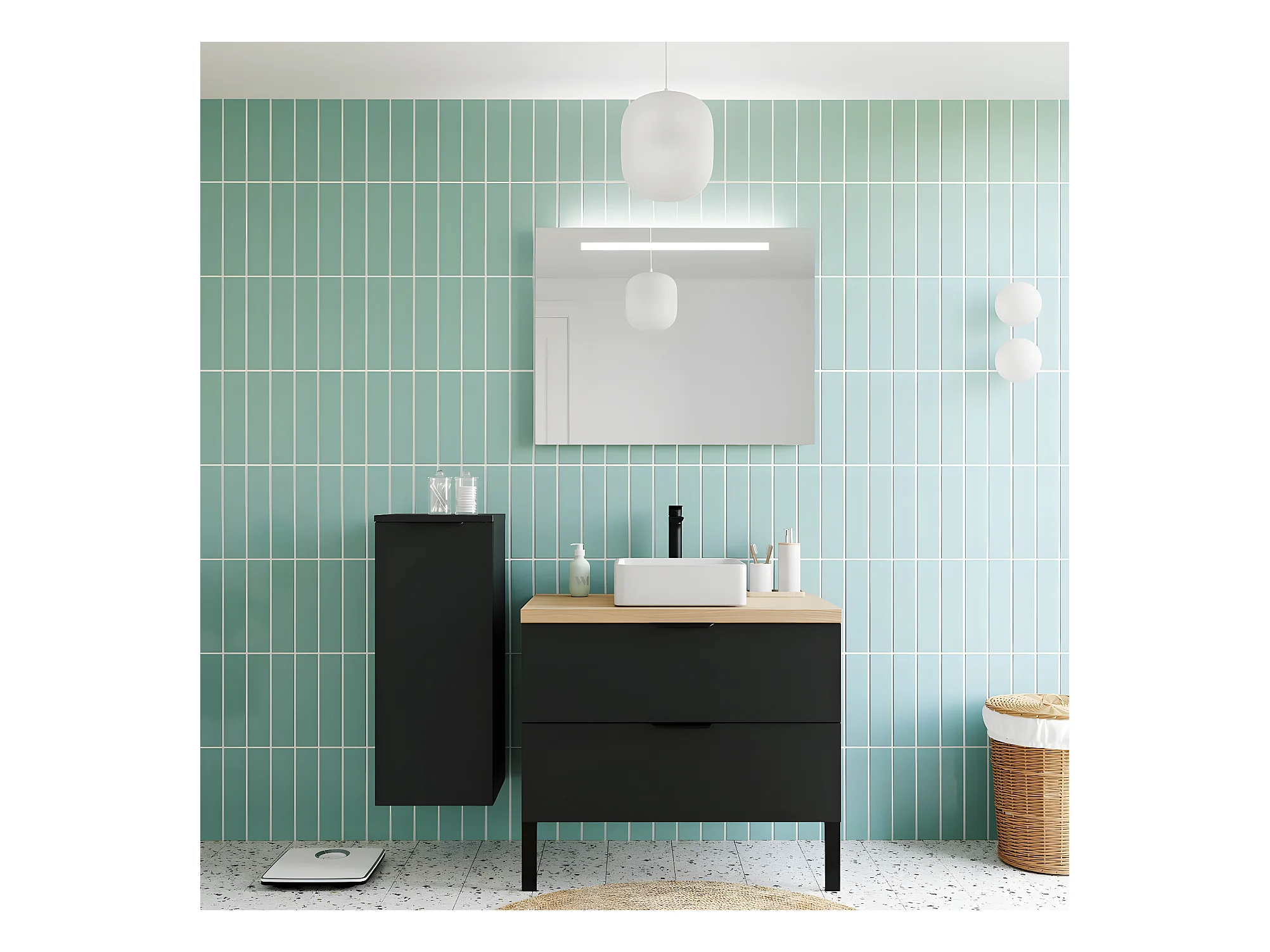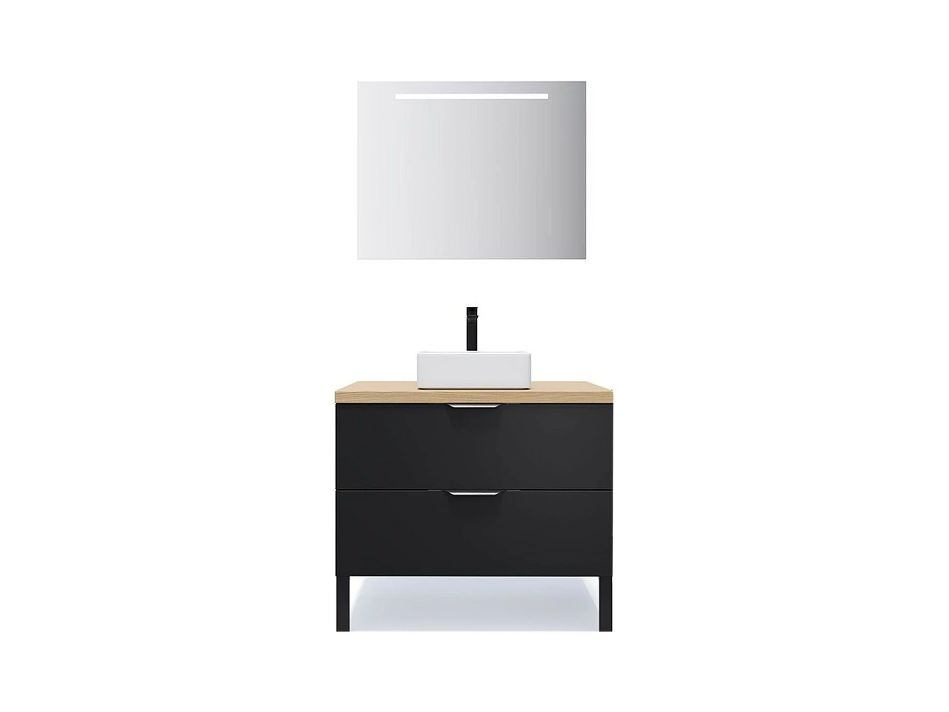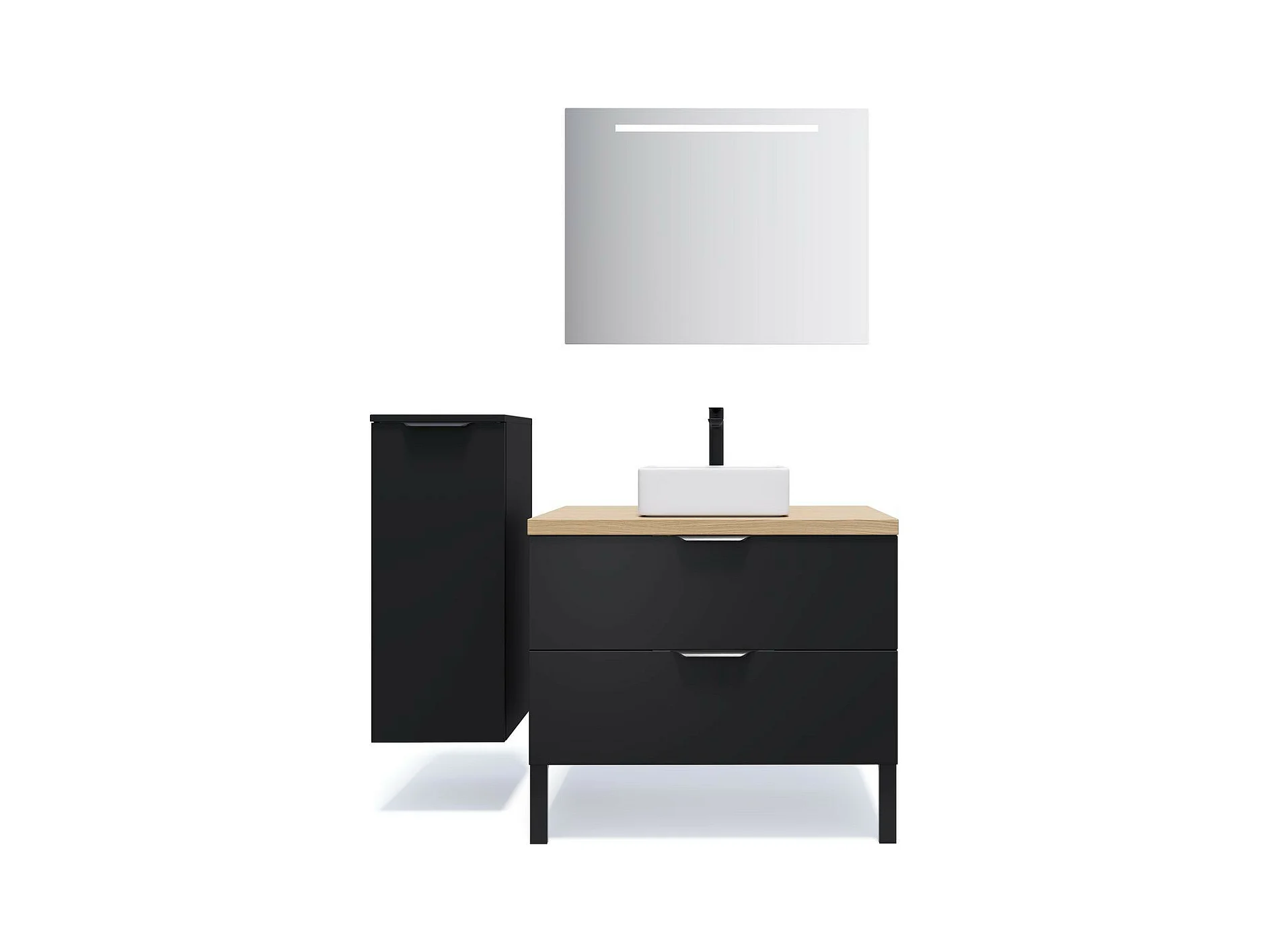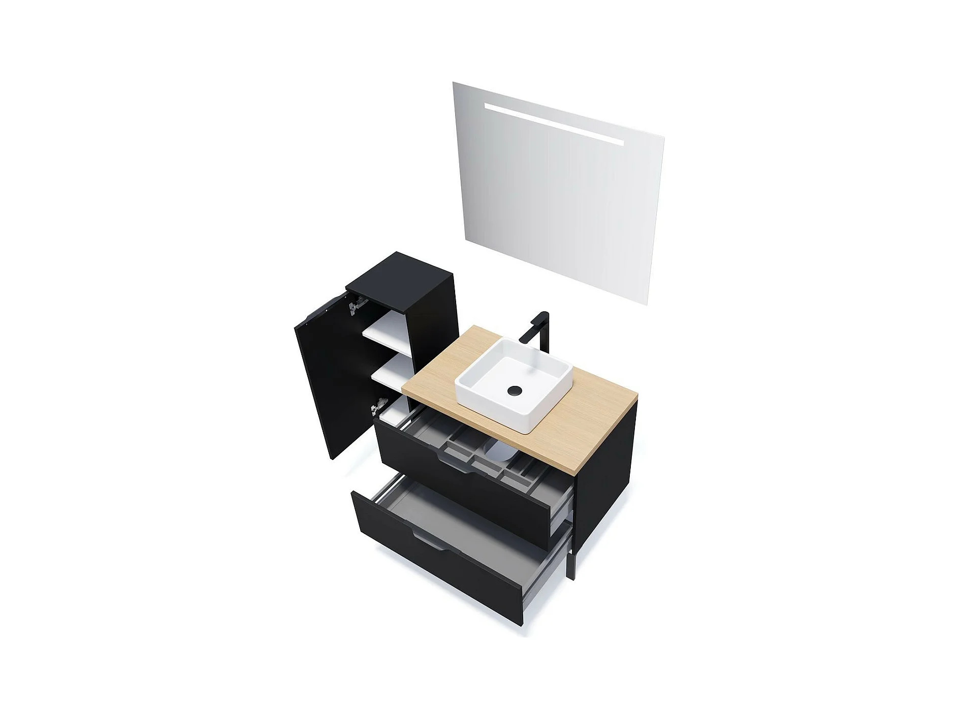 Meuble de salle de bain suspendu vasque à poser 90cm 2 tiroirs Noir + miroir - Soho
