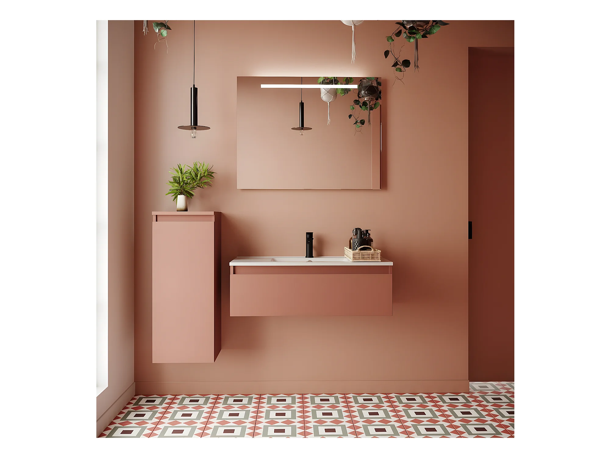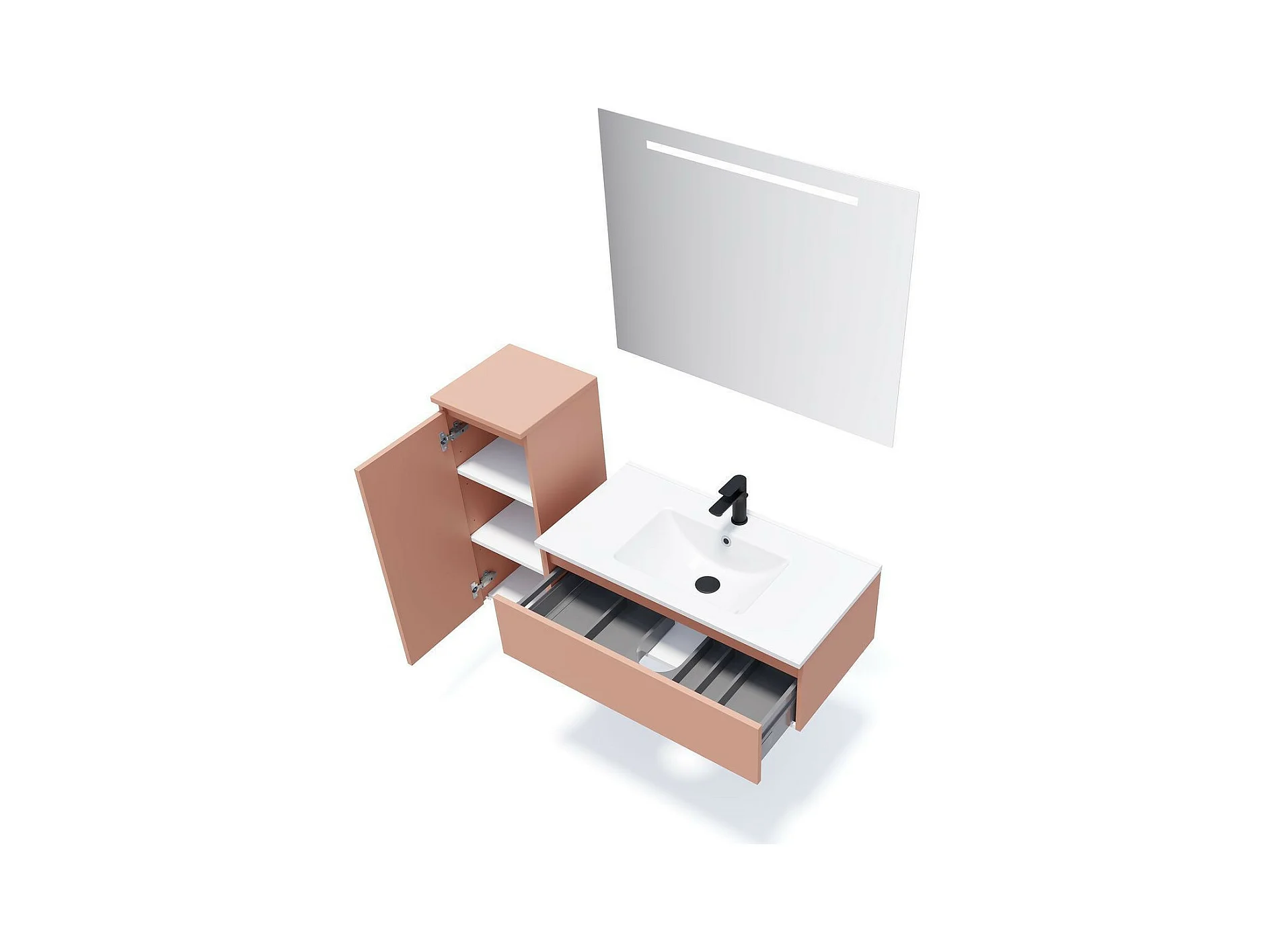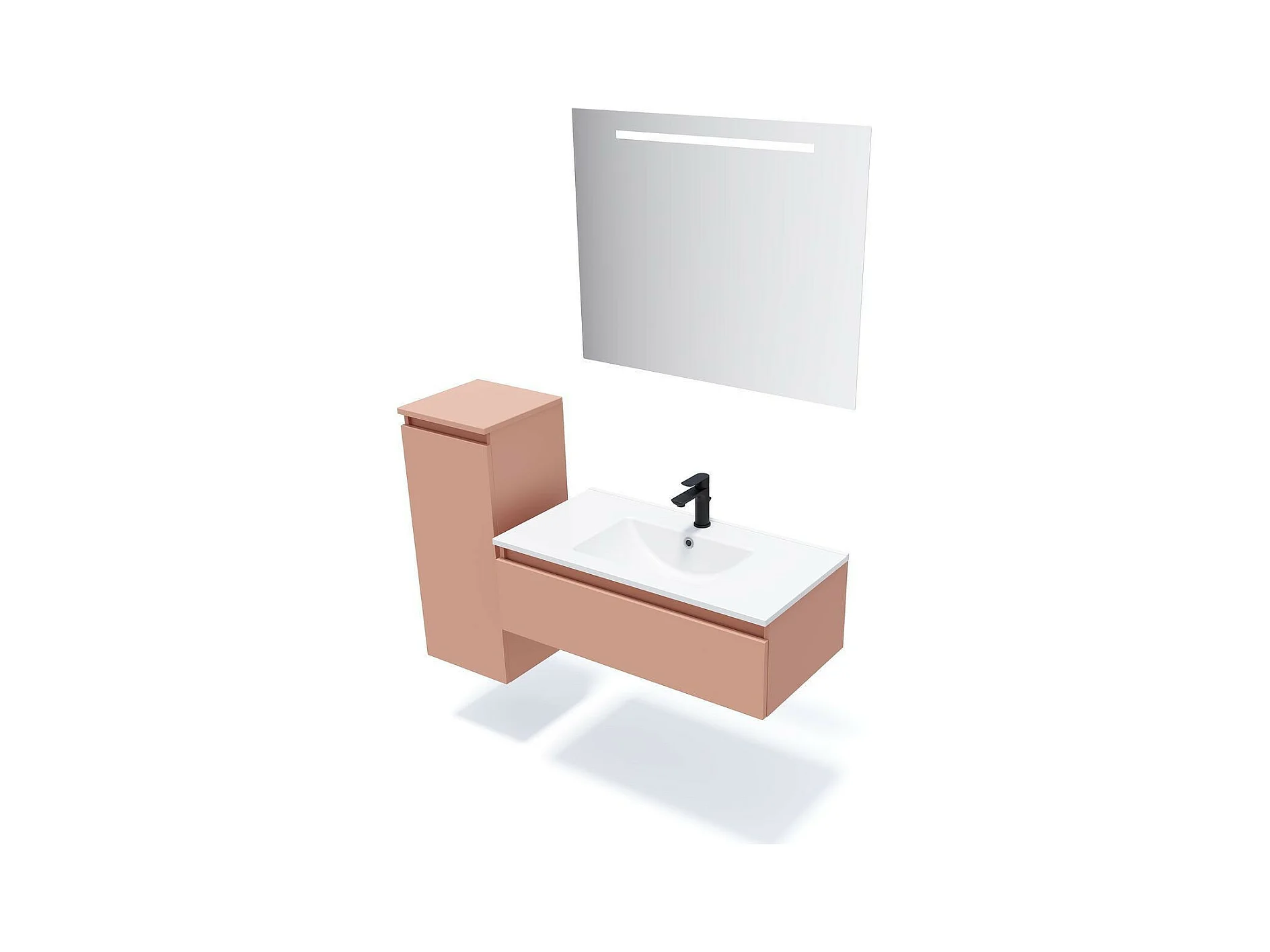 Meuble de salle de bain suspendu vasque intégrée 90cm 1 tiroir Abricot + miroir - Hudson