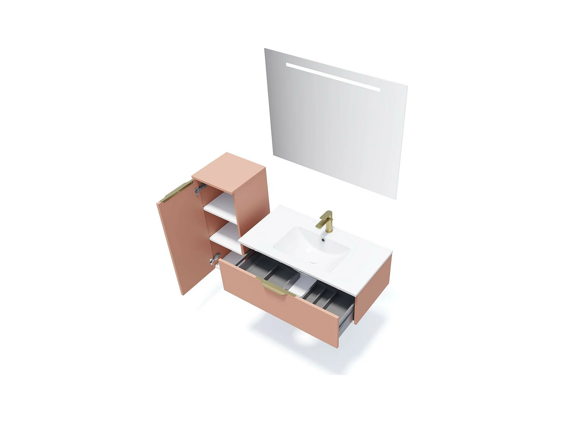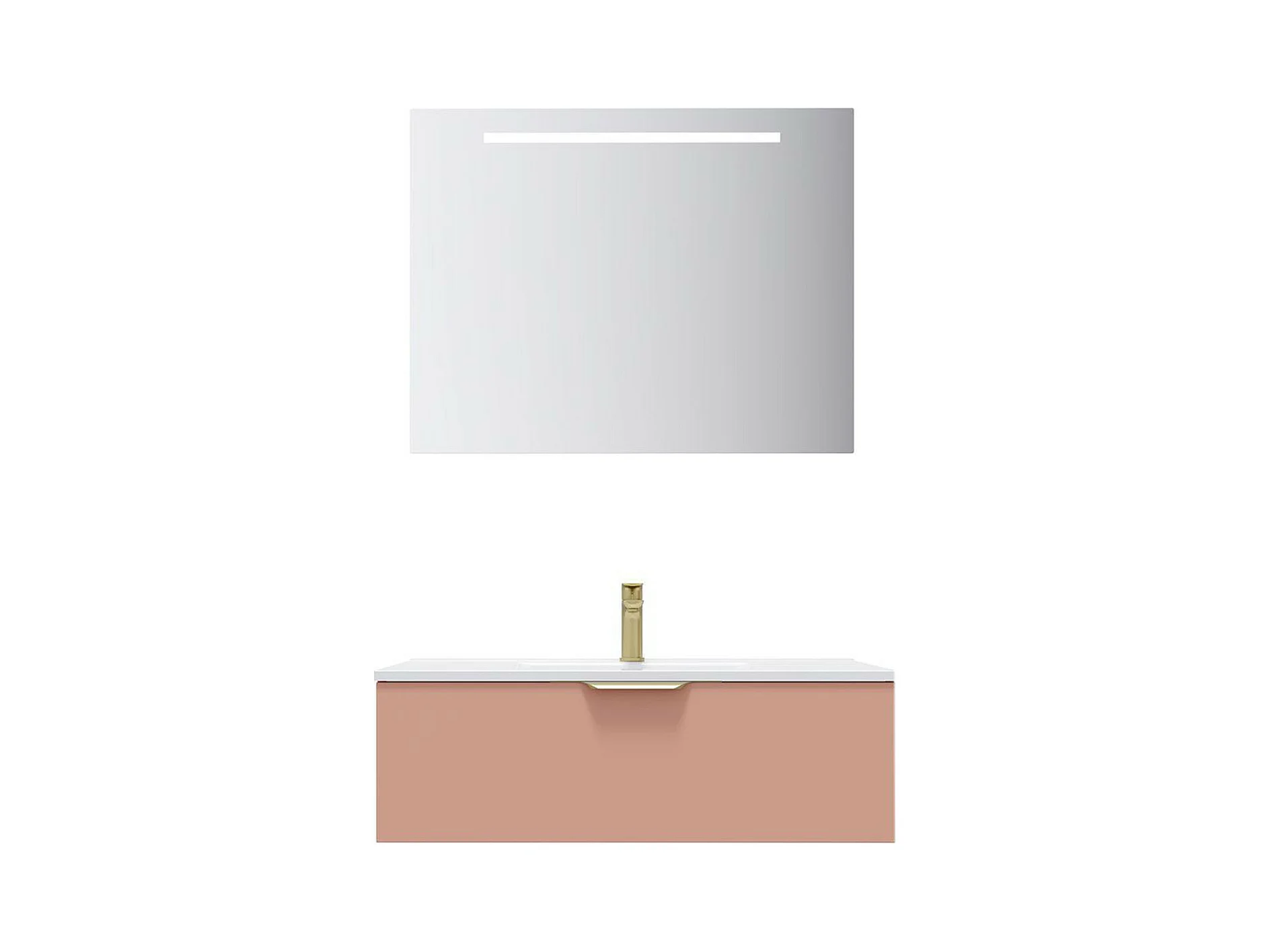 Meuble de salle de bain suspendu vasque intégrée 90cm 1 tiroir Abricot + miroir - Venice