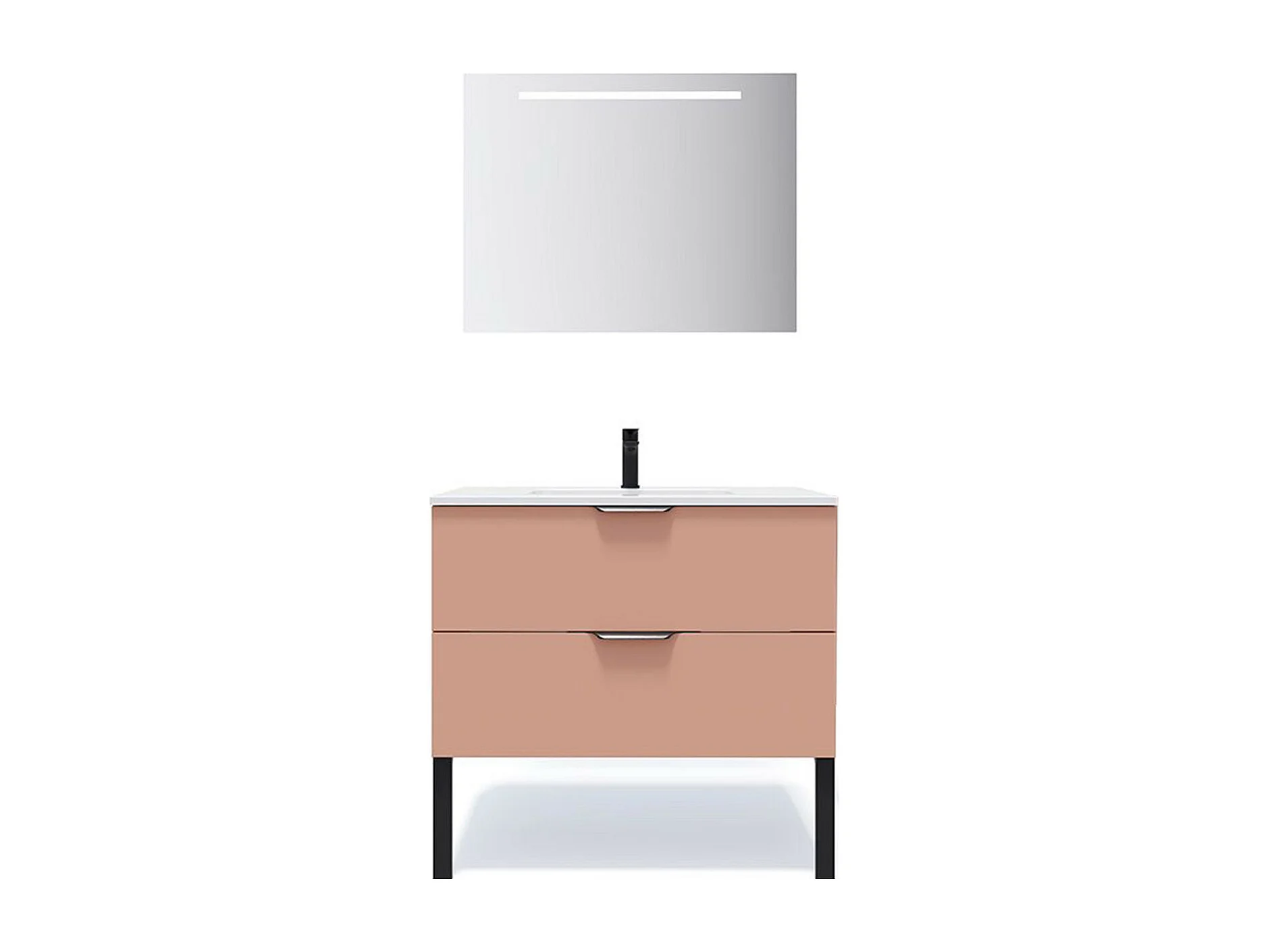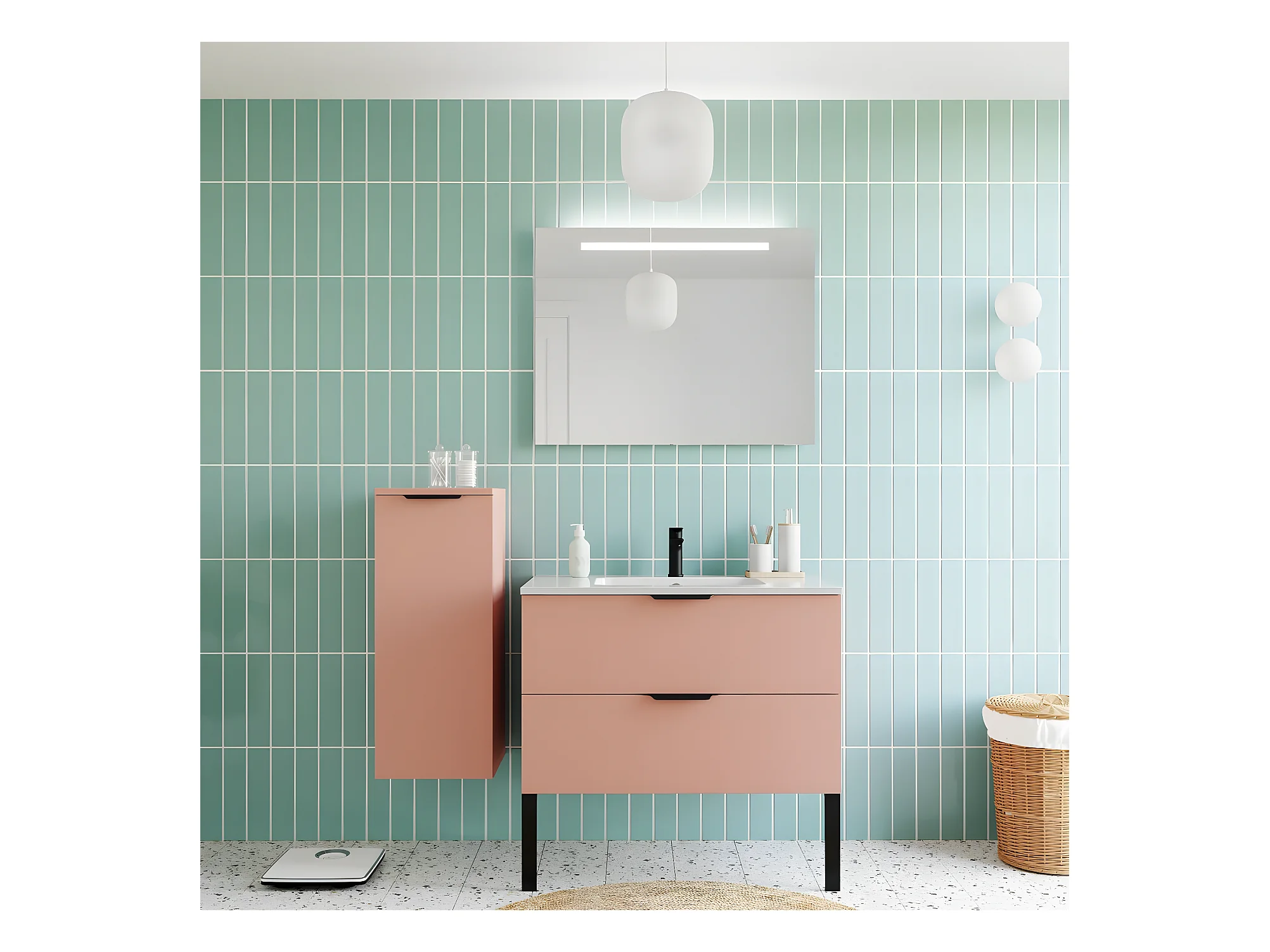 Meuble de salle de bain suspendu vasque intégrée 90cm 2 tiroirs Abricot + miroir - Soho