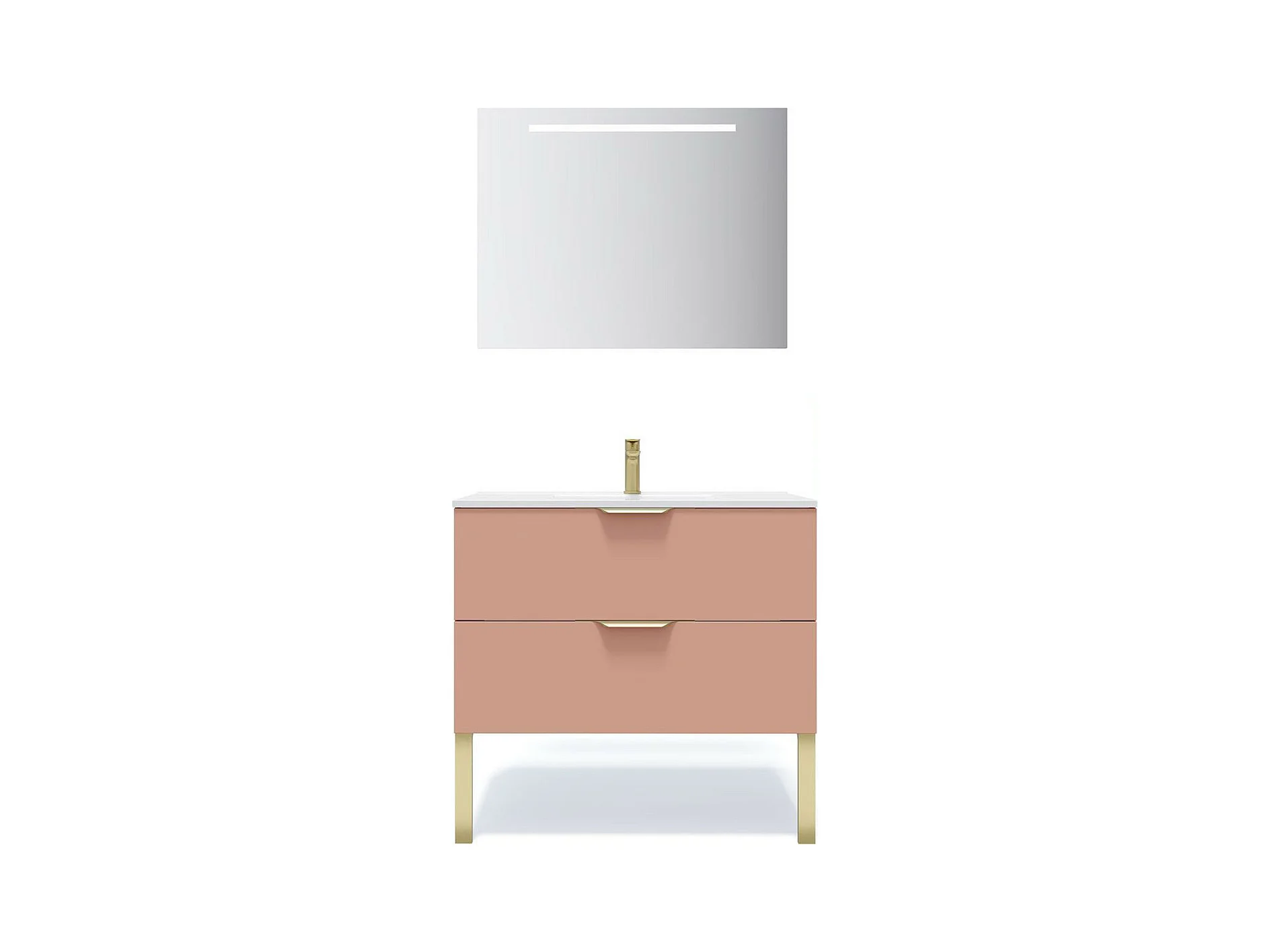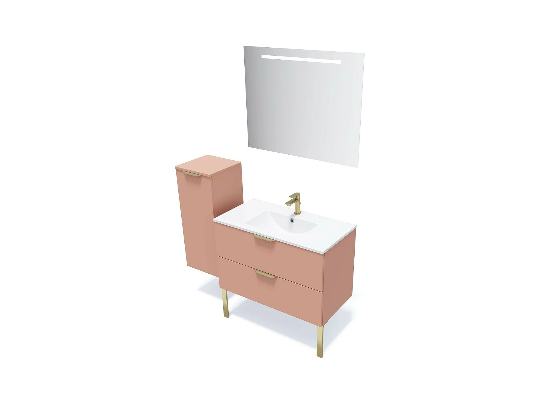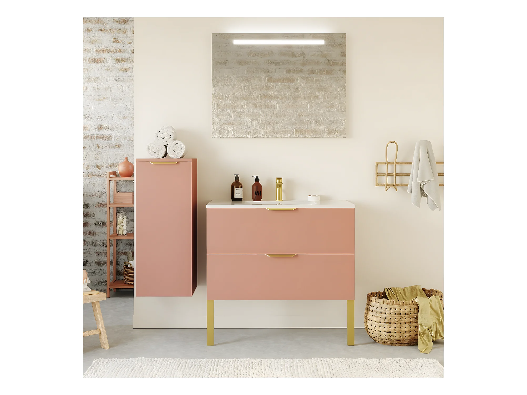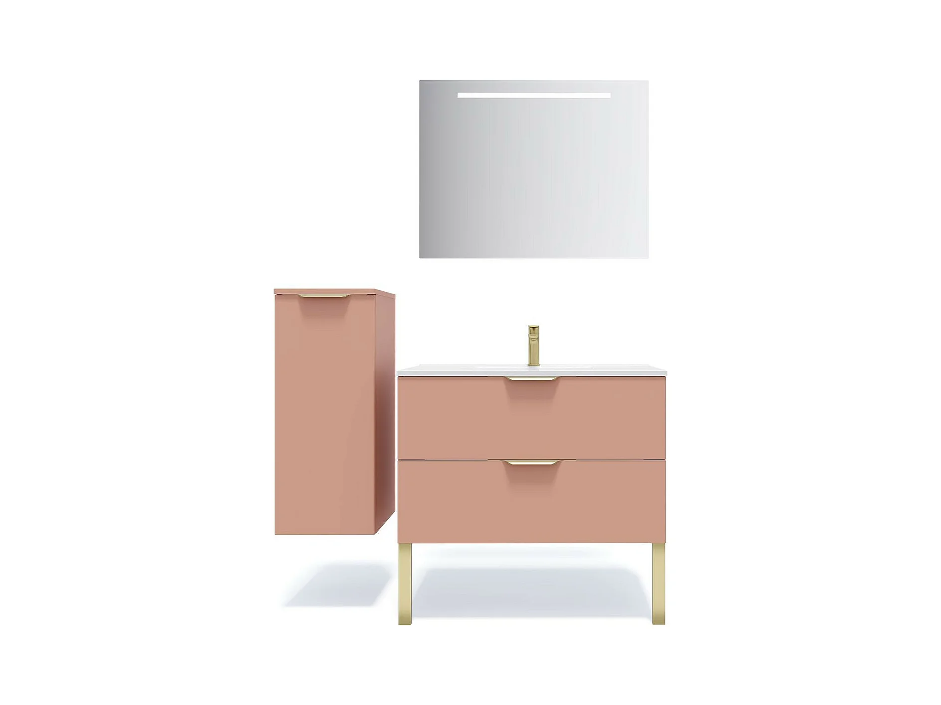 Meuble de salle de bain suspendu vasque intégrée 90cm 2 tiroirs Abricot + miroir - Venice