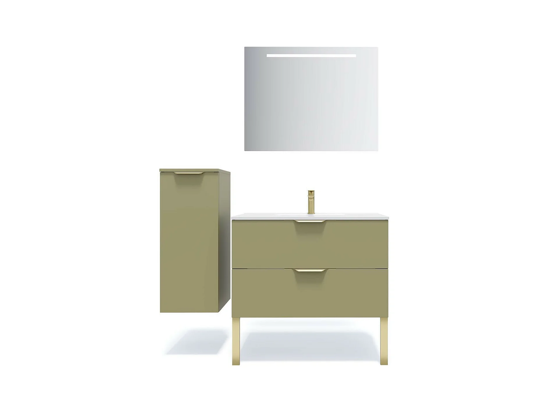 Meuble de salle de bain suspendu vasque intégrée 90cm 2 tiroirs Vert olive - Venice