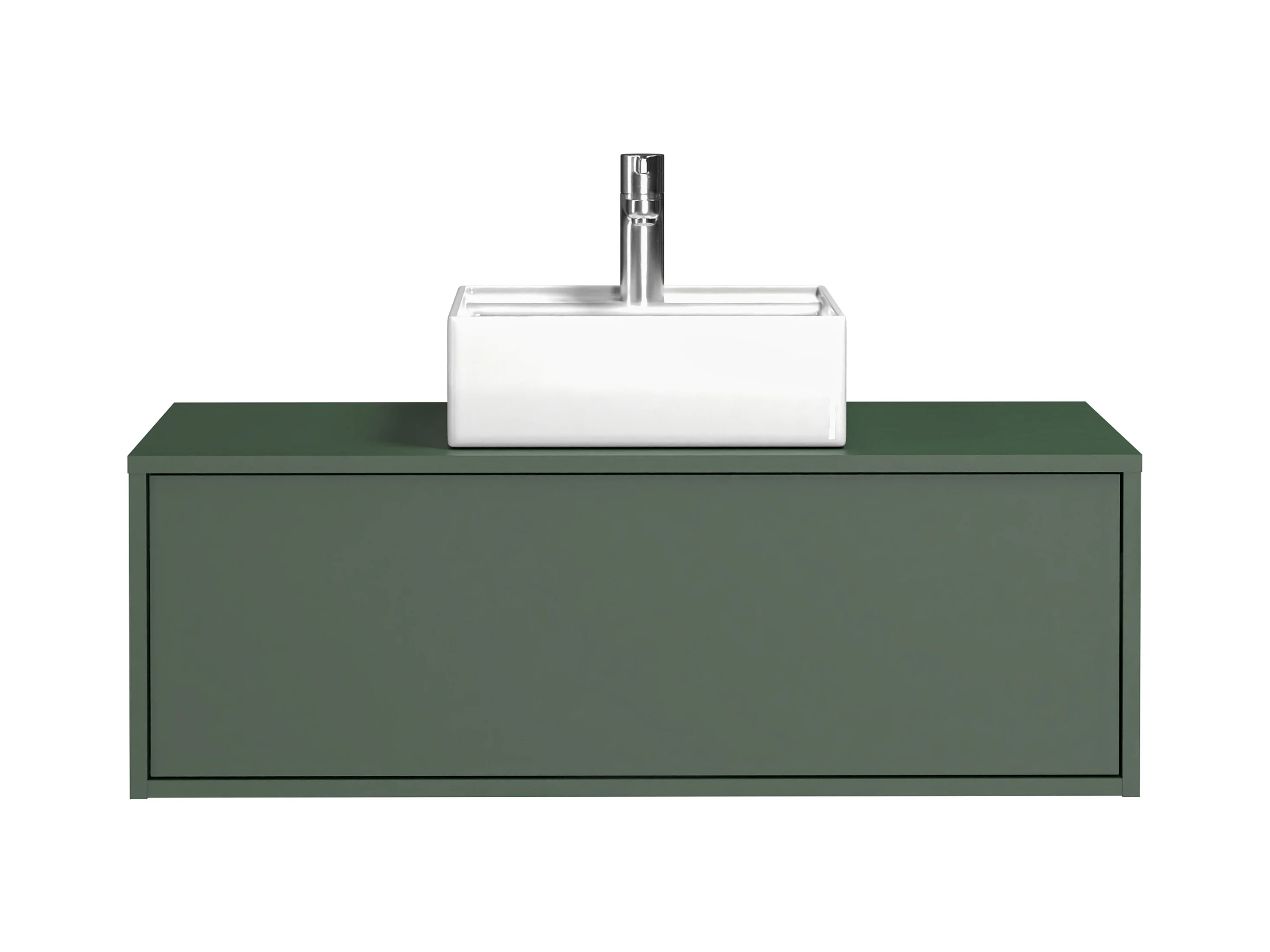 Meuble de salle de bain suspendu vert mat avec simple vasque carrée - 94 cm - TEANA II